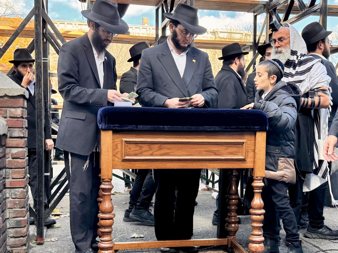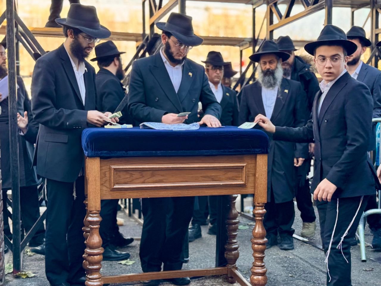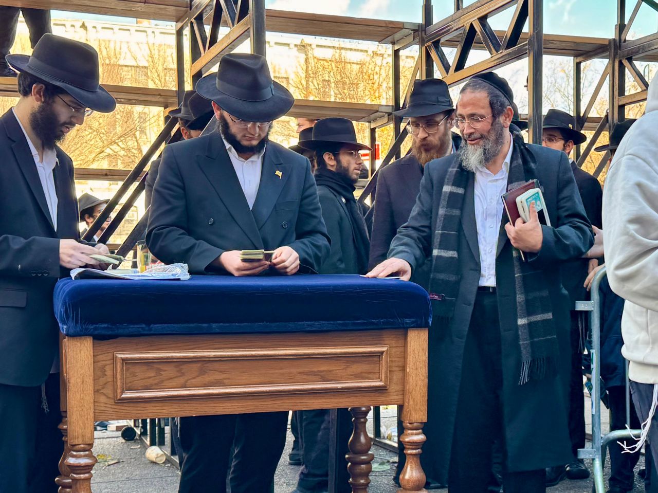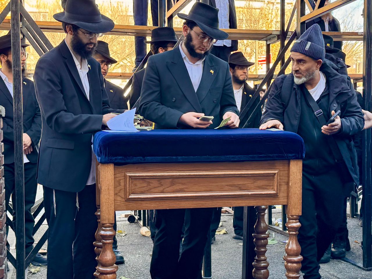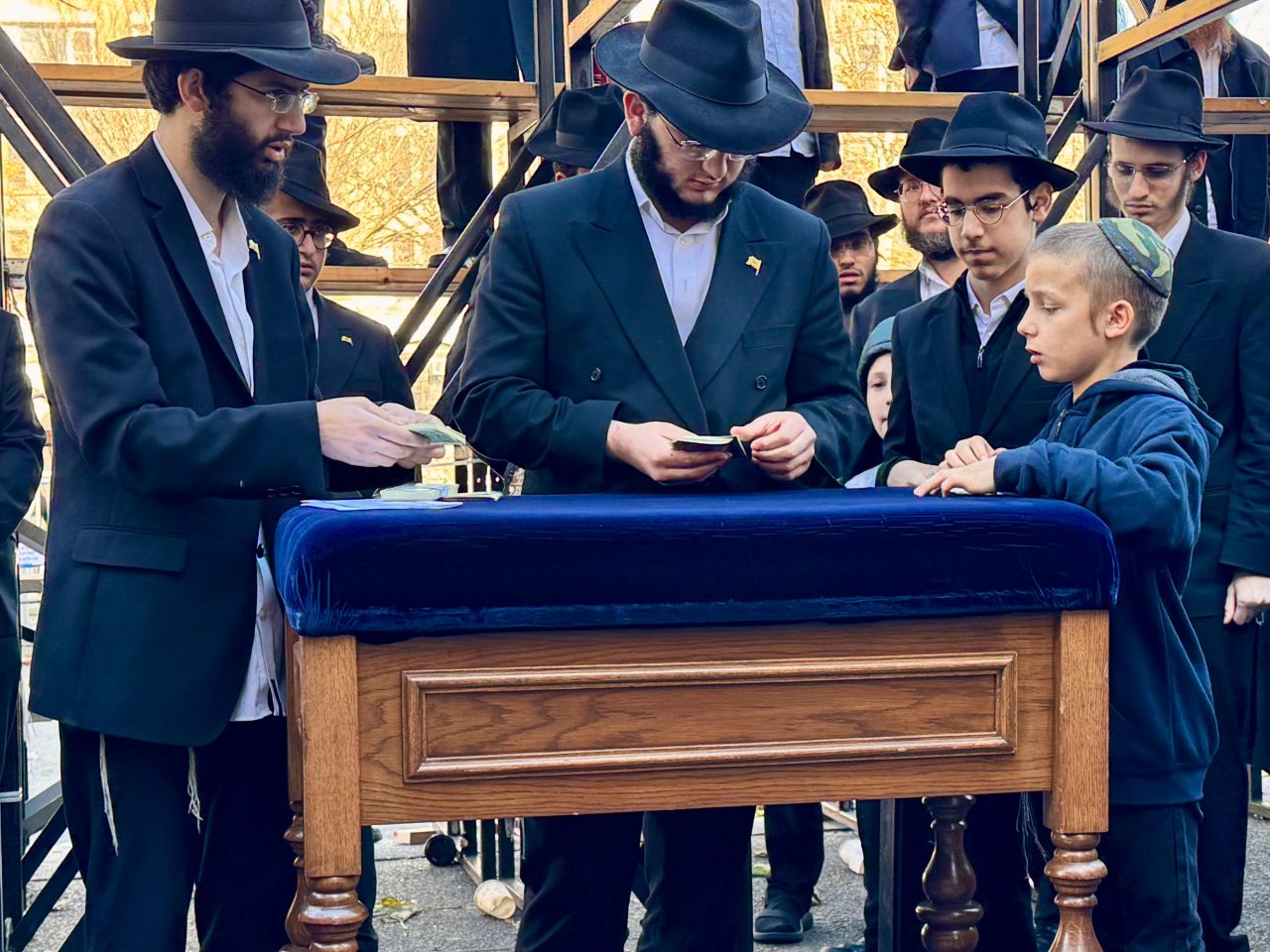 הצלם הת׳ פתחיה אדעליסט תיעד את החלוקה הבוקר בפתחו של 770.