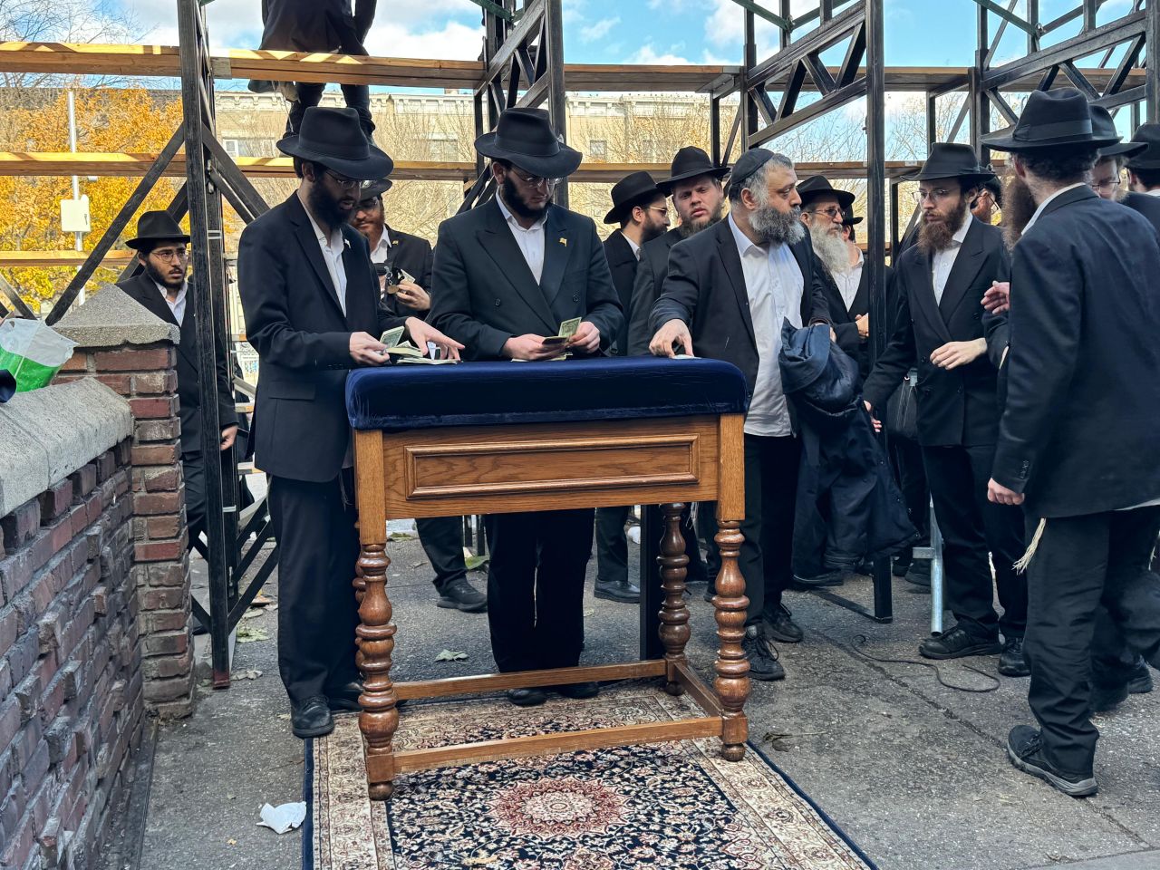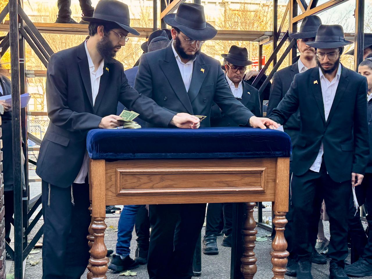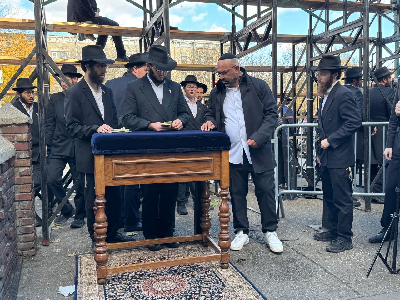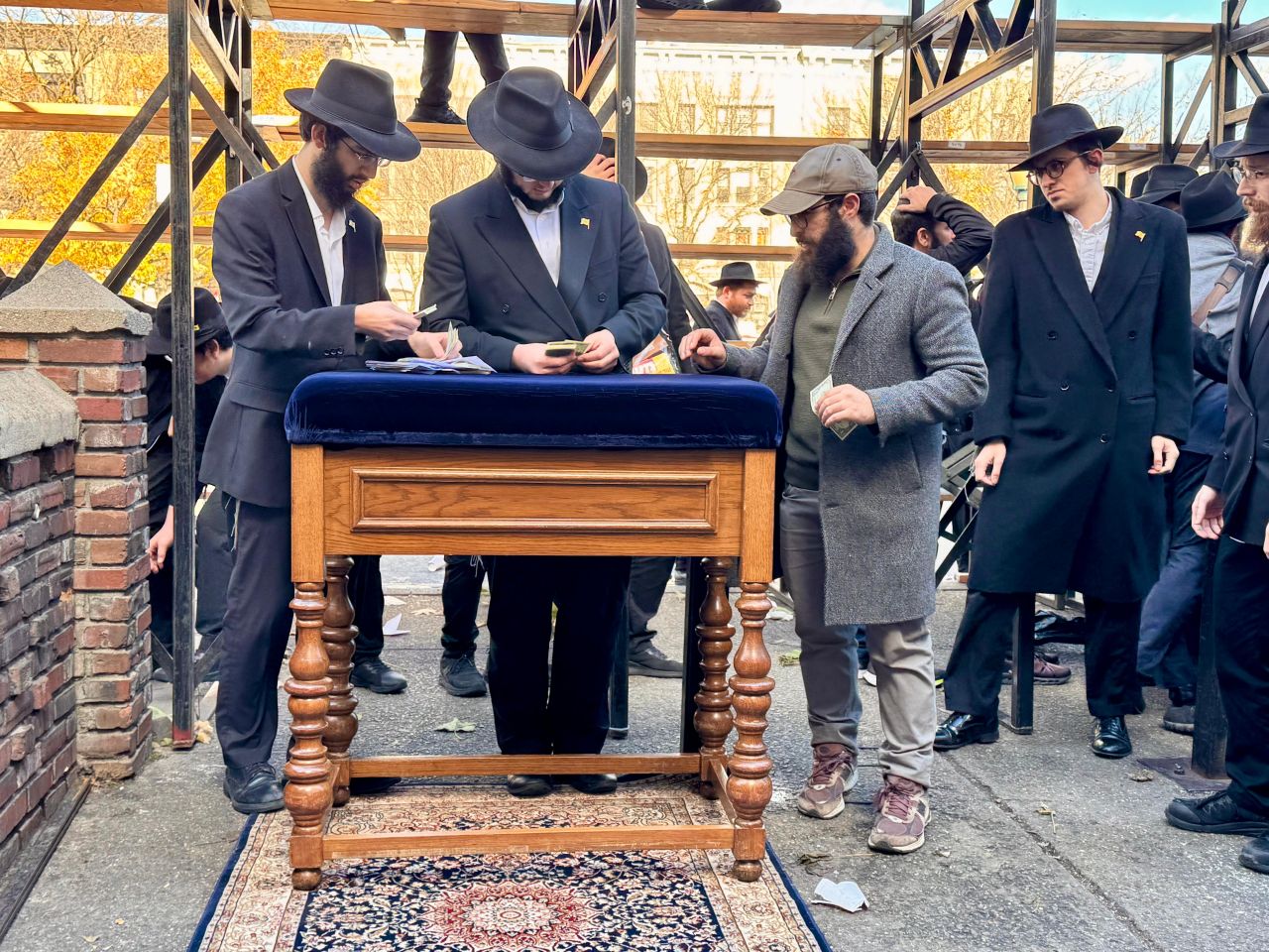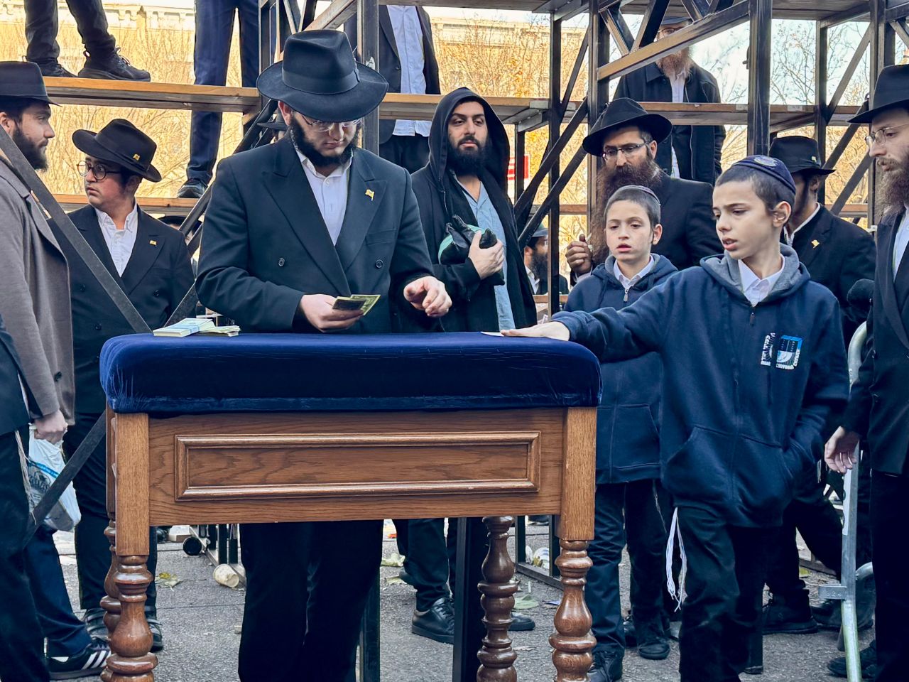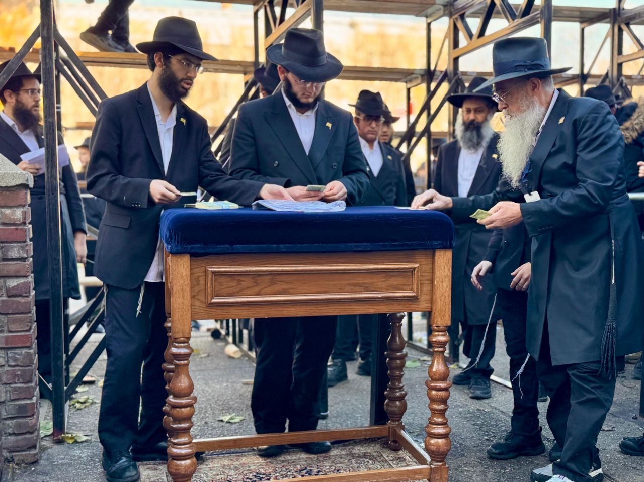 הצלם הת׳ פתחיה אדעליסט תיעד את החלוקה הבוקר בפתחו של 770.