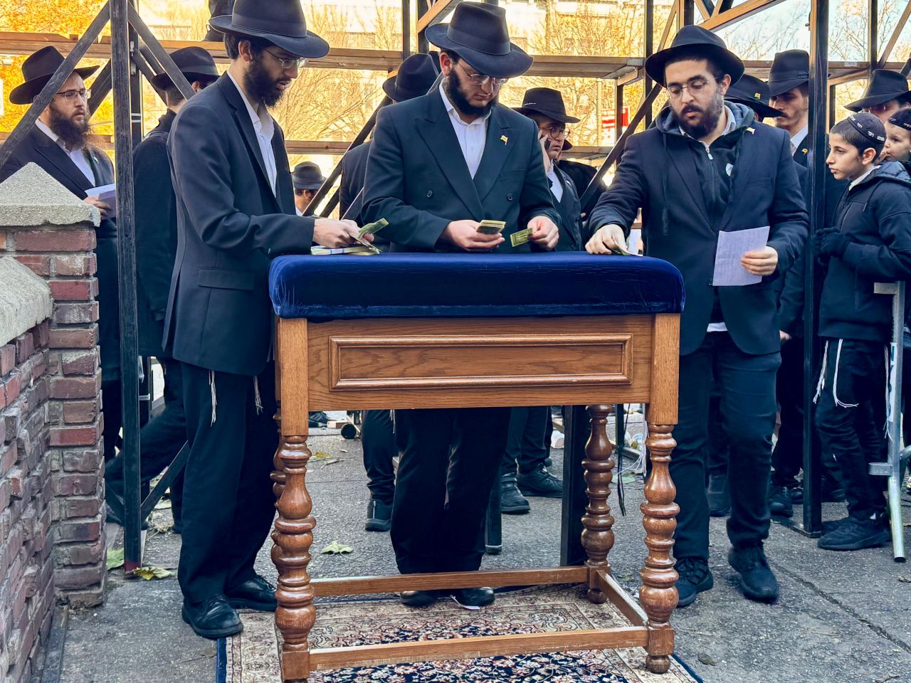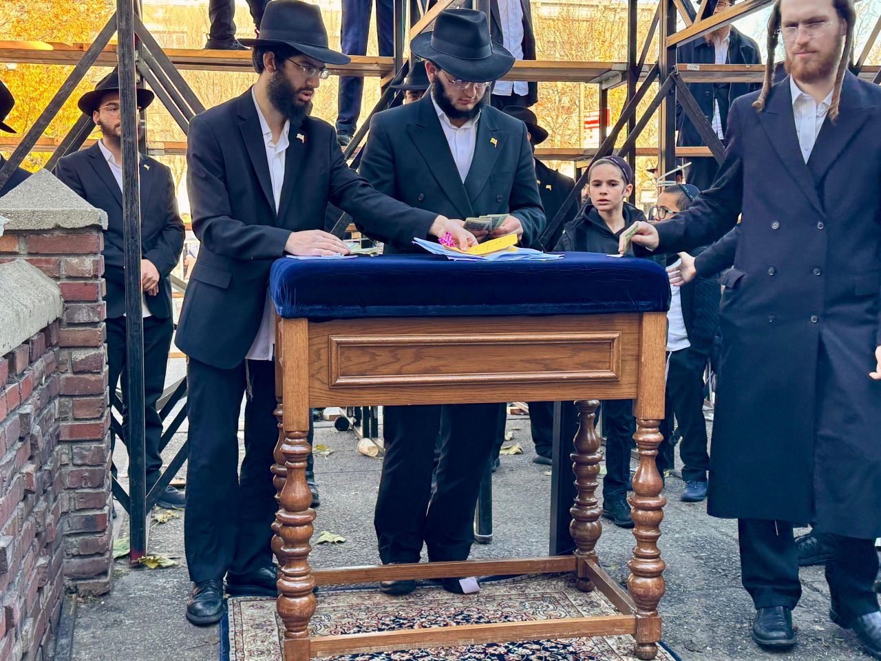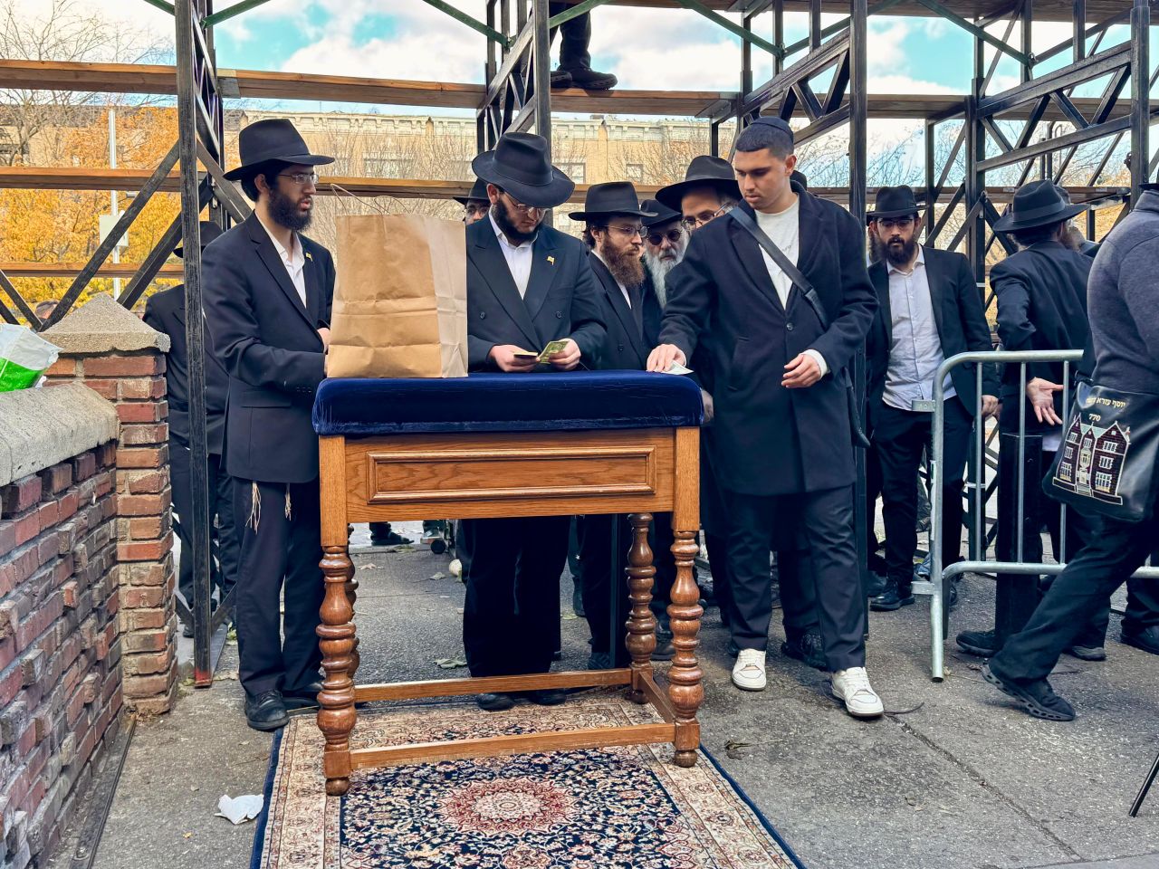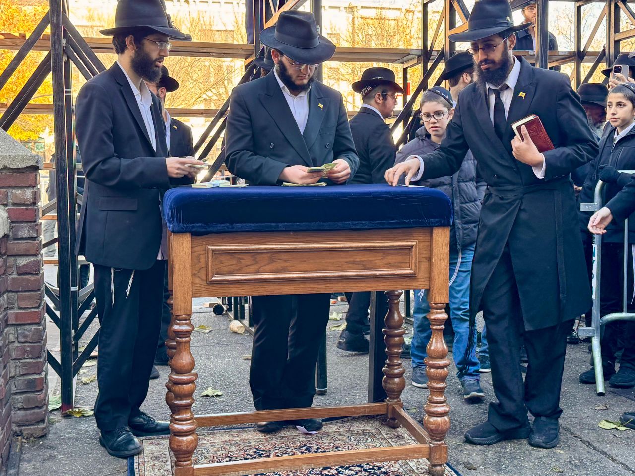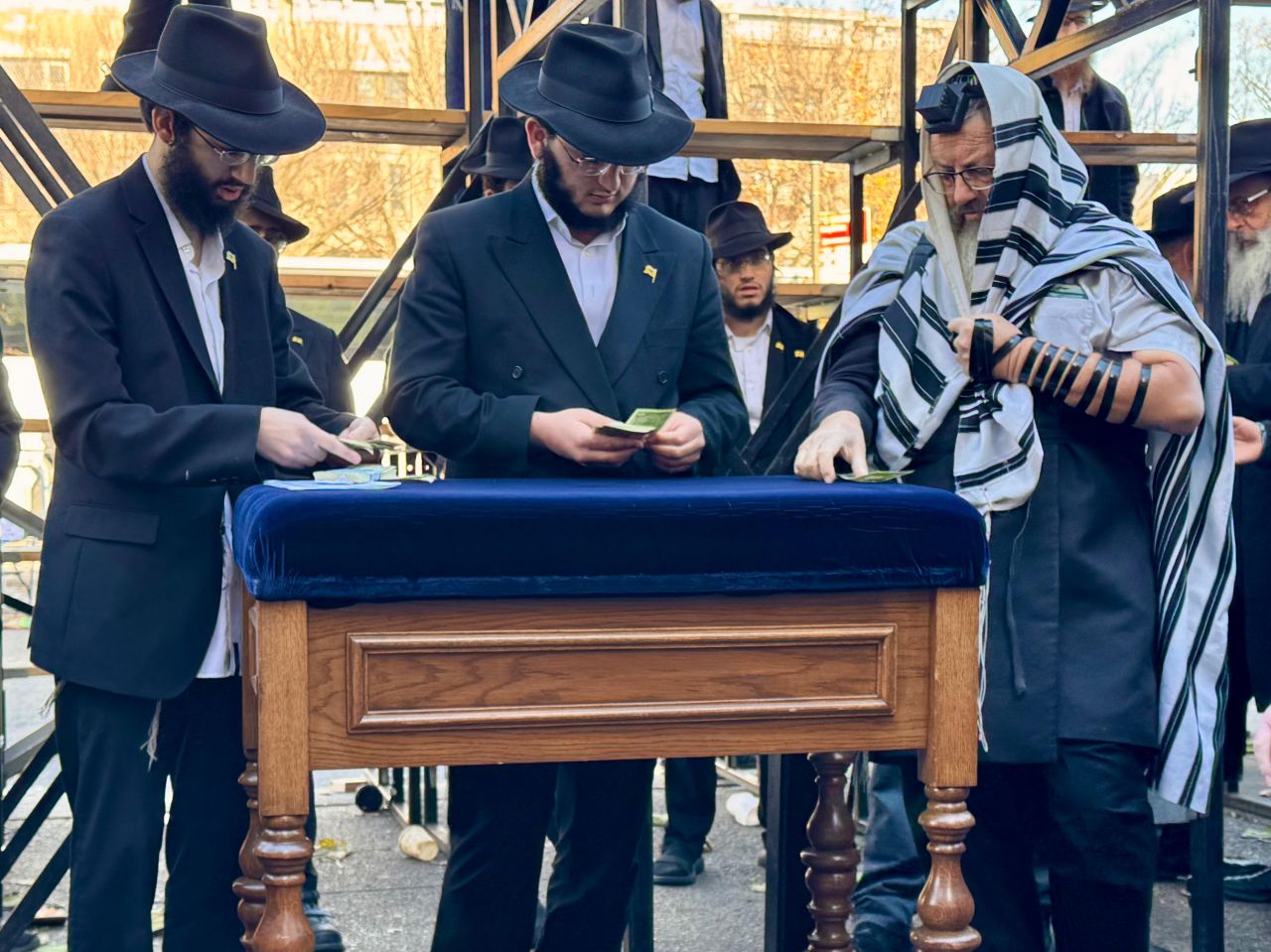 הצלם הת׳ פתחיה אדעליסט תיעד את החלוקה הבוקר בפתחו של 770.