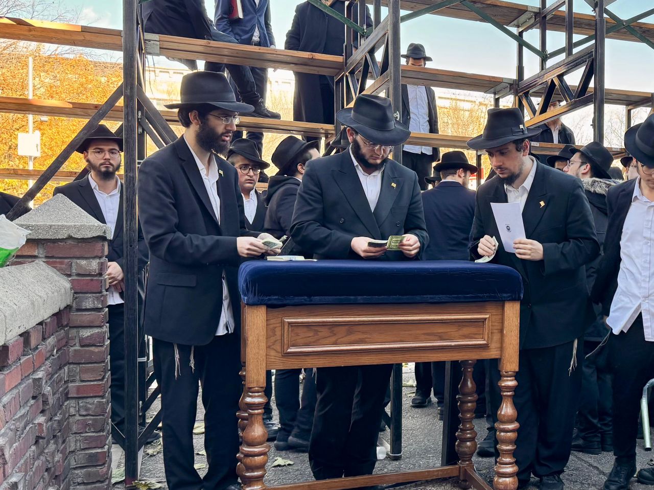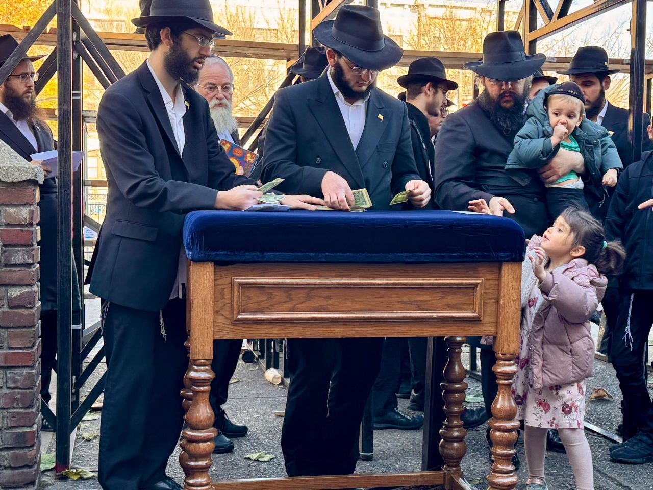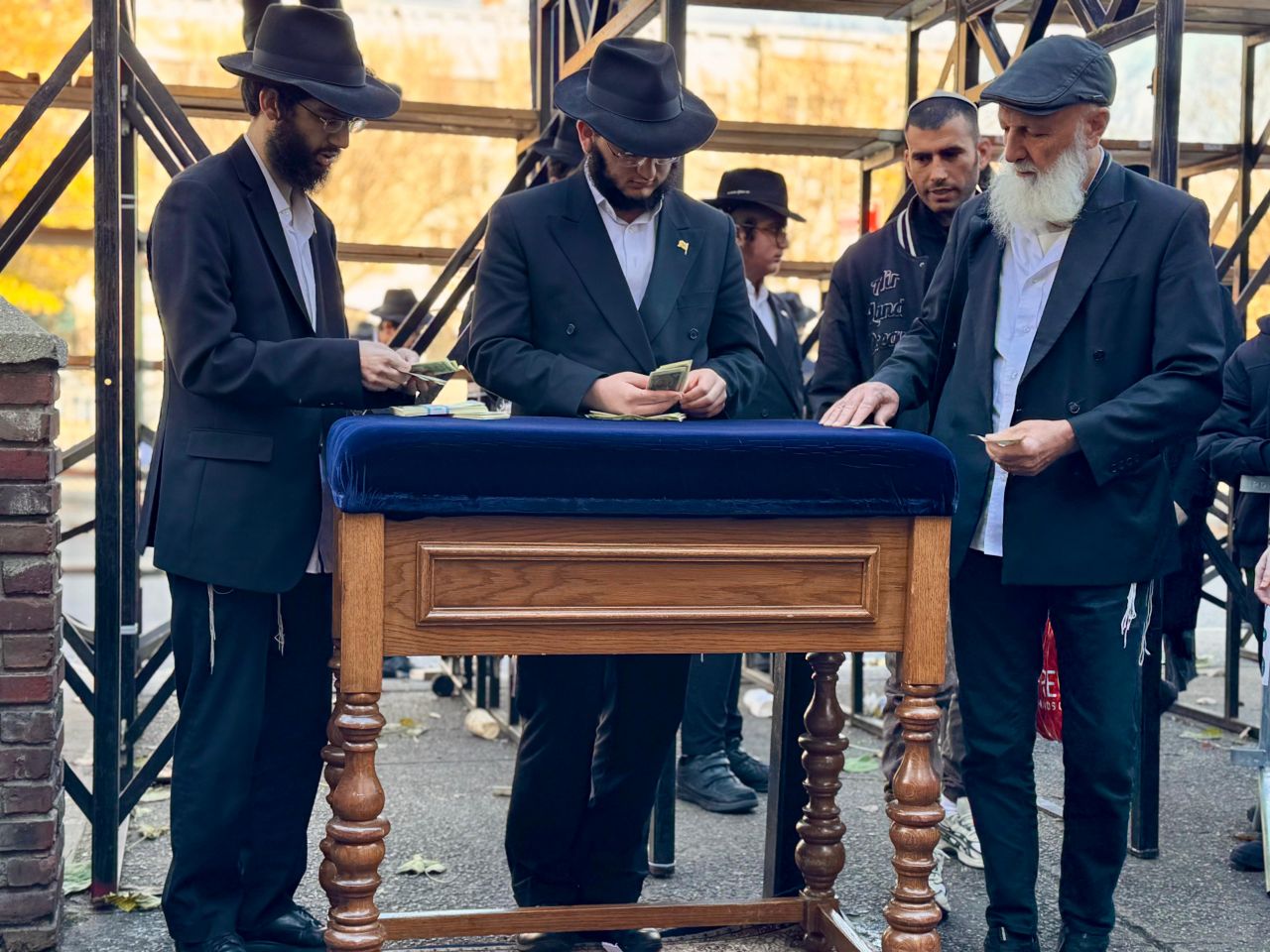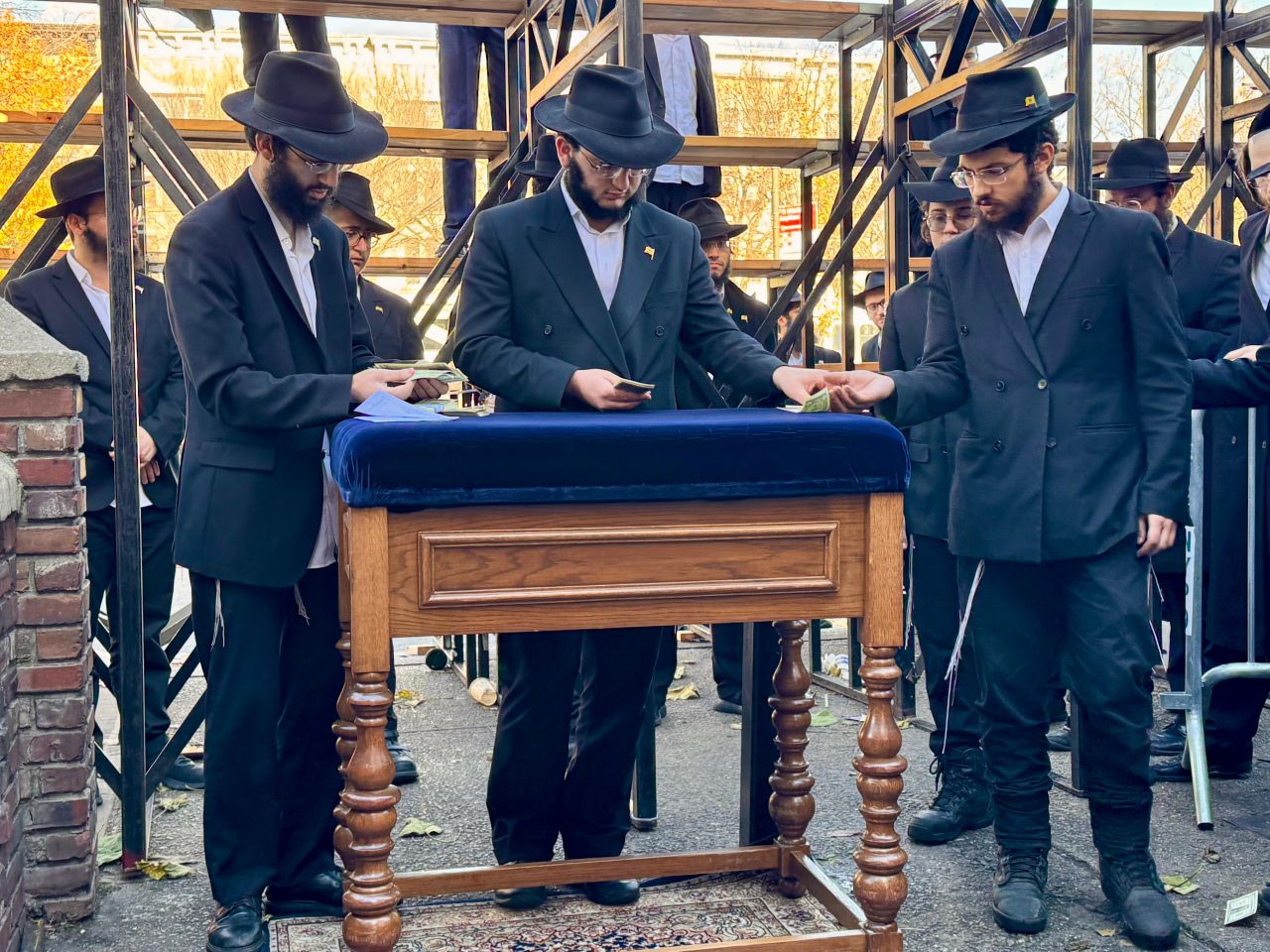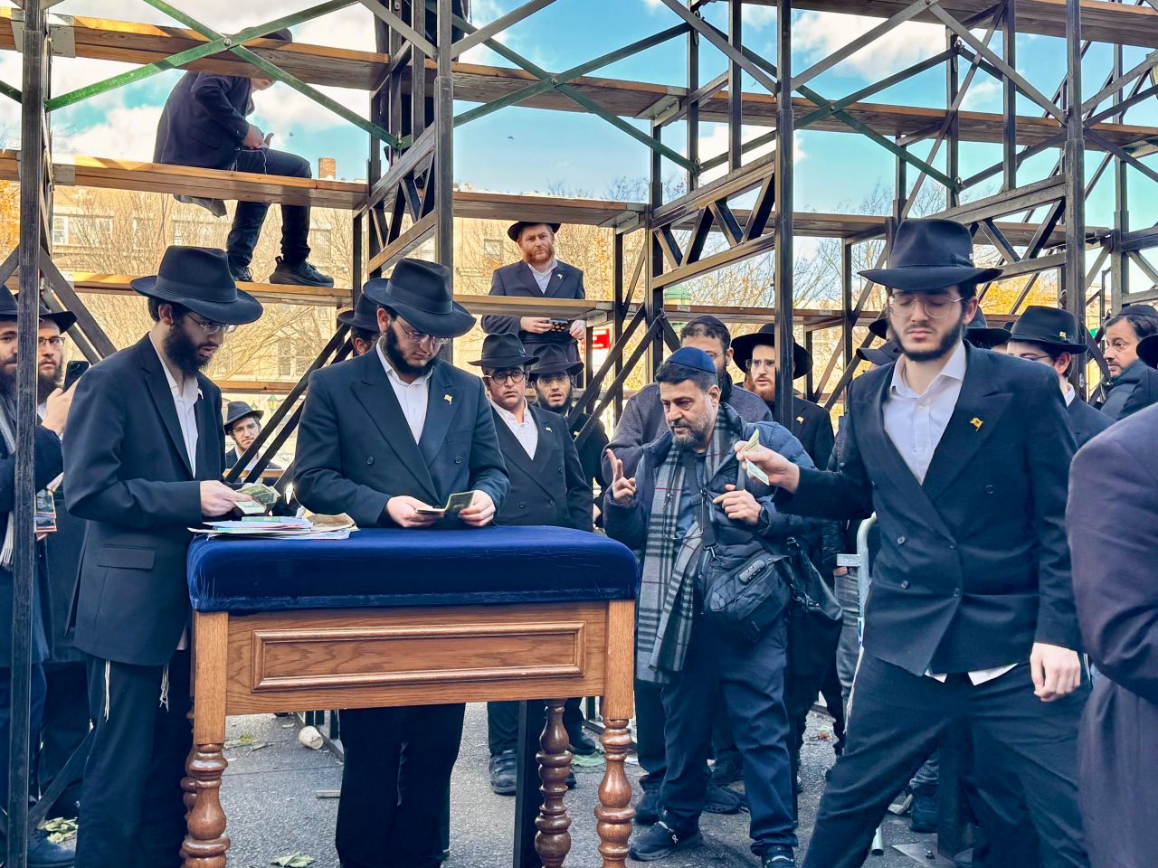 הצלם הת׳ פתחיה אדעליסט תיעד את החלוקה הבוקר בפתחו של 770.