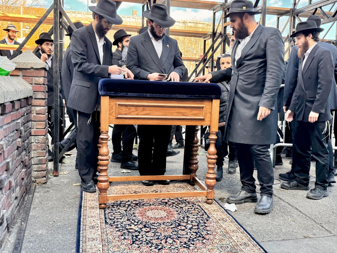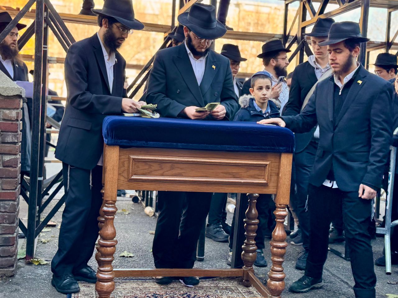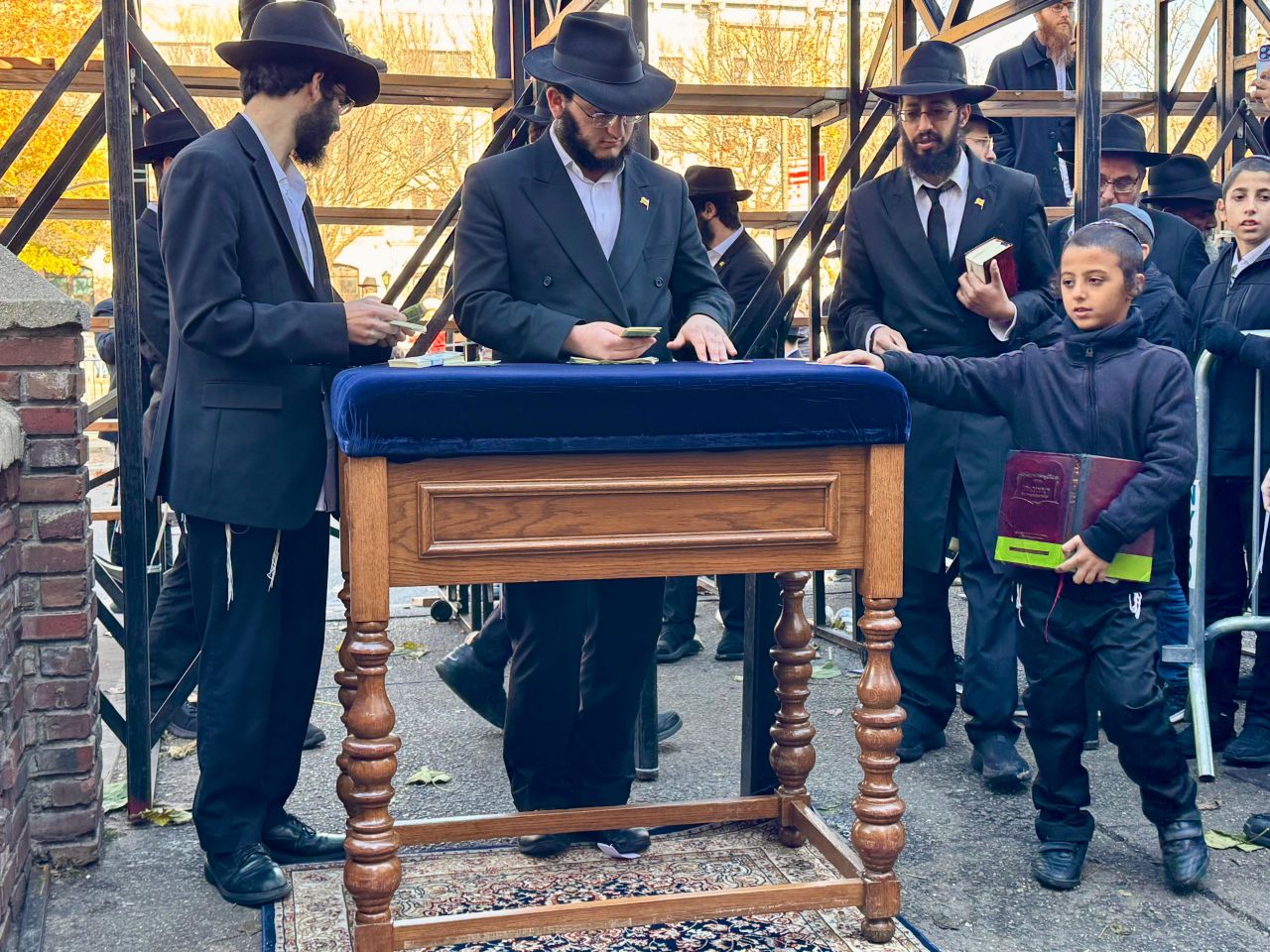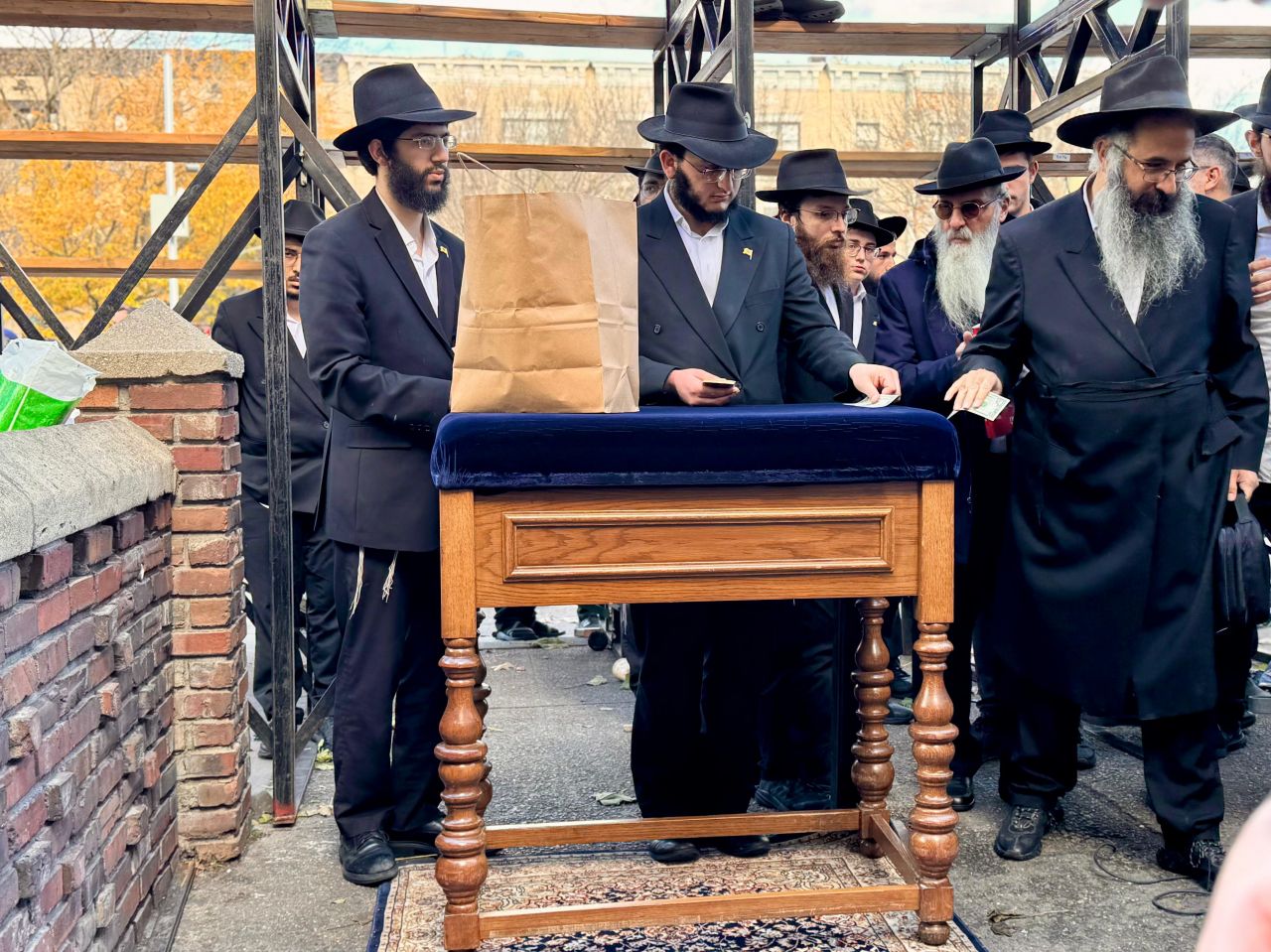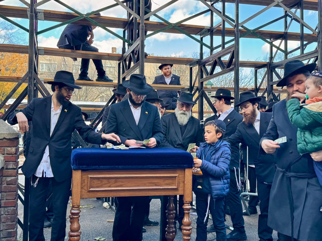 הצלם הת׳ פתחיה אדעליסט תיעד את החלוקה הבוקר בפתחו של 770.
