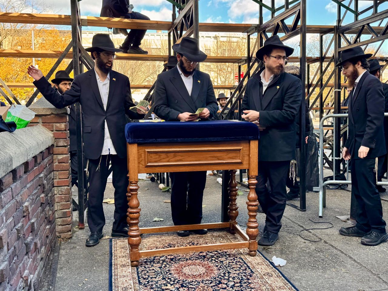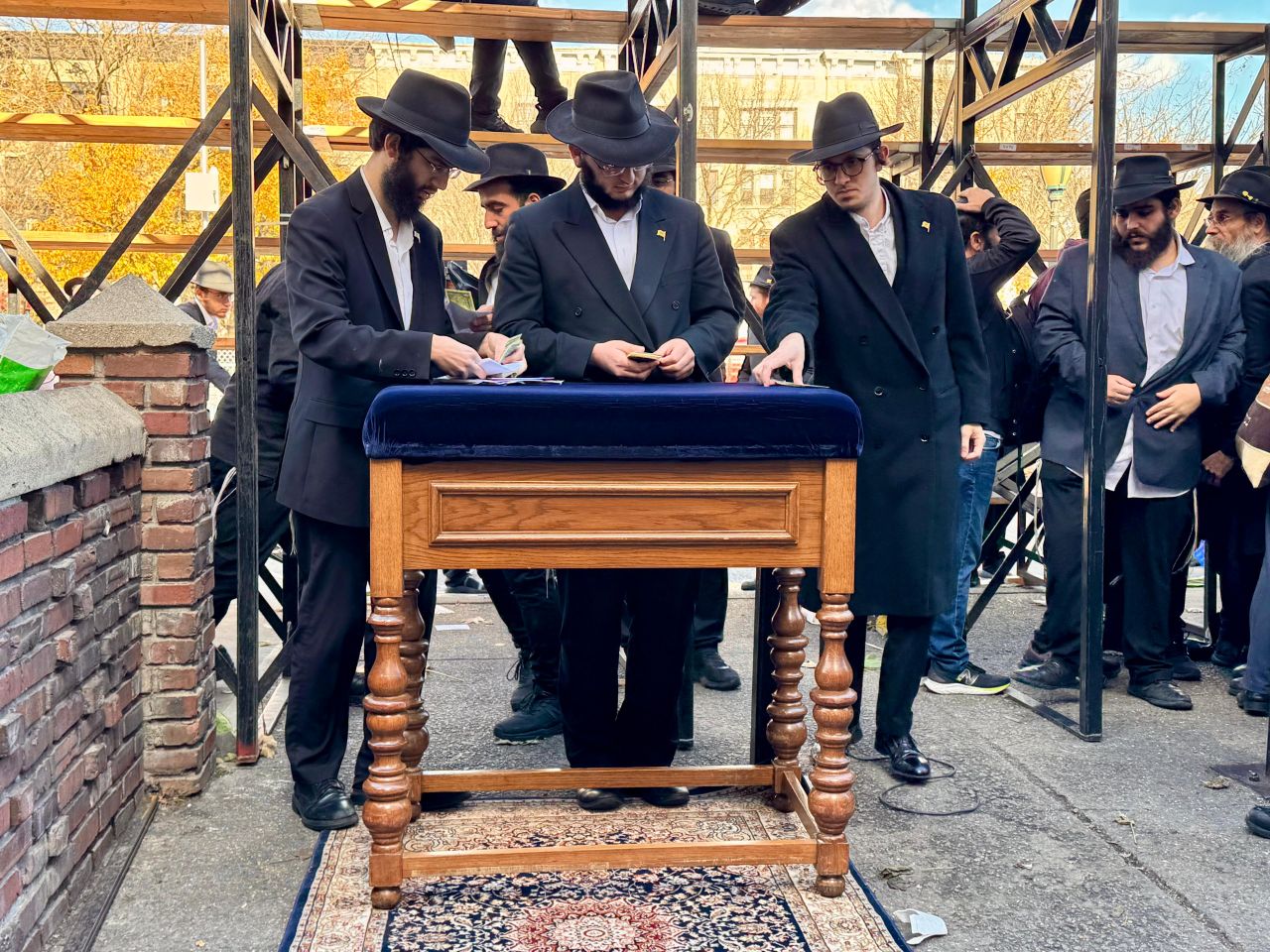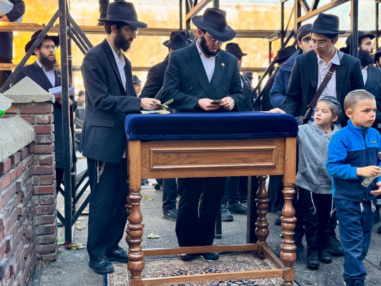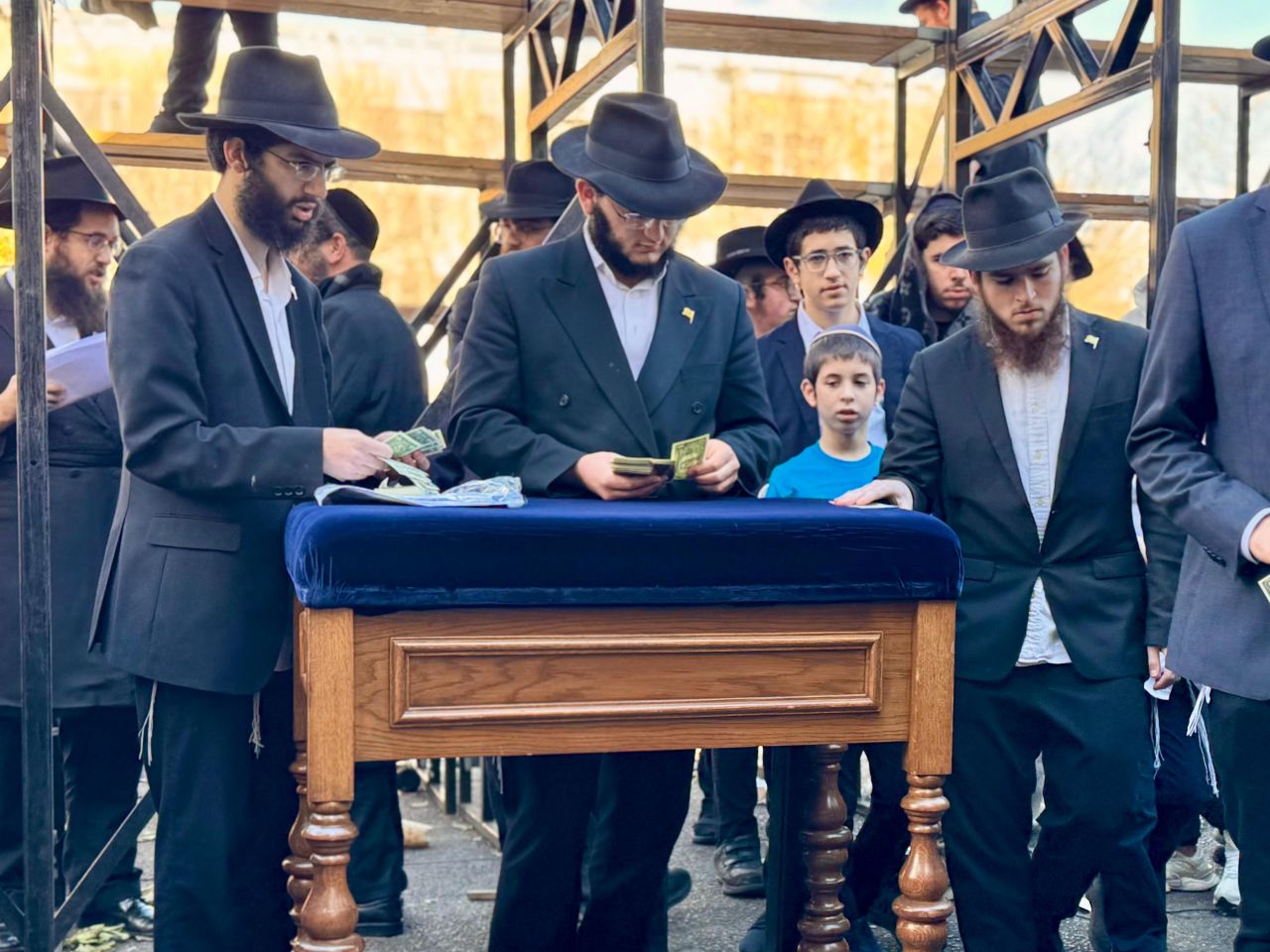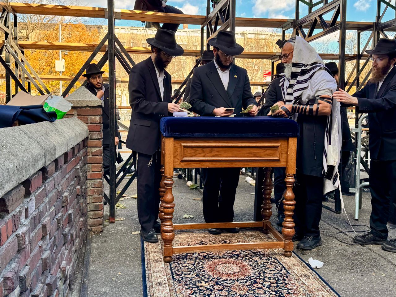 הצלם הת׳ פתחיה אדעליסט תיעד את החלוקה הבוקר בפתחו של 770.