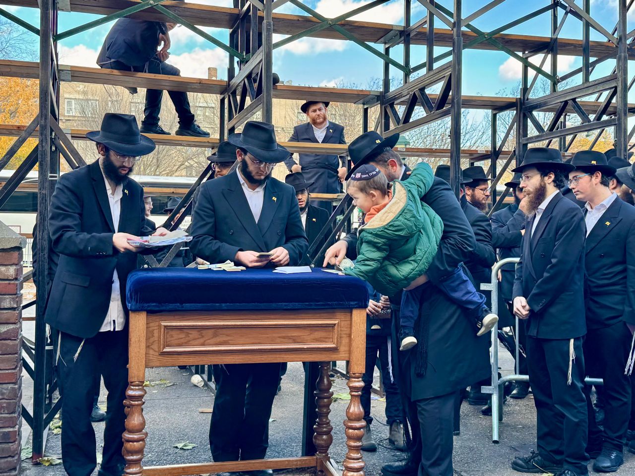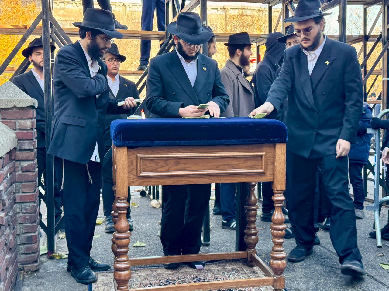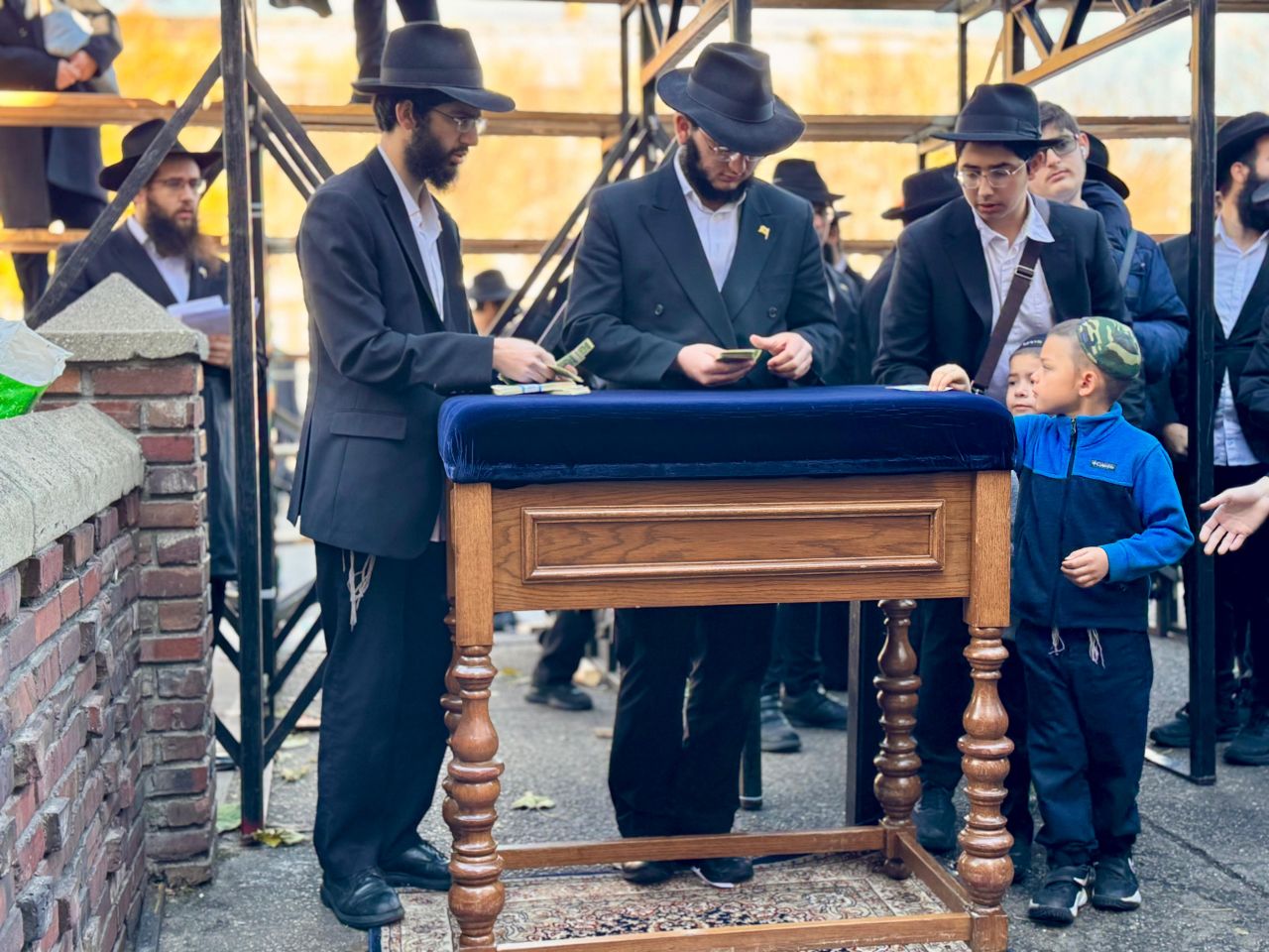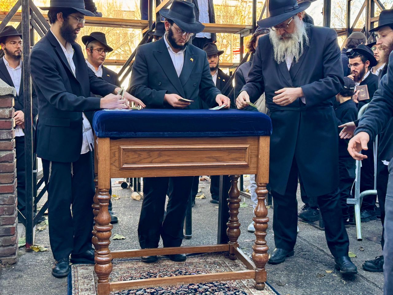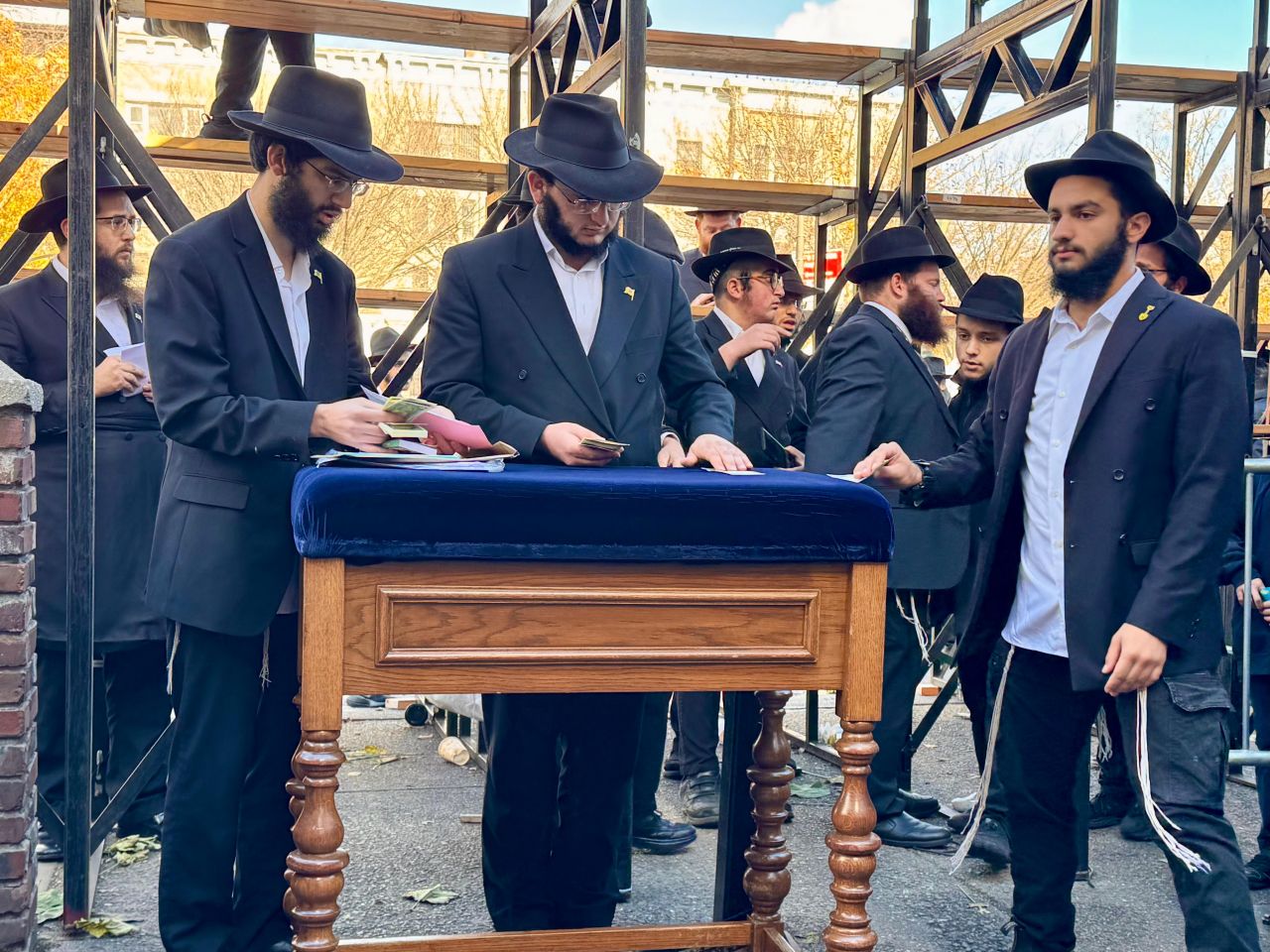 הצלם הת׳ פתחיה אדעליסט תיעד את החלוקה הבוקר בפתחו של 770.