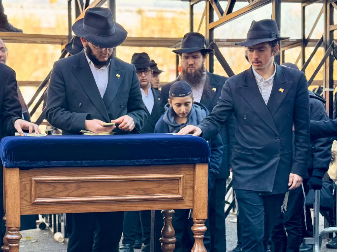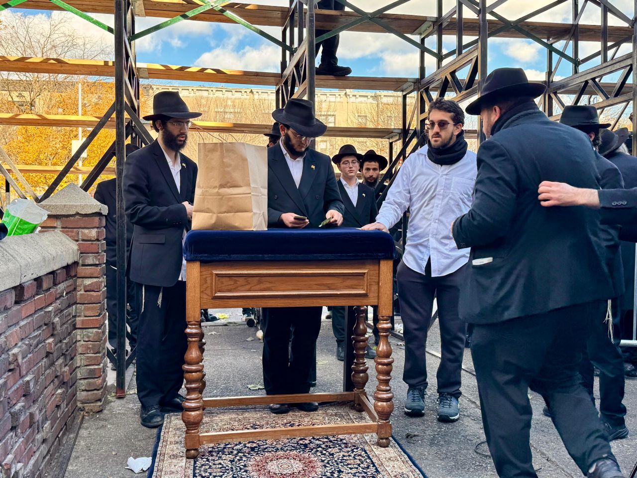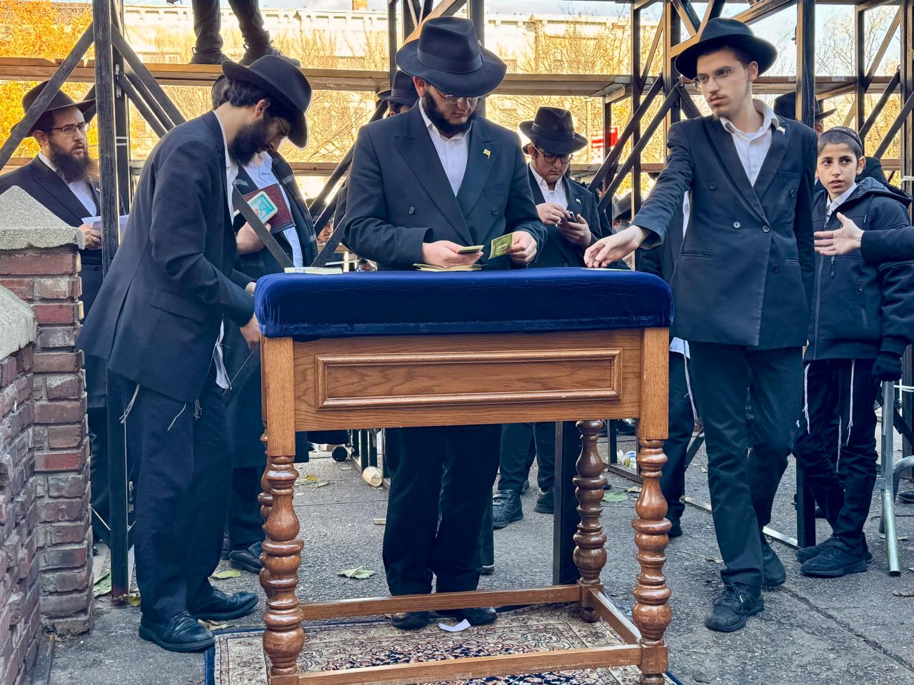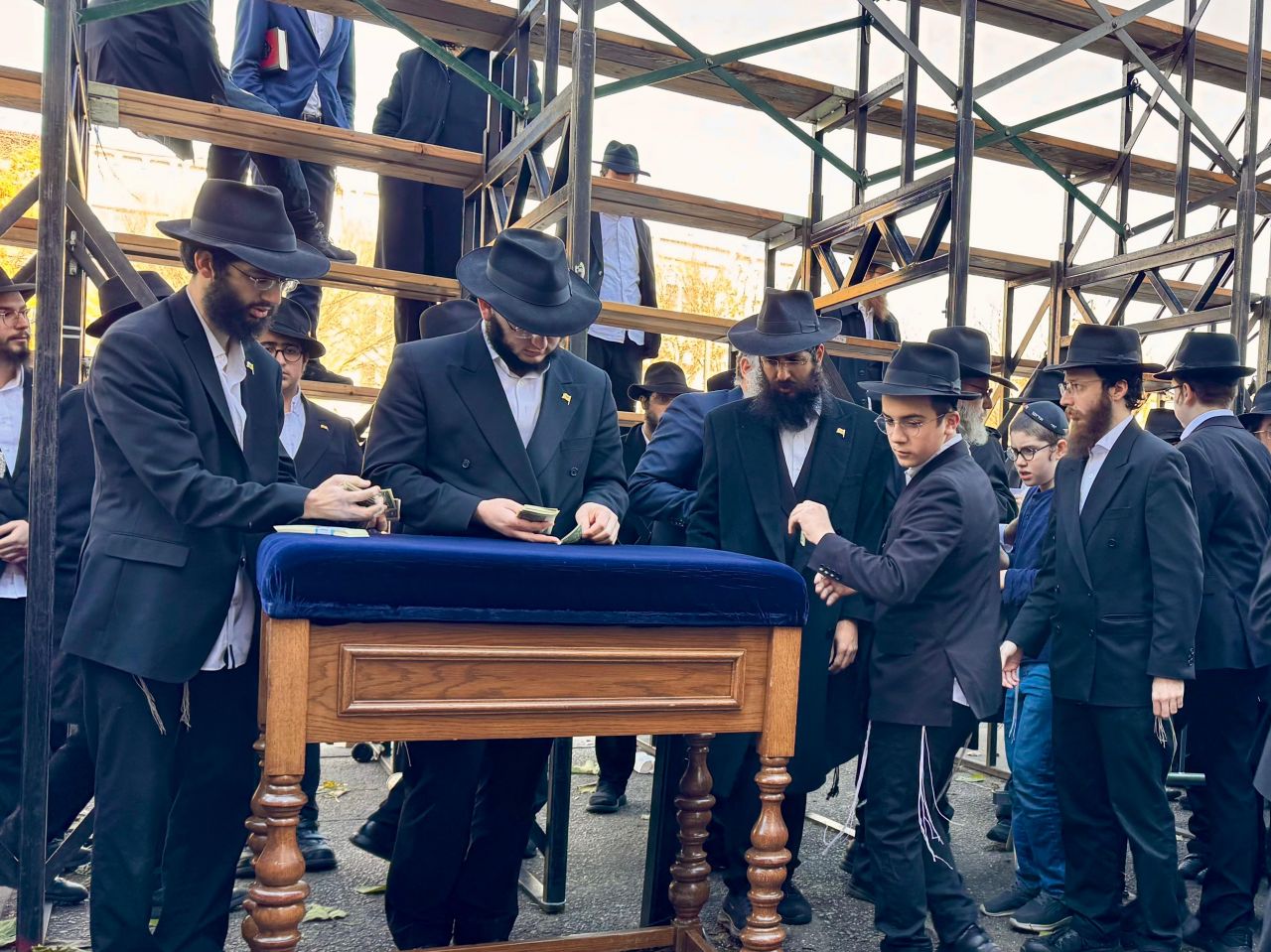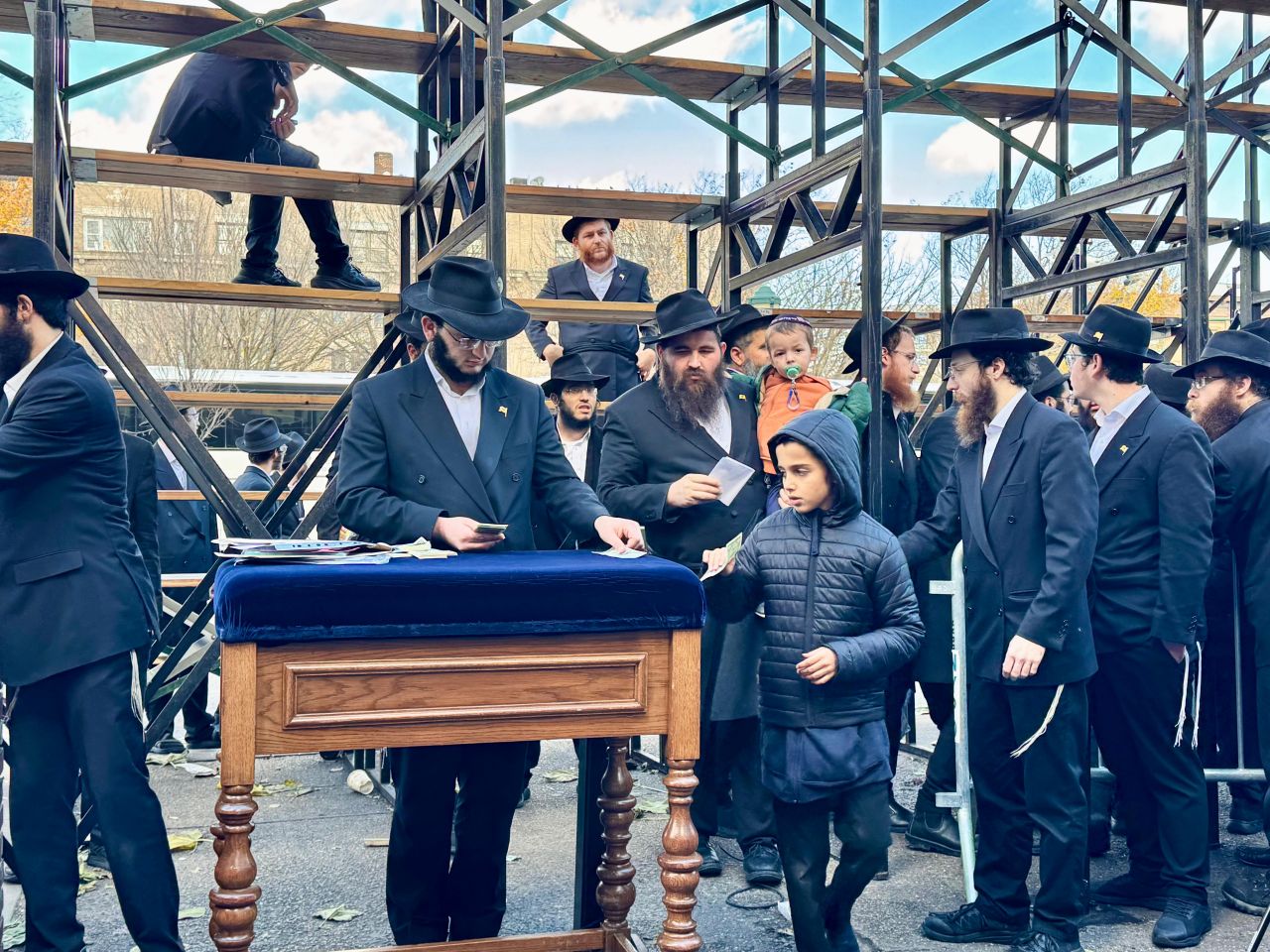 הצלם הת׳ פתחיה אדעליסט תיעד את החלוקה הבוקר בפתחו של 770.