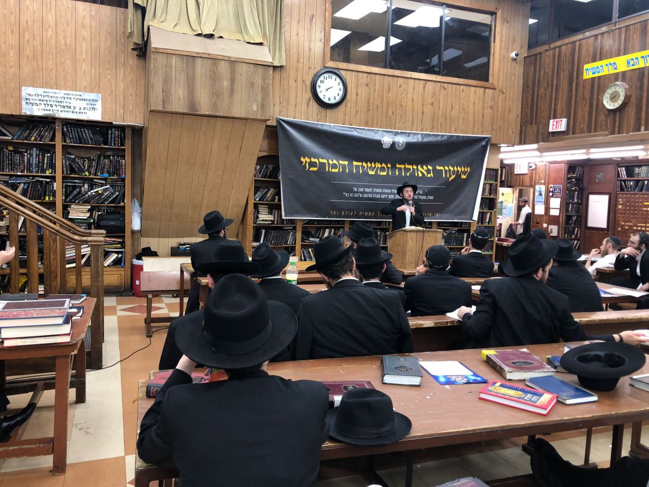 עשרות תמימים ואנ"ש התאספו לשיעור גאולה ומשיח השבועי בבית - משיח 770, שהוקדם עקב אירועי ל"ג בעומר.