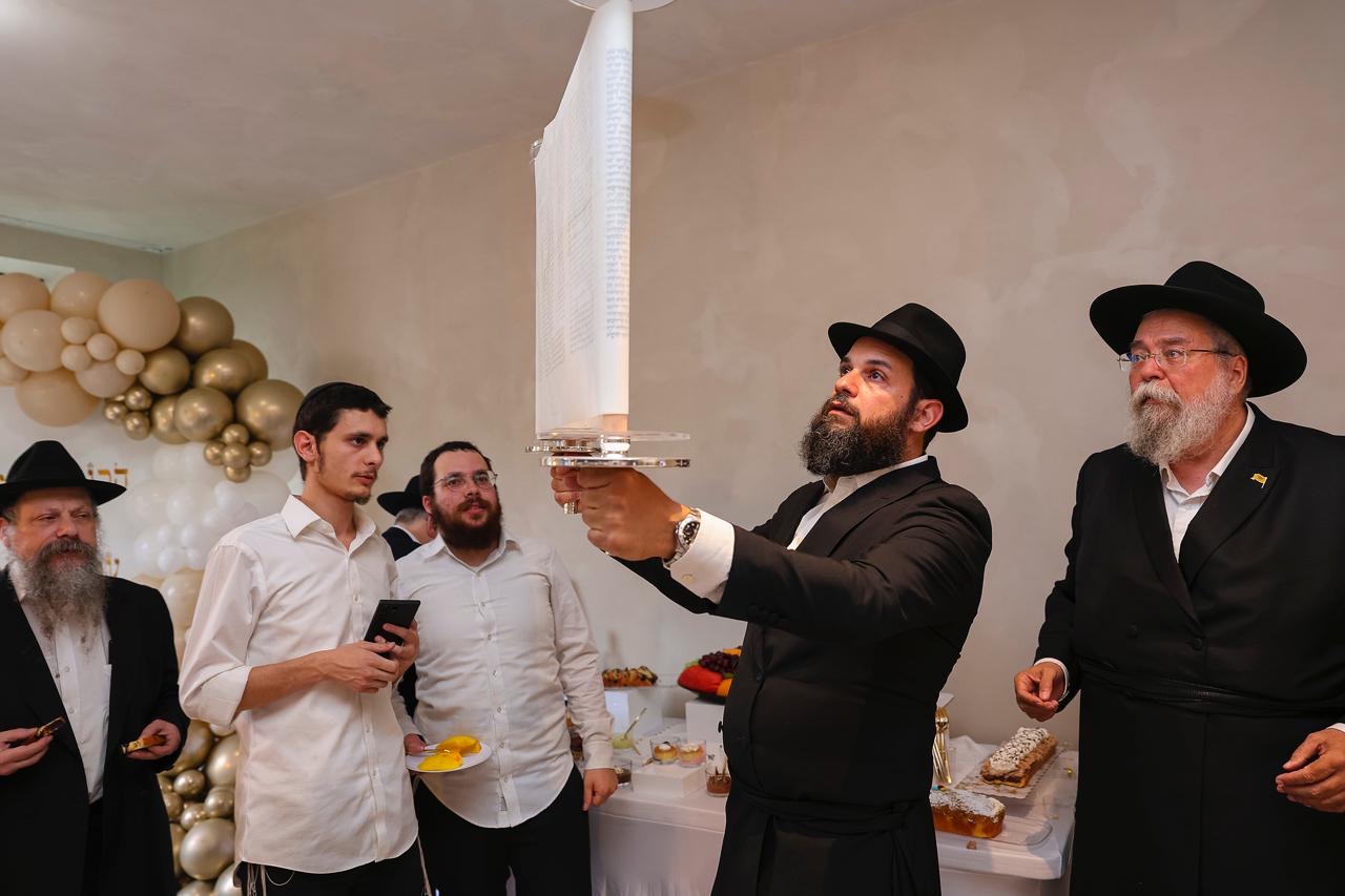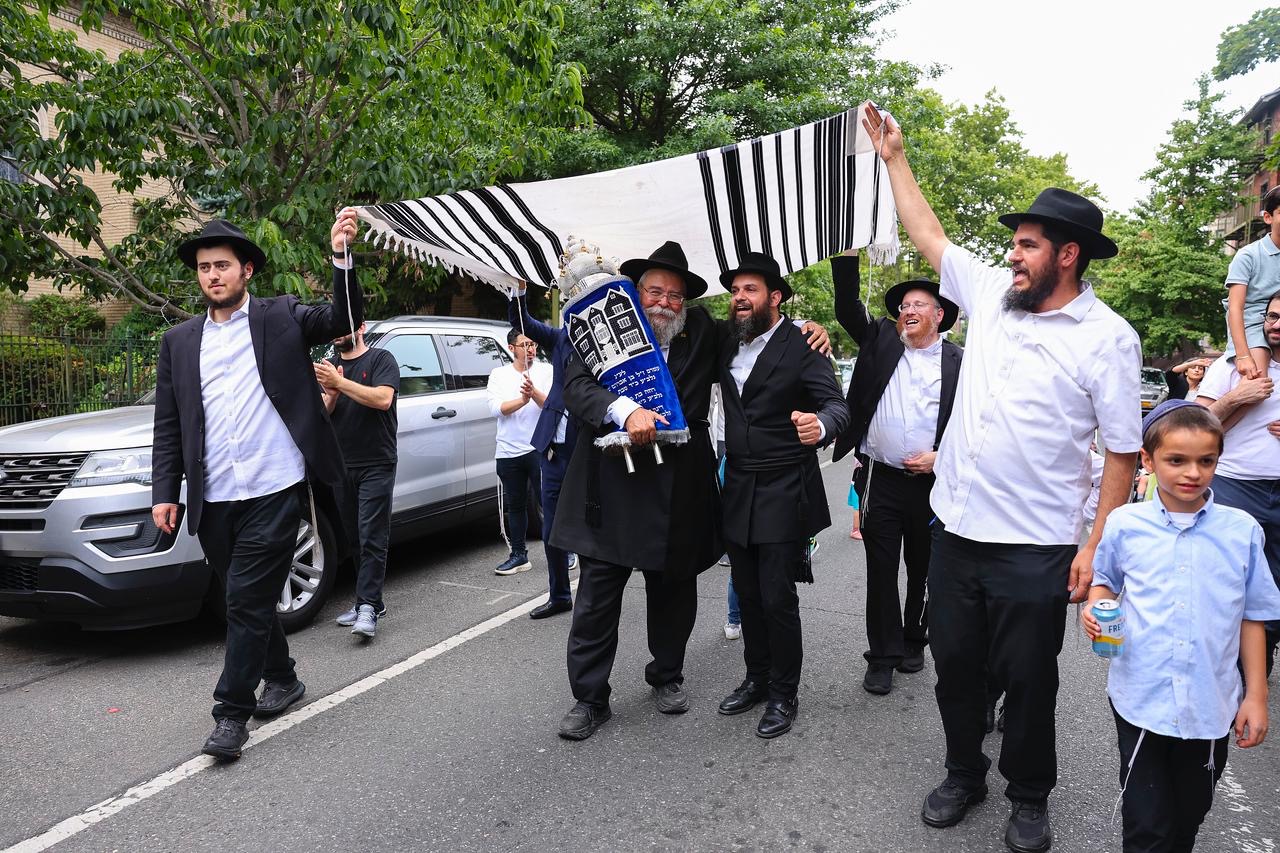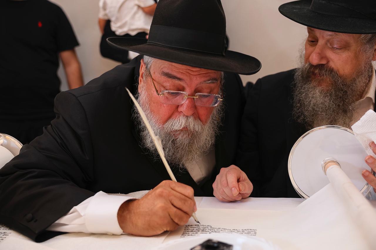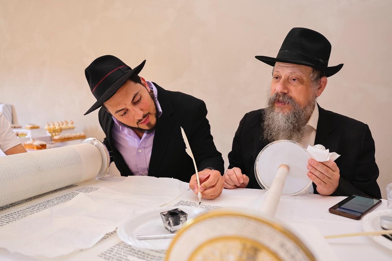 סיום כתיבת האותיות התקיים בבית משפחת חנן שיחיו, ולאחר מכן יצאו בתהלוכה שמחה ברחובות קראון הייטס לעבר בית משיח 770 שם התקיימה שמחת ההקפות והכנסת ספר התורה ברוב שירה וזמרה ושמחה גדולה ורבה