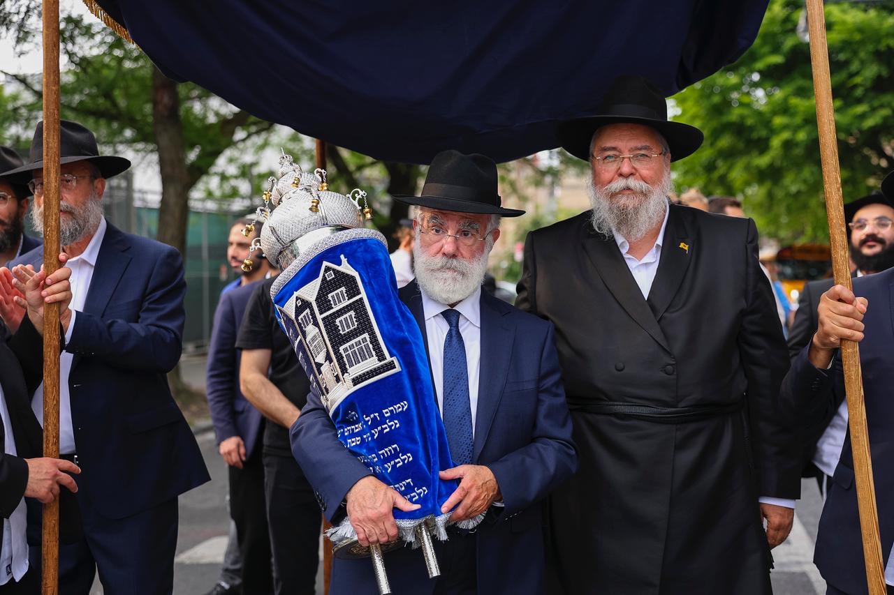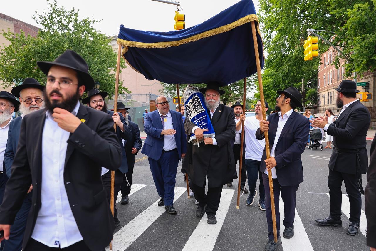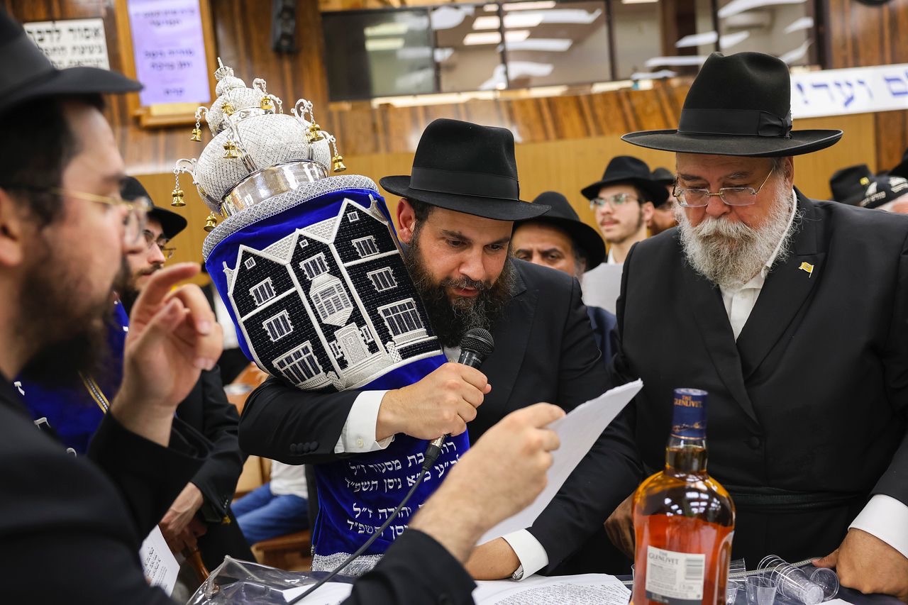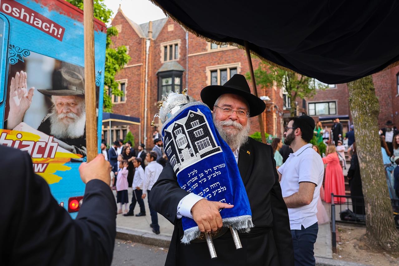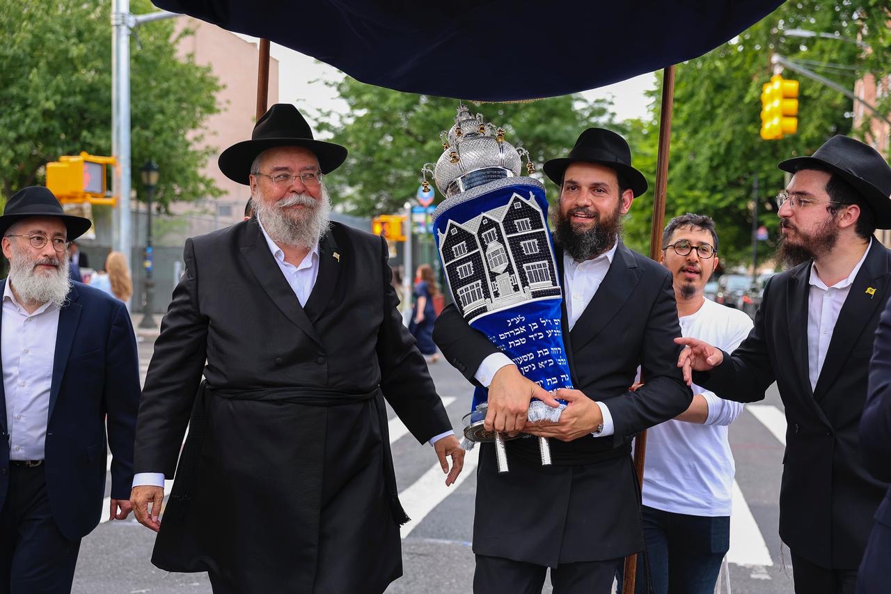 סיום כתיבת האותיות התקיים בבית משפחת חנן שיחיו, ולאחר מכן יצאו בתהלוכה שמחה ברחובות קראון הייטס לעבר בית משיח 770 שם התקיימה שמחת ההקפות והכנסת ספר התורה ברוב שירה וזמרה ושמחה גדולה ורבה
