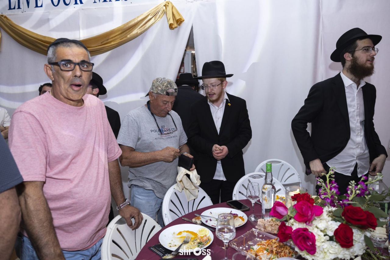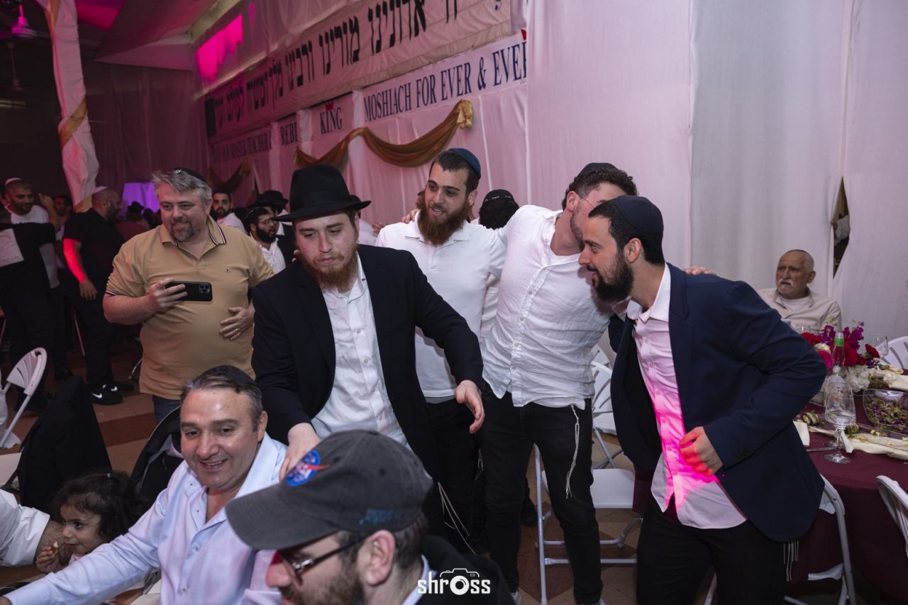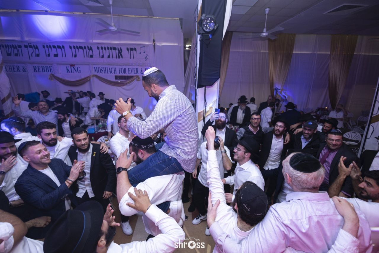 תוך כדי הסעודה החגיגית ואמירת 'לחיים' פותח הזמר המוכר בערל צוקר במחרוזת ניגוני חב"ד תוך נגינה של אומן הקלידים מענדי גדסי המקפיץ את הקהל בשמחה ובחיות מיוחדת.