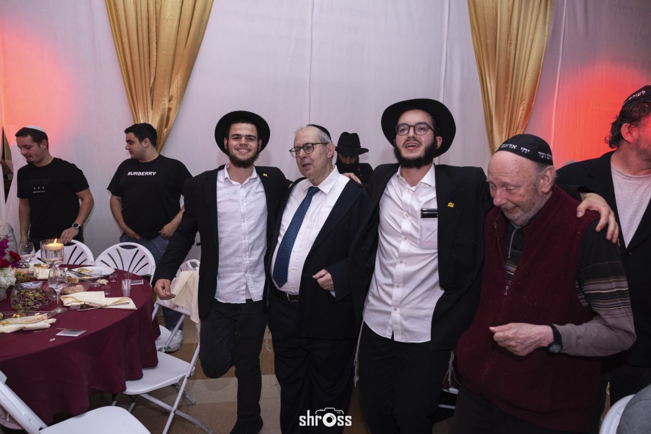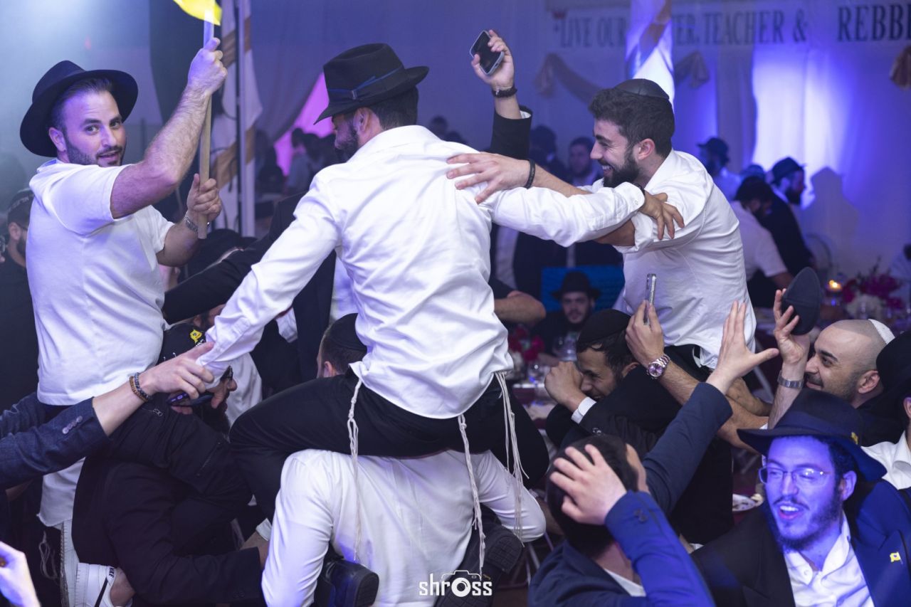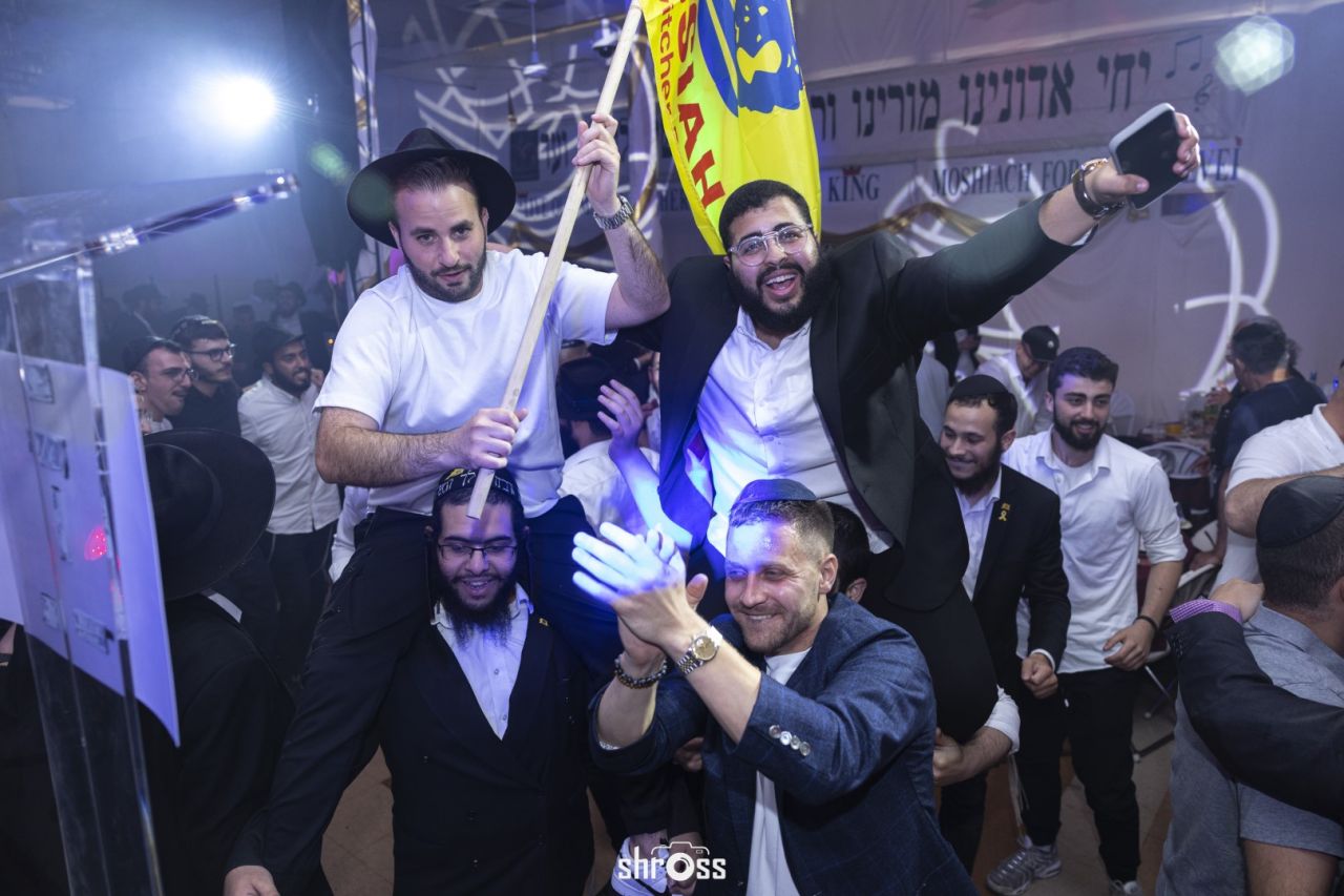תוך כדי הסעודה החגיגית ואמירת 'לחיים' פותח הזמר המוכר בערל צוקר במחרוזת ניגוני חב"ד תוך נגינה של אומן הקלידים מענדי גדסי המקפיץ את הקהל בשמחה ובחיות מיוחדת.
