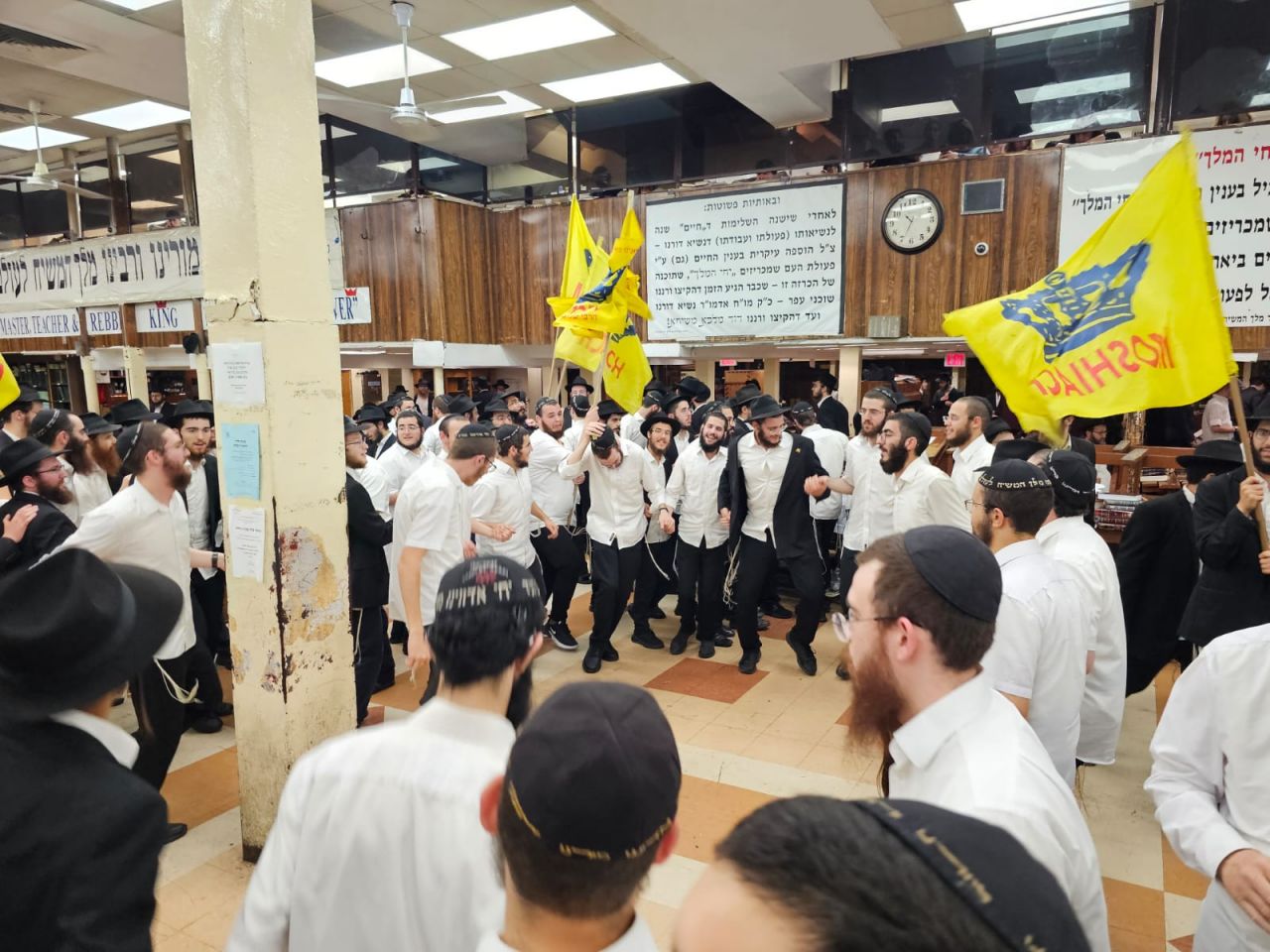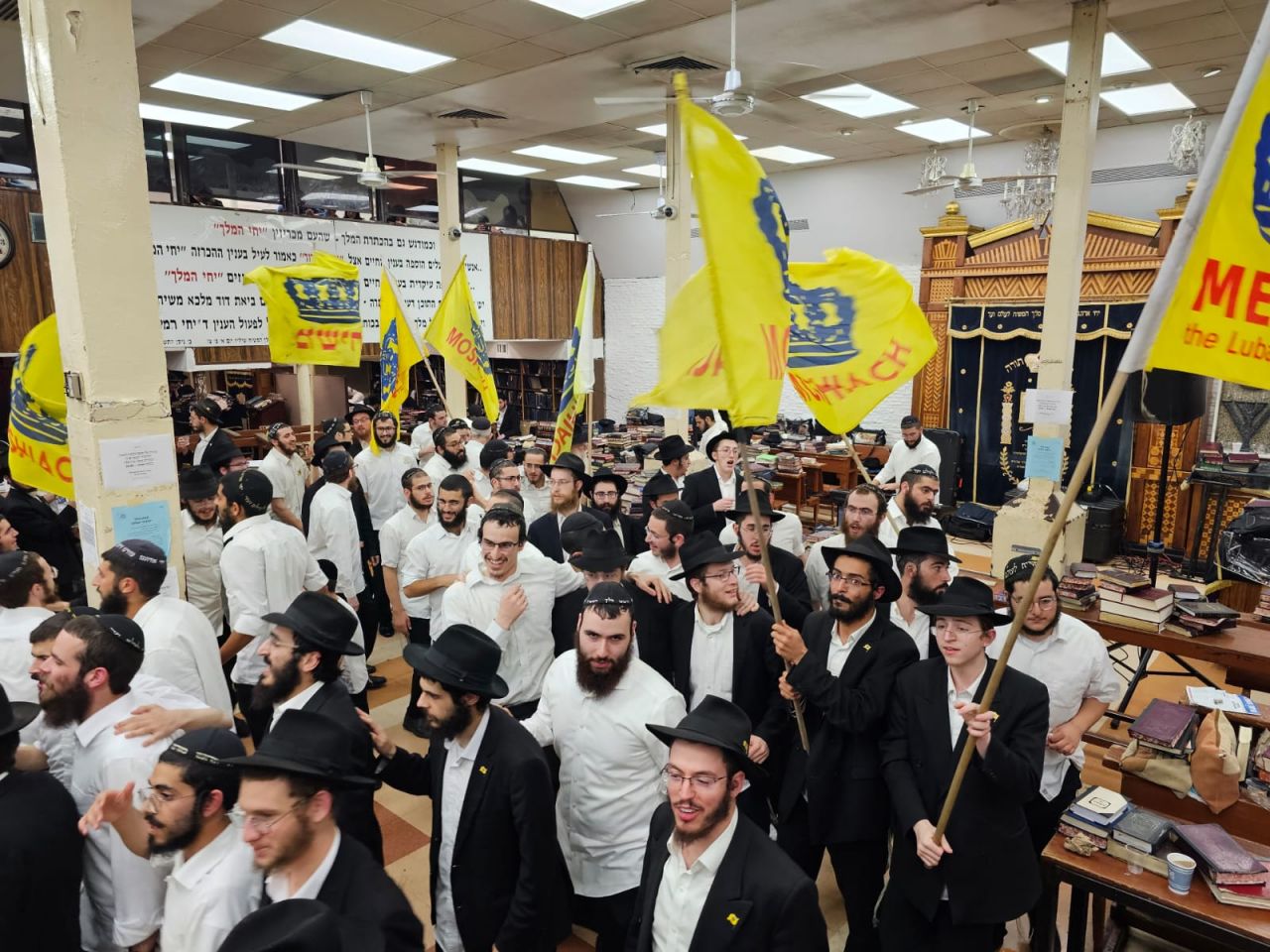 מטה שירה וזמרה ב-770, נטל על עצמו את המשימה לארגן ריקודי שמחה, במועדים שונים, ובינהם התאריך ט"ו אלול. אמש התקיימו ריקודים סוערים עם דגלי משיח ובתוספת נגינה בכלי שיר.
