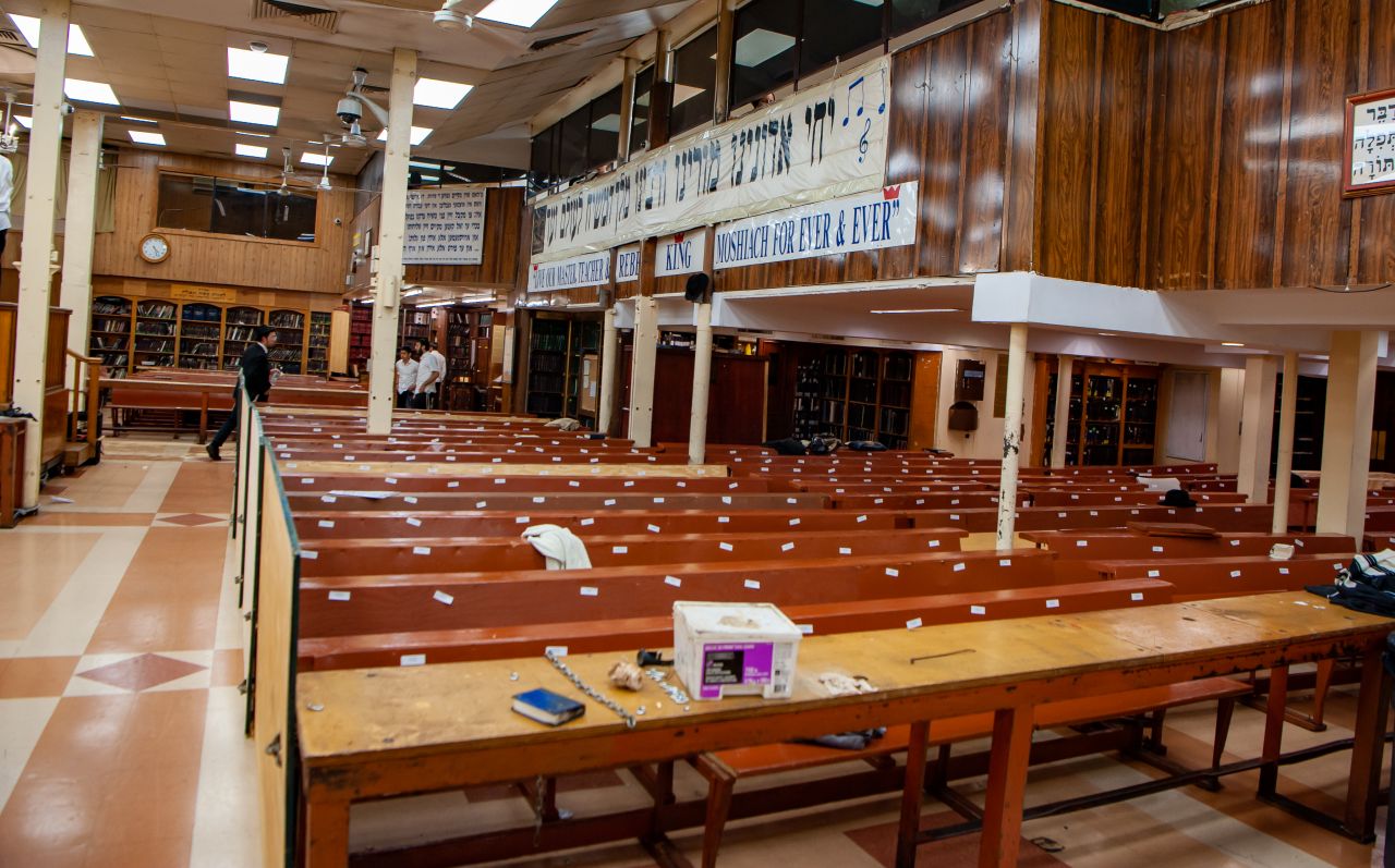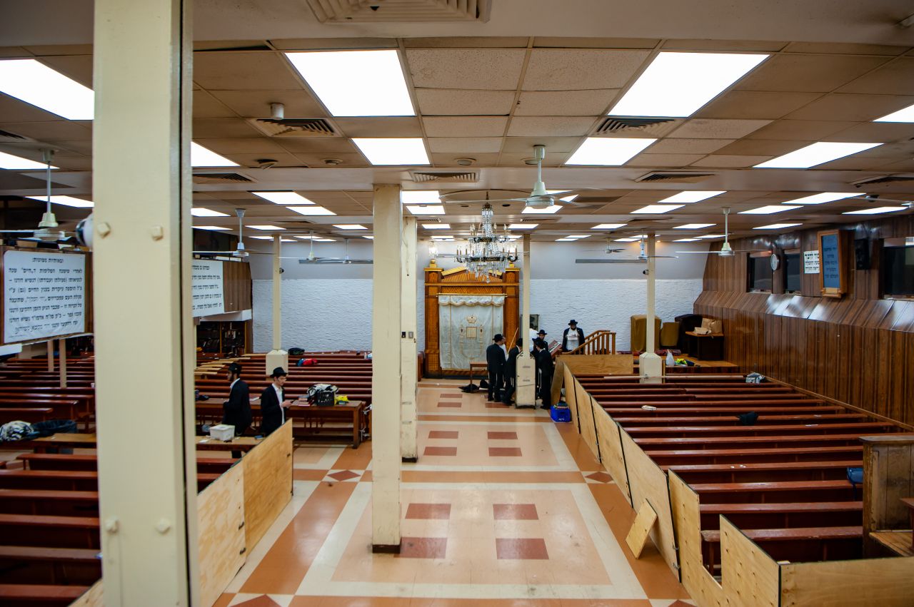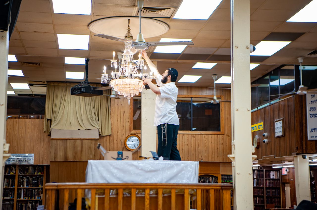 מאחרי תפילת שחרית בערב ראש השנה ועד דקות לפני כניסת החג, עמלו האחראים לנקות ולסדר את הזאל הגדול של 770 לקראת ראש השנה.