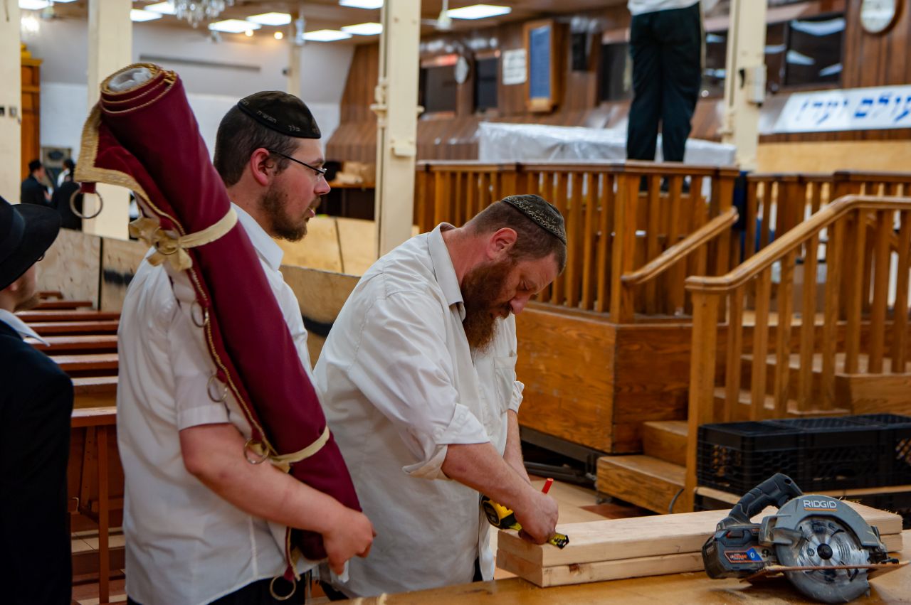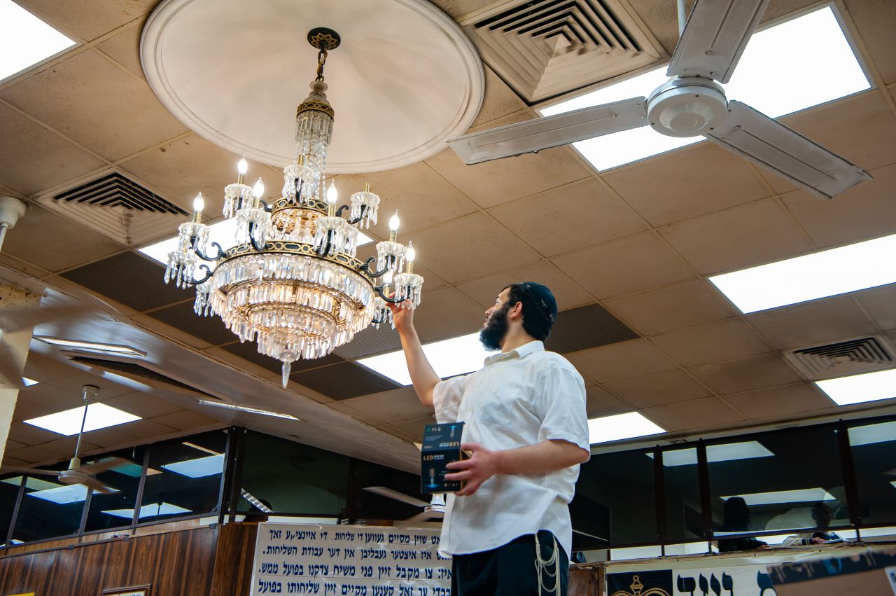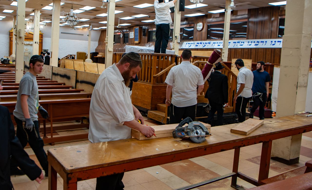 מאחרי תפילת שחרית בערב ראש השנה ועד דקות לפני כניסת החג, עמלו האחראים לנקות ולסדר את הזאל הגדול של 770 לקראת ראש השנה.