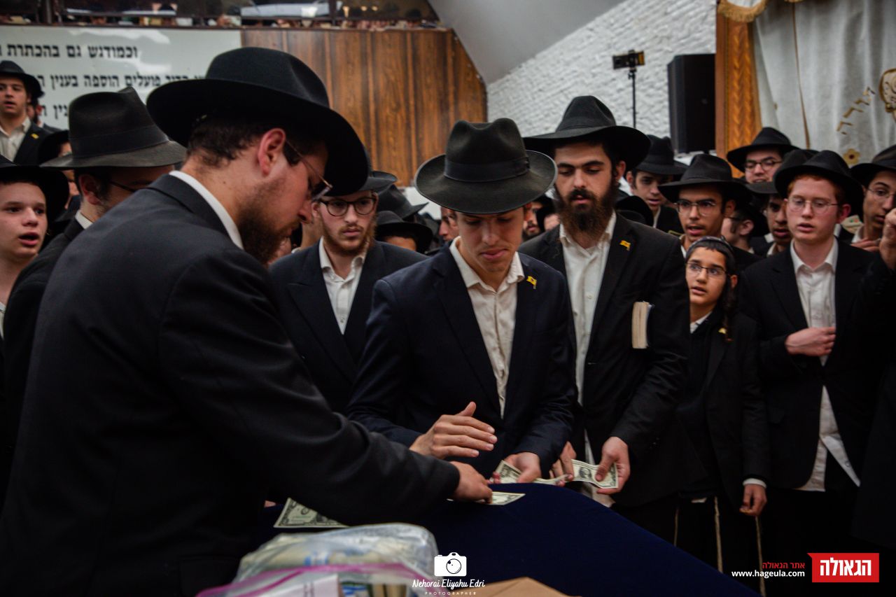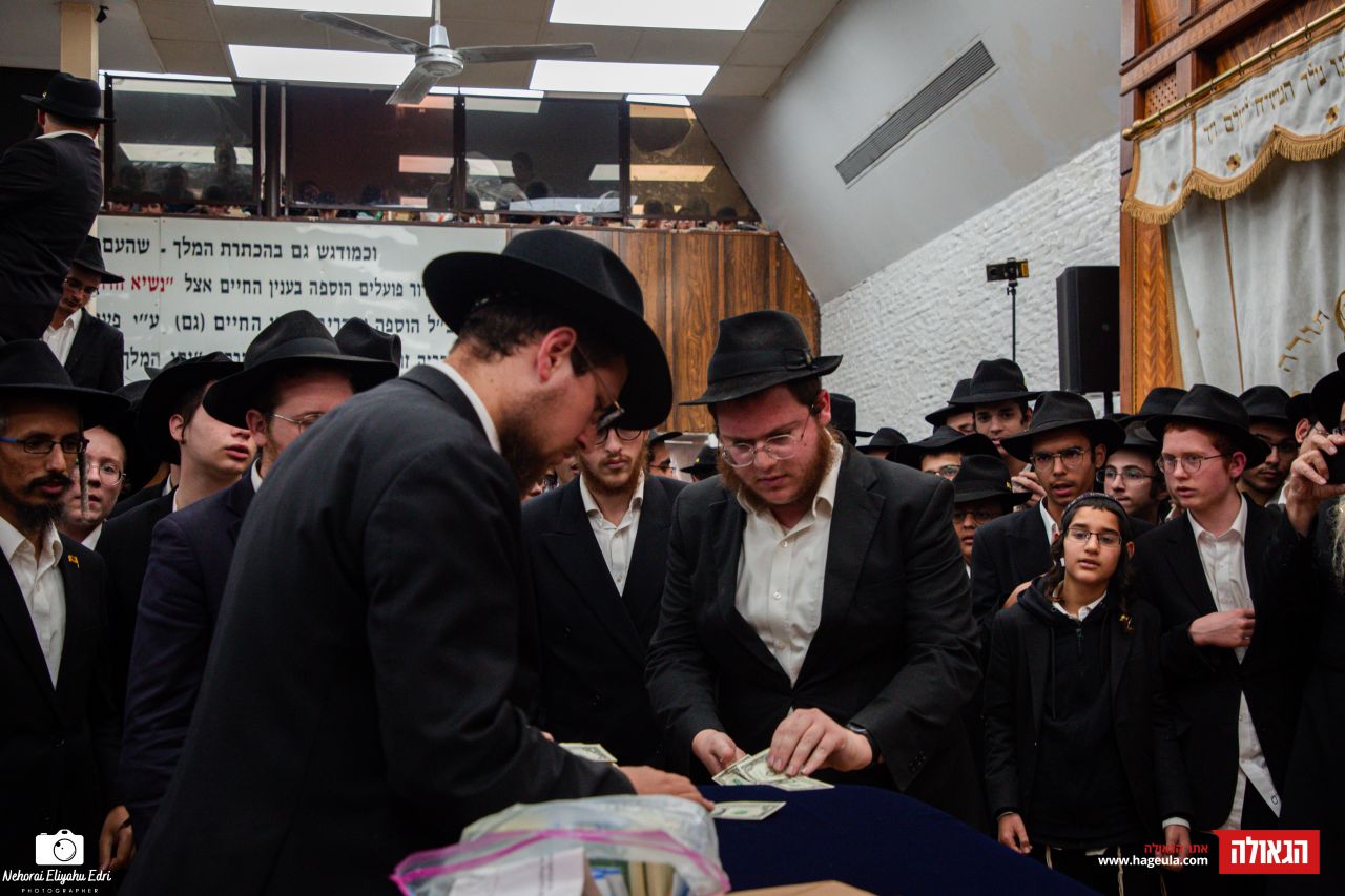 אמש (רביעי) לאחר תפילת מנחה וקריאת התורה נשאר הקהל לעמוד על מקומו ל"דברי כיבושין" - שיחה לרגל 'יום רצון לה'". לאחר כשעה החל מעמד חלוקת דולרים לברכה והצלחה בזאל הגדול.