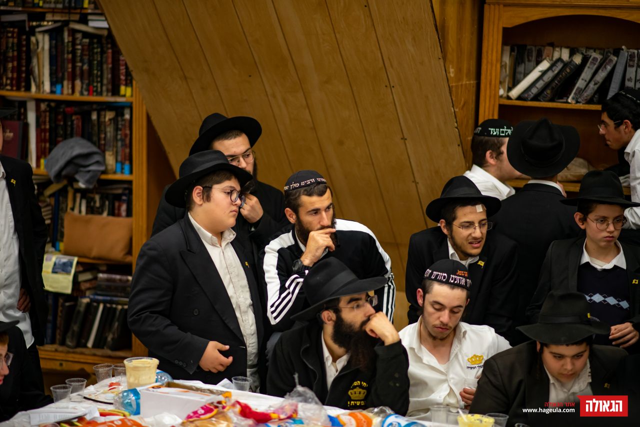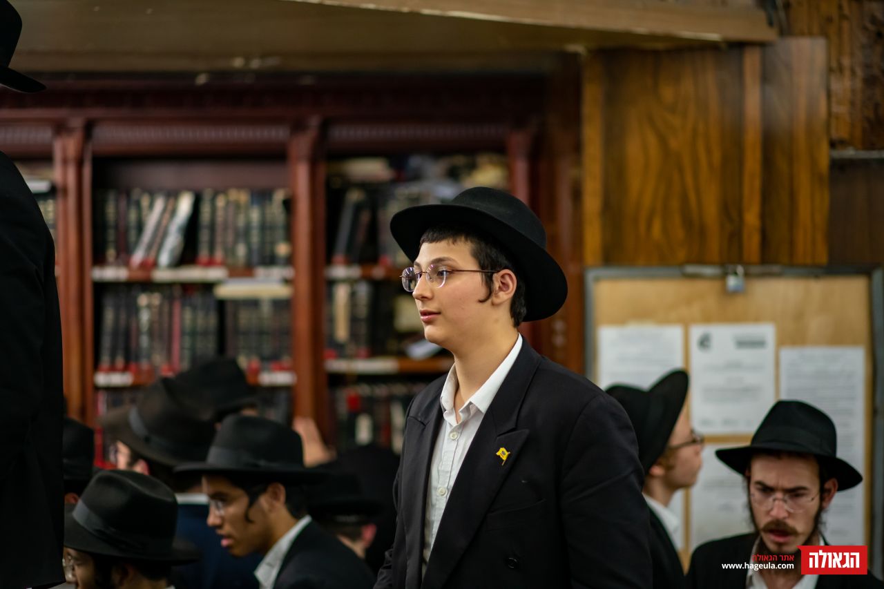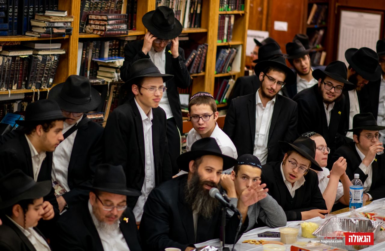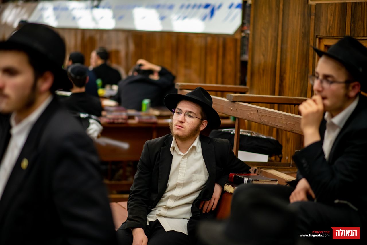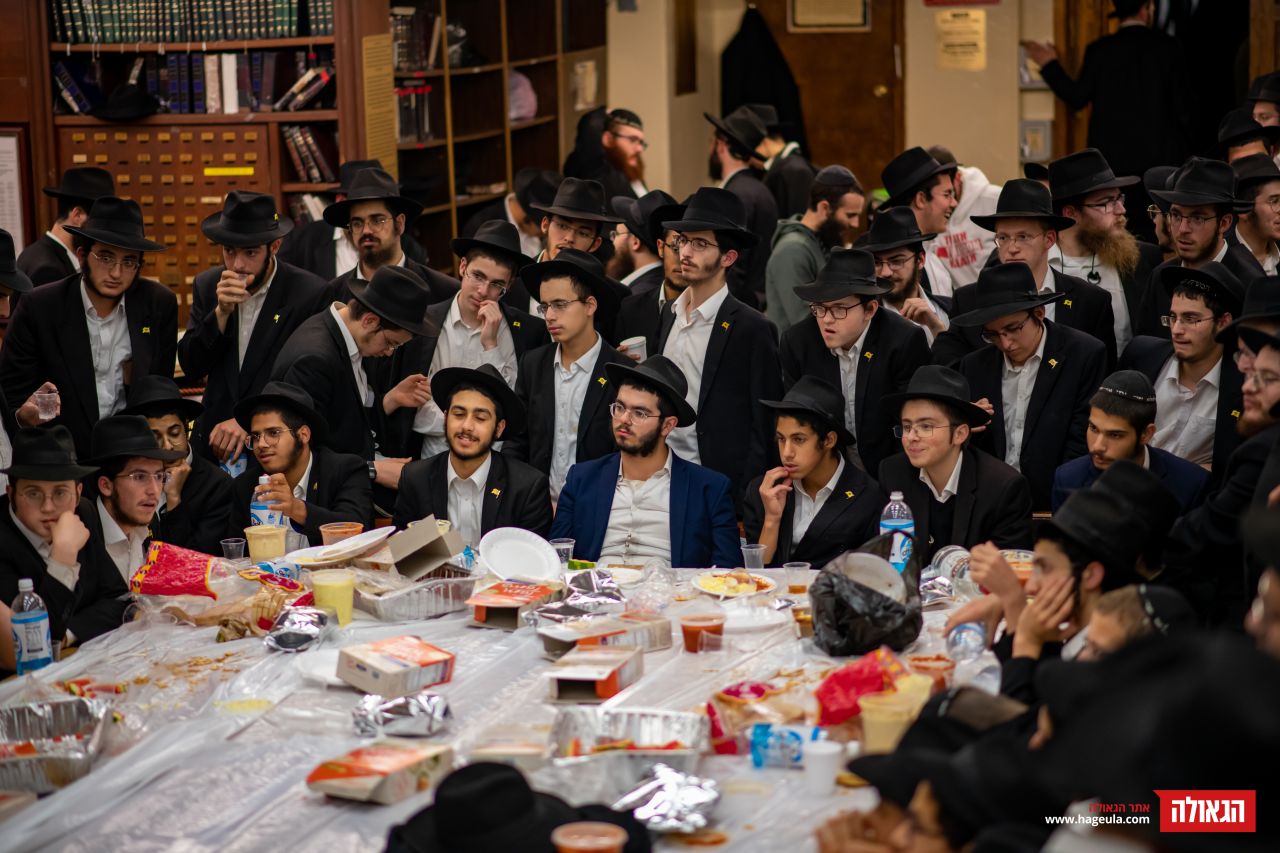 כ-200 בחורים ישבו סביב השולחן והספסלים הסמוכים והאזינו לרבנים בקשב.