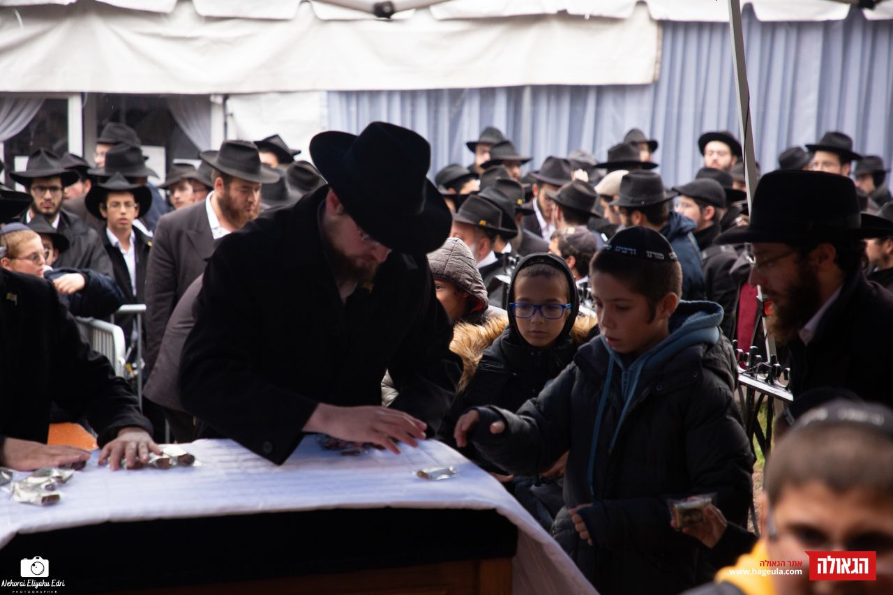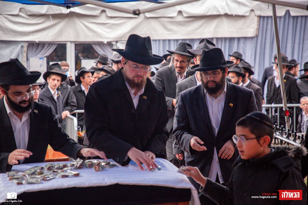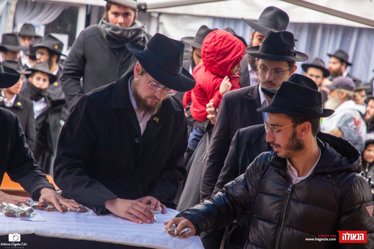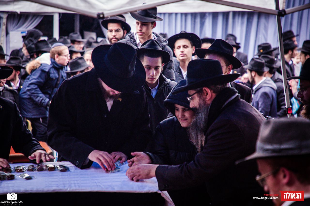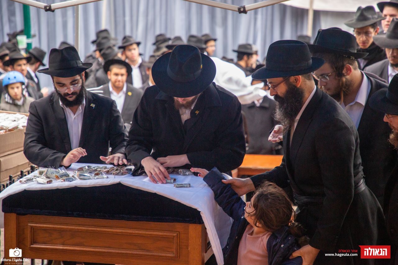 לאחר כעשרים דקות החל הרבי מלך המשיח שליט"א לחלק לקהל האלפים פרוסת 'לעקאח' - עוגת דבש בצירוף שטר של דולר, כפי מנהג חב"ד. לאחר תור הגברים, עברו גם מאות נשים לקבל 'לעקאח'.