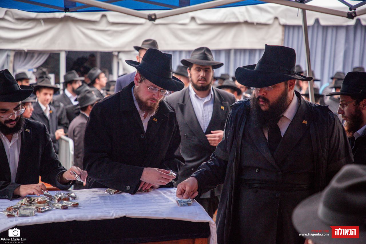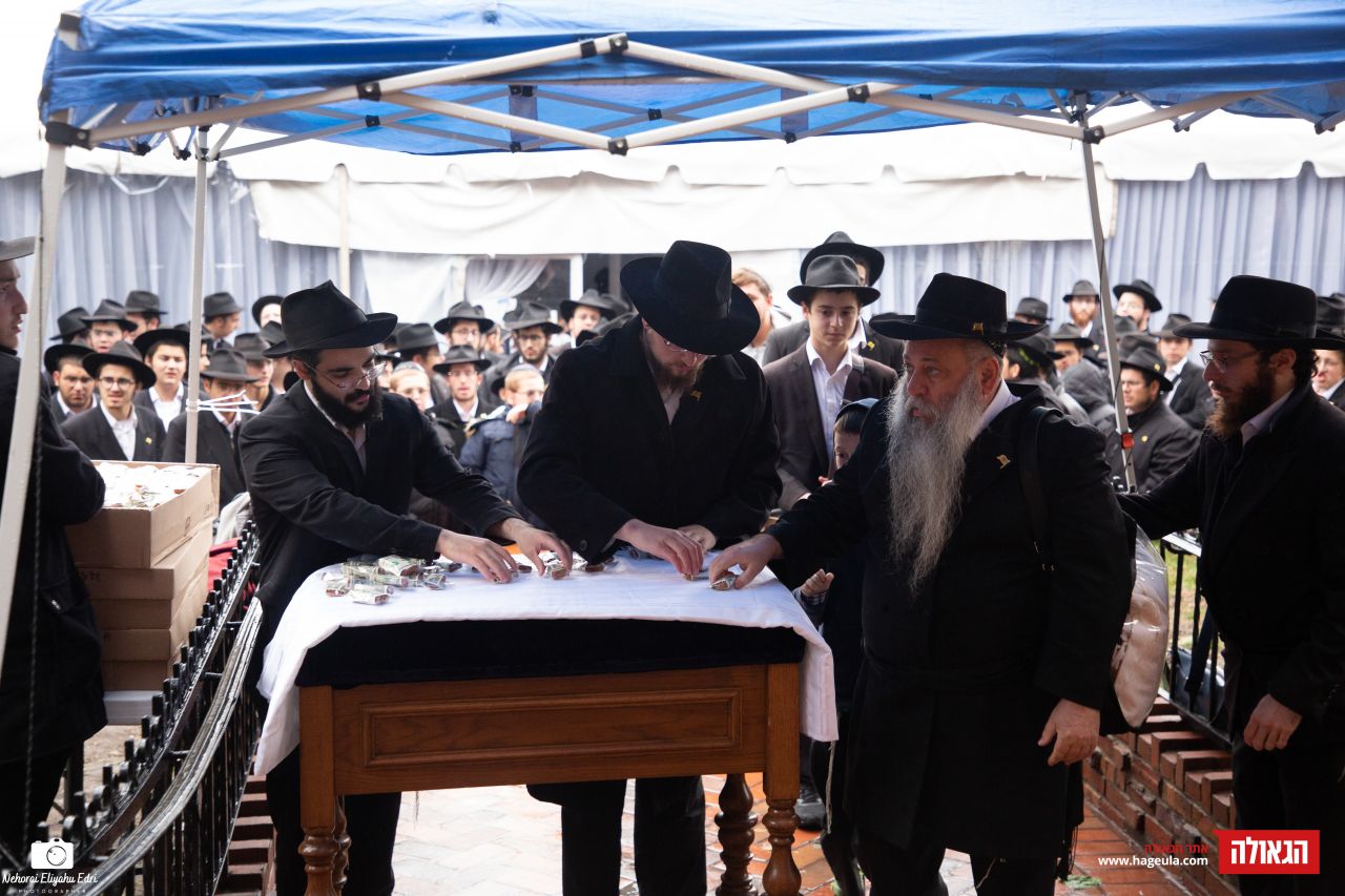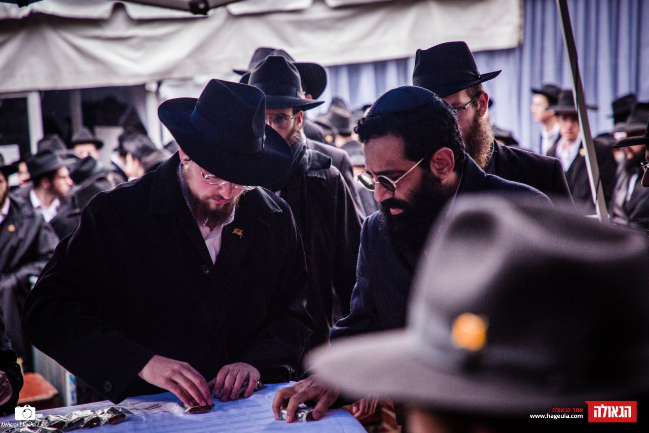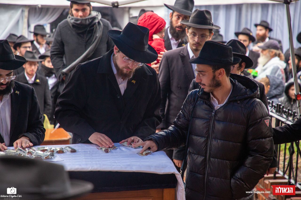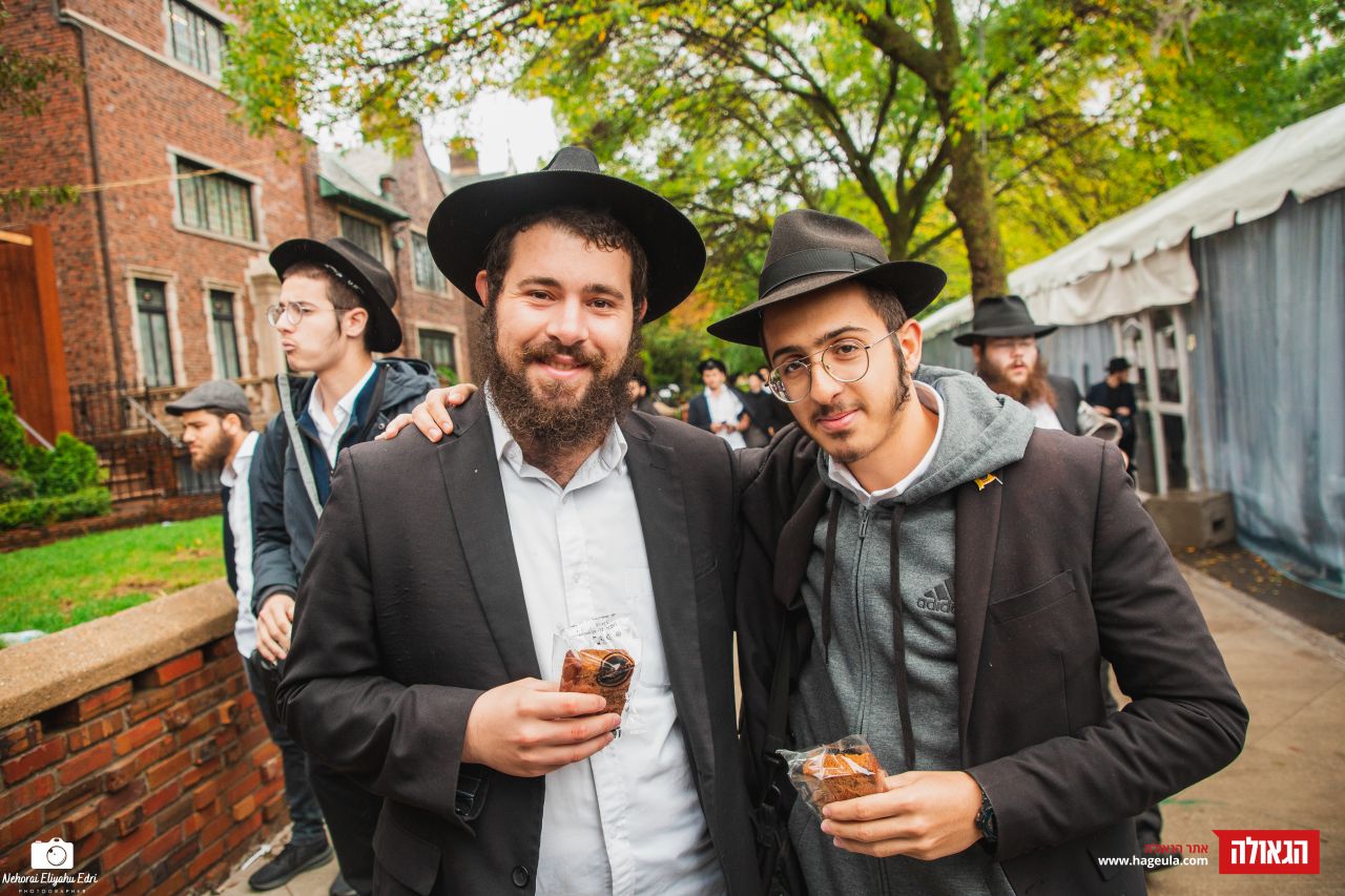 לאחר כעשרים דקות החל הרבי מלך המשיח שליט"א לחלק לקהל האלפים פרוסת 'לעקאח' - עוגת דבש בצירוף שטר של דולר, כפי מנהג חב"ד. לאחר תור הגברים, עברו גם מאות נשים לקבל 'לעקאח'.