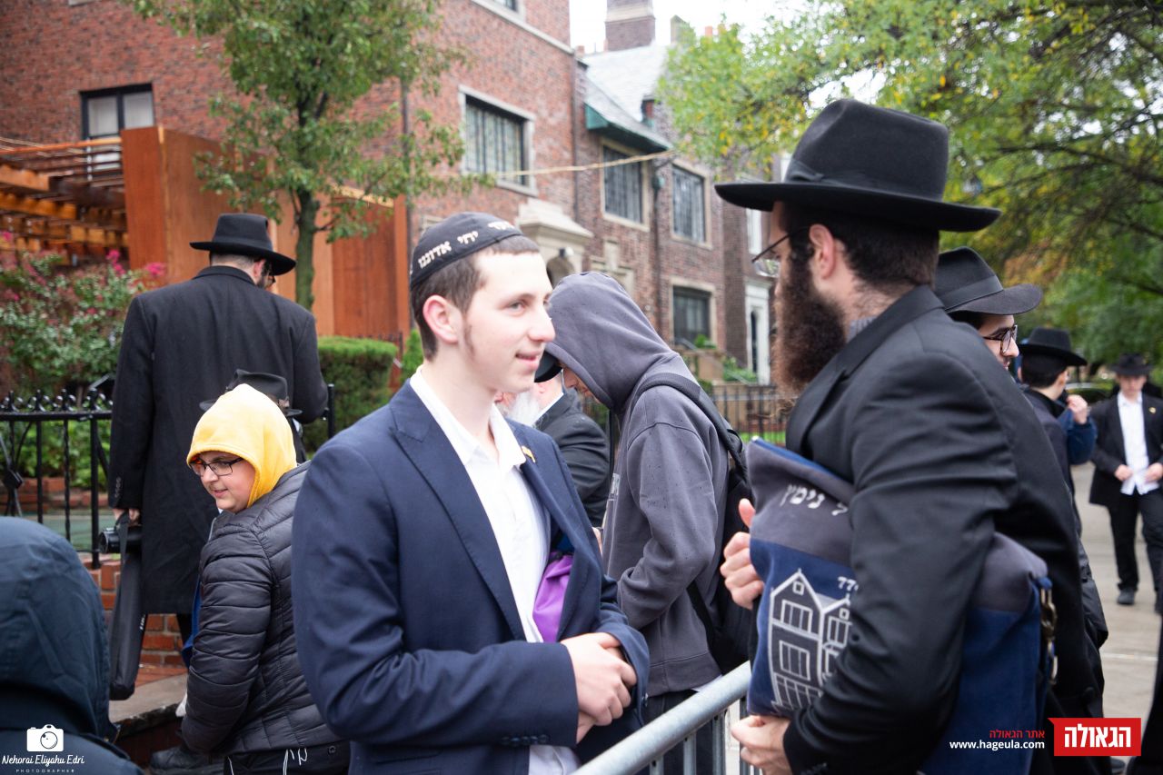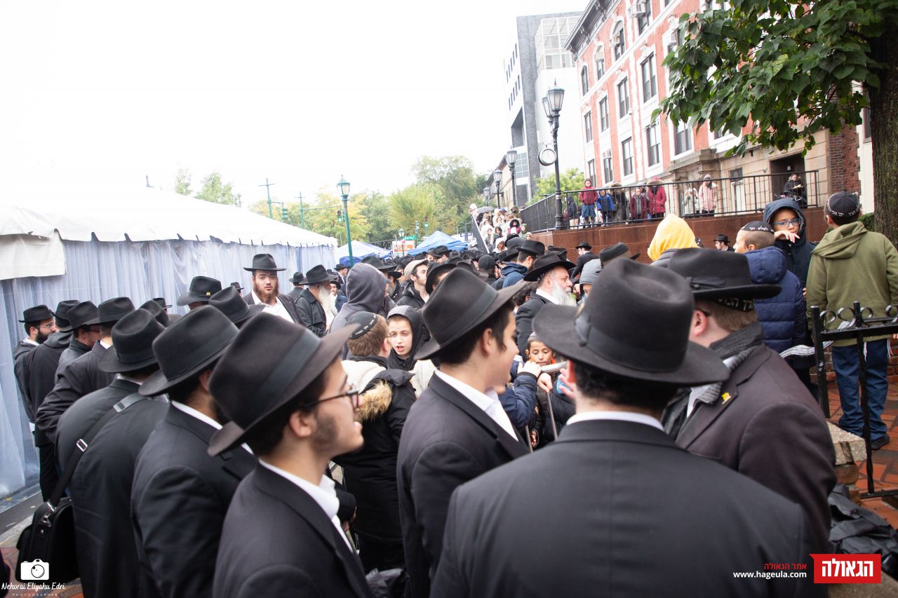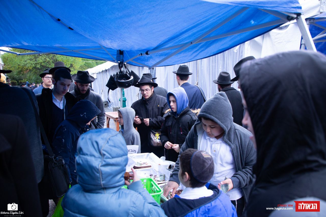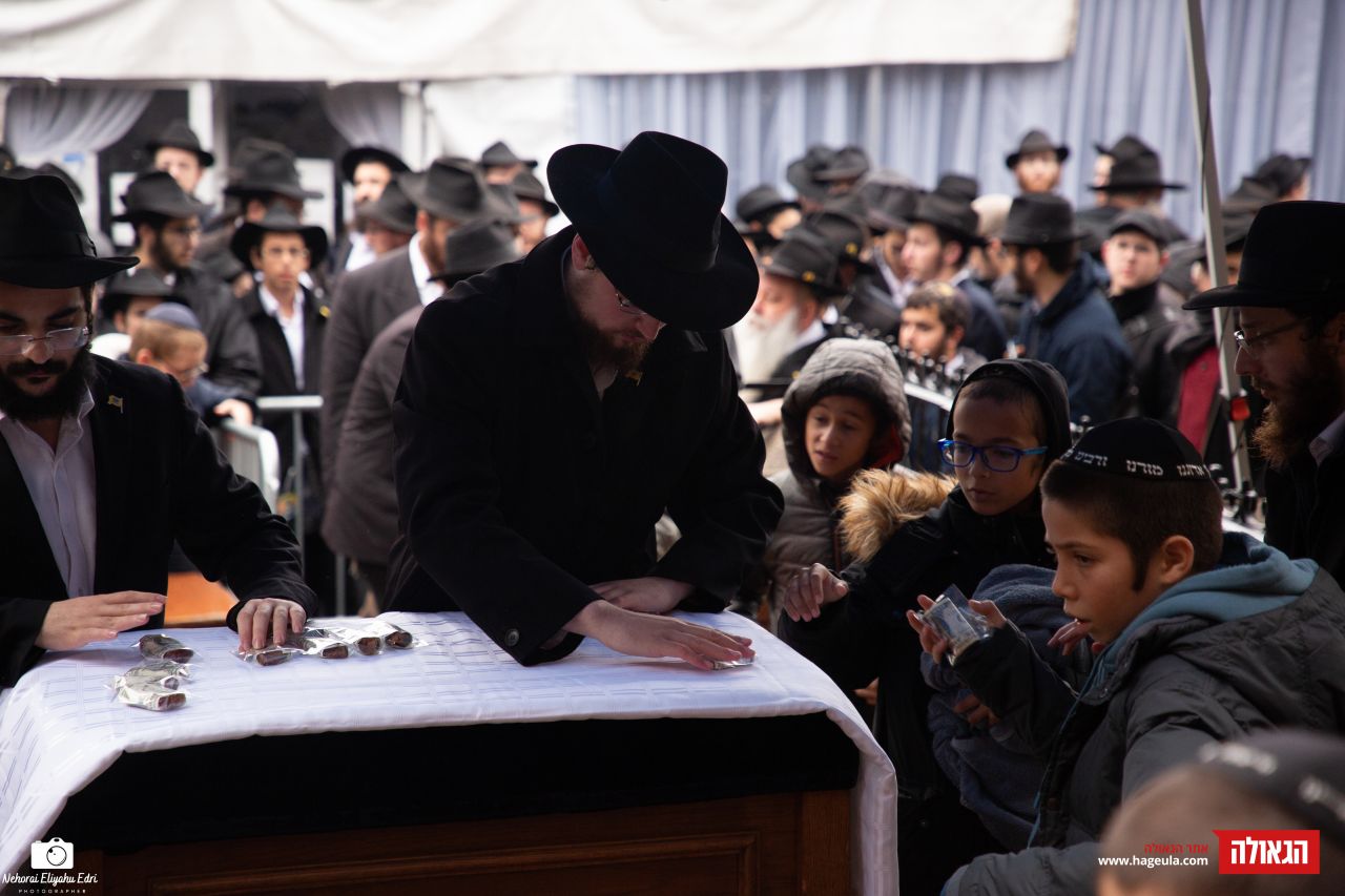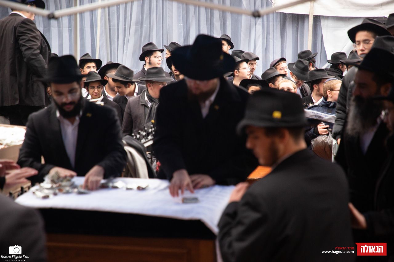 לאחר כעשרים דקות החל הרבי מלך המשיח שליט"א לחלק לקהל האלפים פרוסת 'לעקאח' - עוגת דבש בצירוף שטר של דולר, כפי מנהג חב"ד. לאחר תור הגברים, עברו גם מאות נשים לקבל 'לעקאח'.