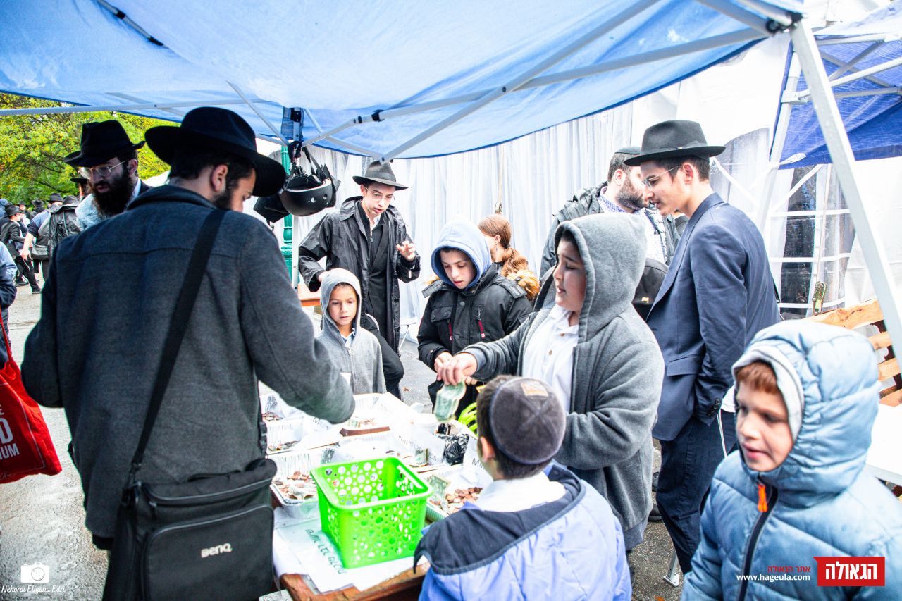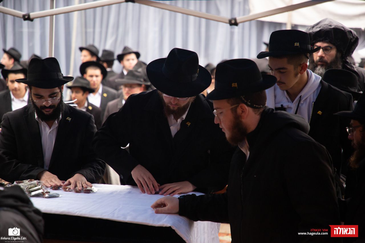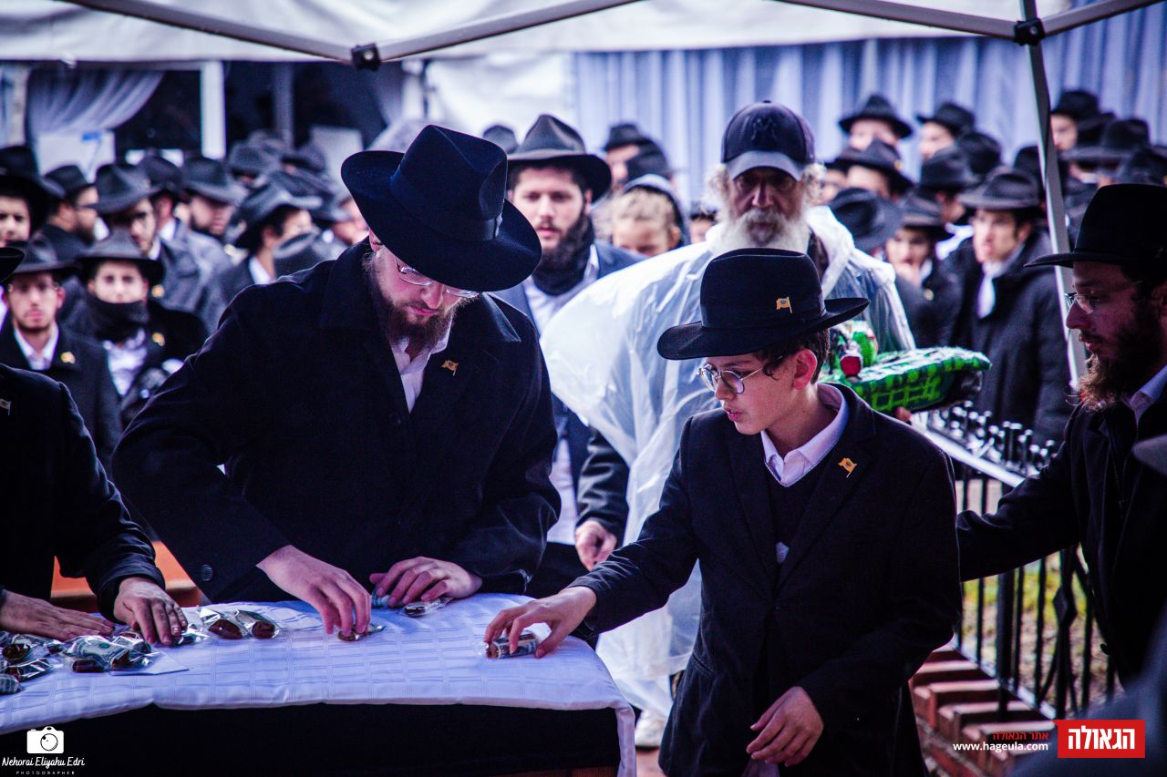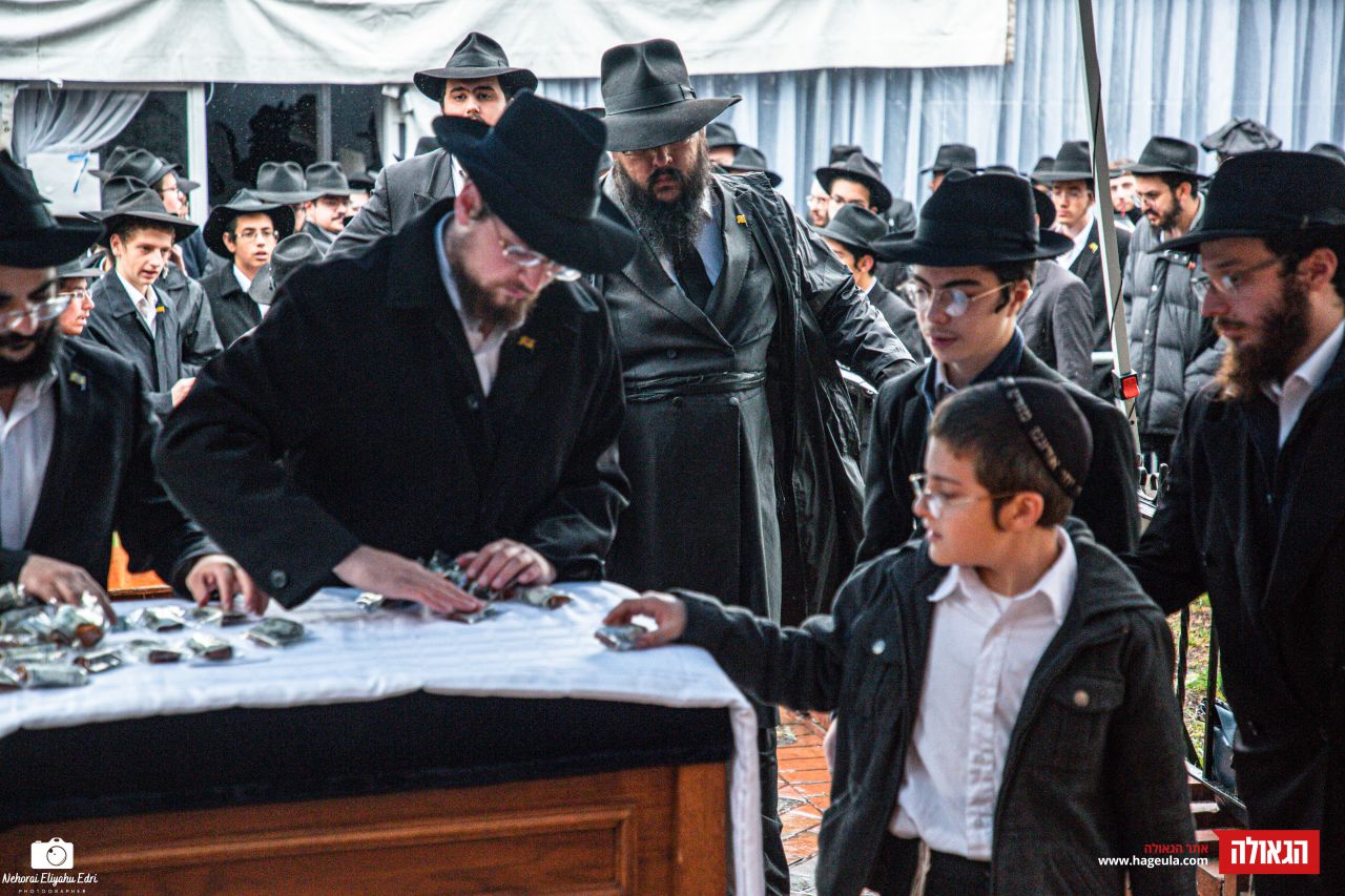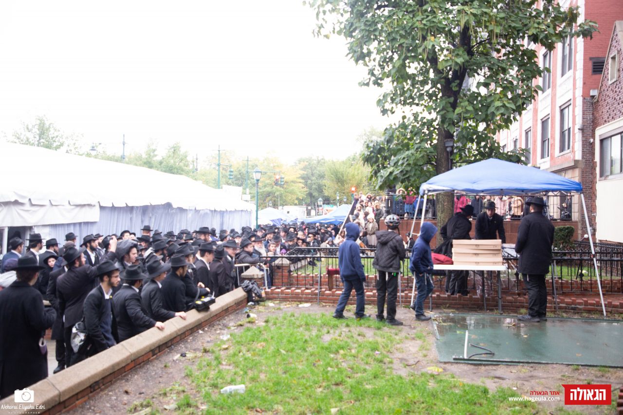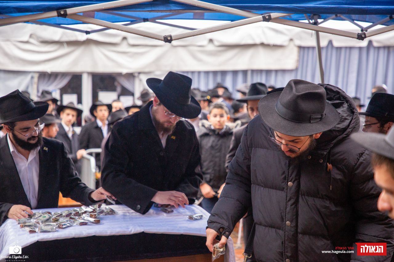 לאחר כעשרים דקות החל הרבי מלך המשיח שליט"א לחלק לקהל האלפים פרוסת 'לעקאח' - עוגת דבש בצירוף שטר של דולר, כפי מנהג חב"ד. לאחר תור הגברים, עברו גם מאות נשים לקבל 'לעקאח'.