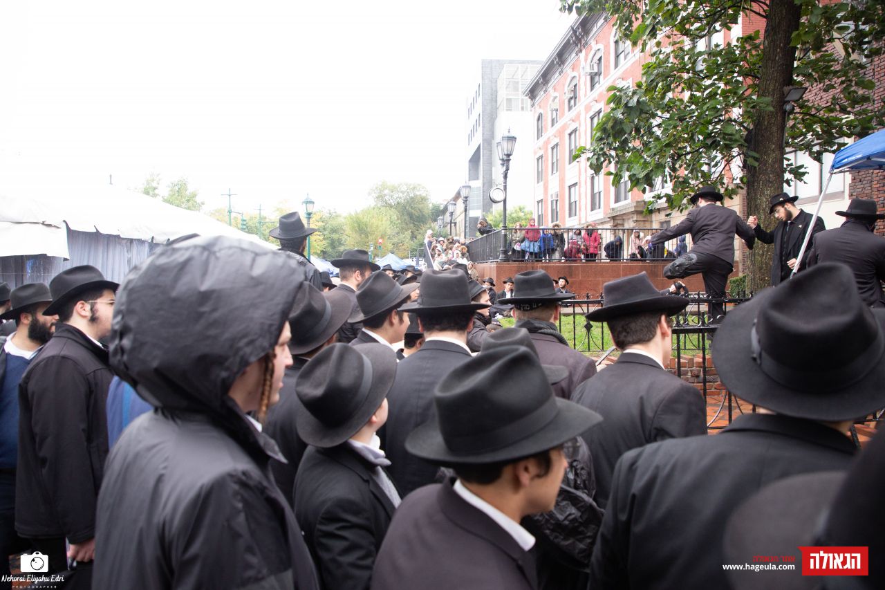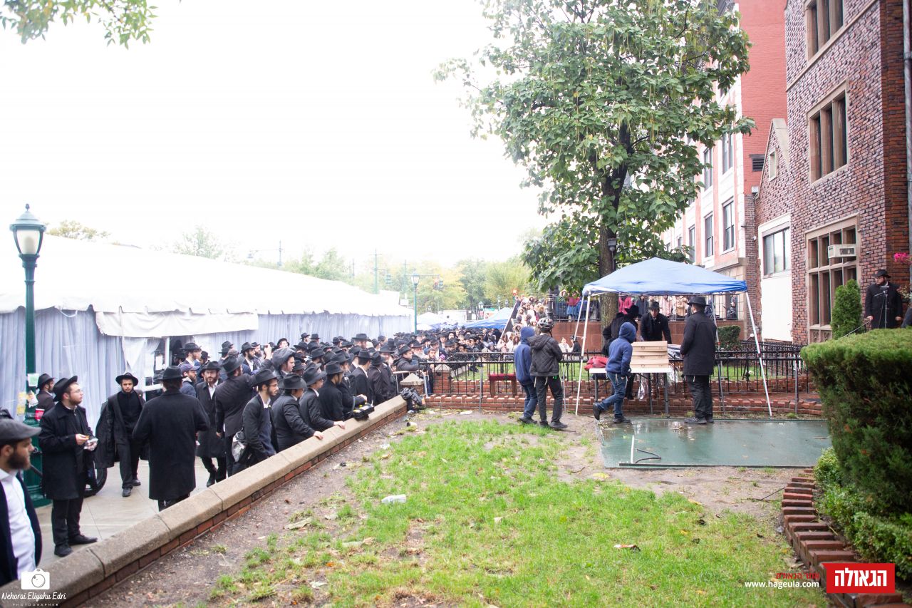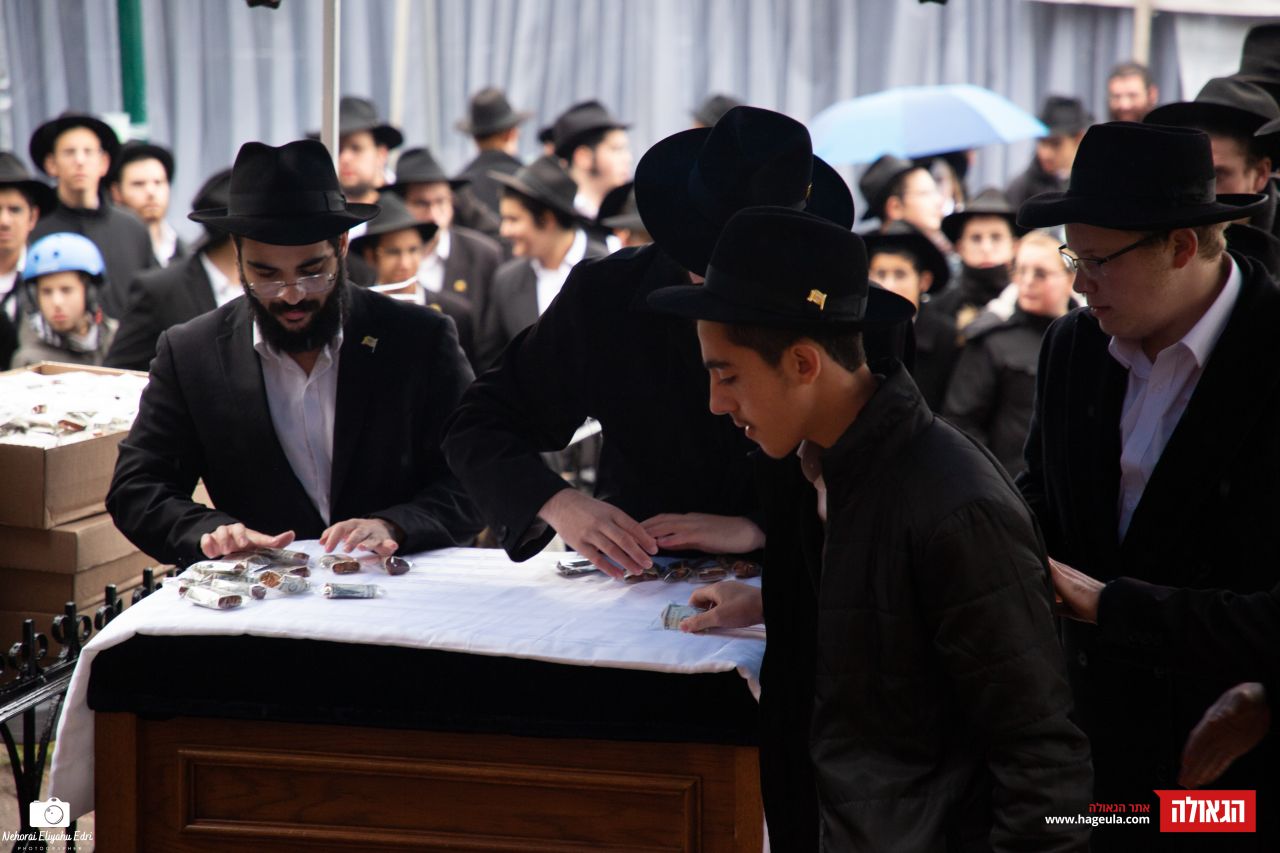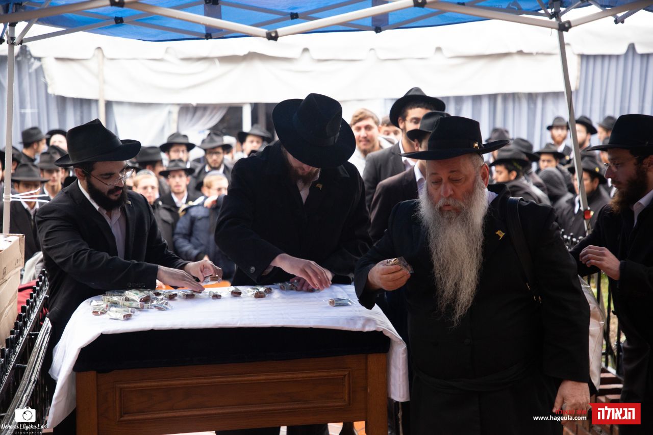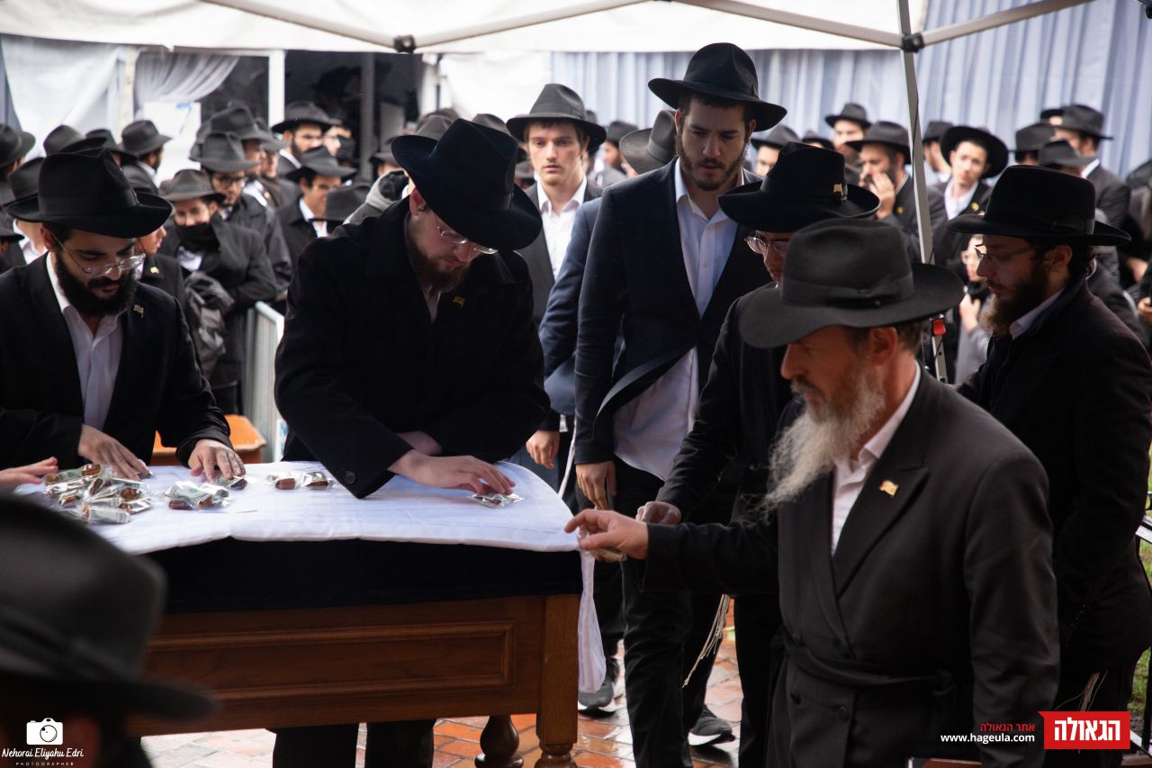 לאחר כעשרים דקות החל הרבי מלך המשיח שליט"א לחלק לקהל האלפים פרוסת 'לעקאח' - עוגת דבש בצירוף שטר של דולר, כפי מנהג חב"ד. לאחר תור הגברים, עברו גם מאות נשים לקבל 'לעקאח'.