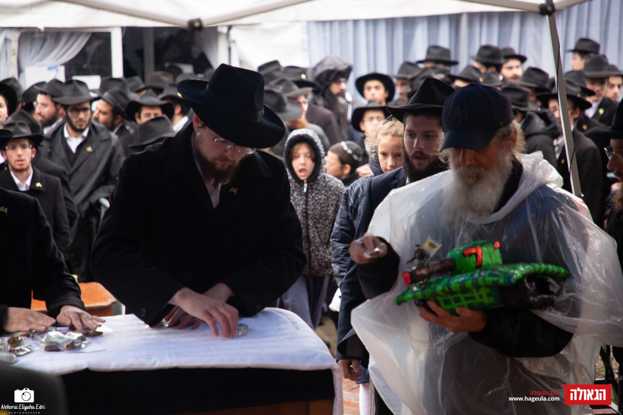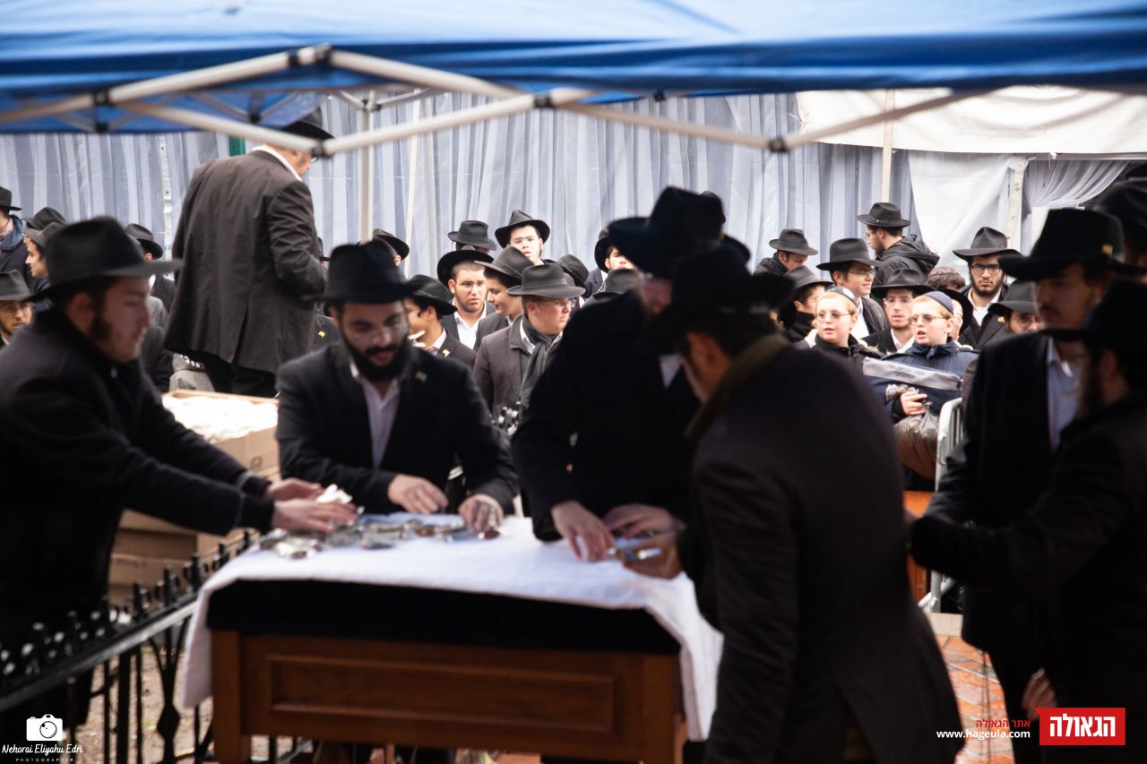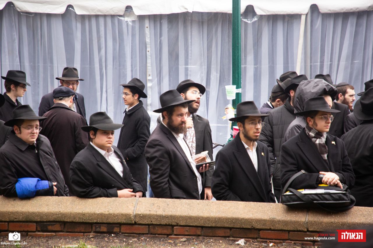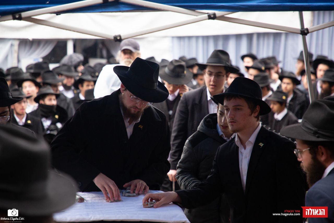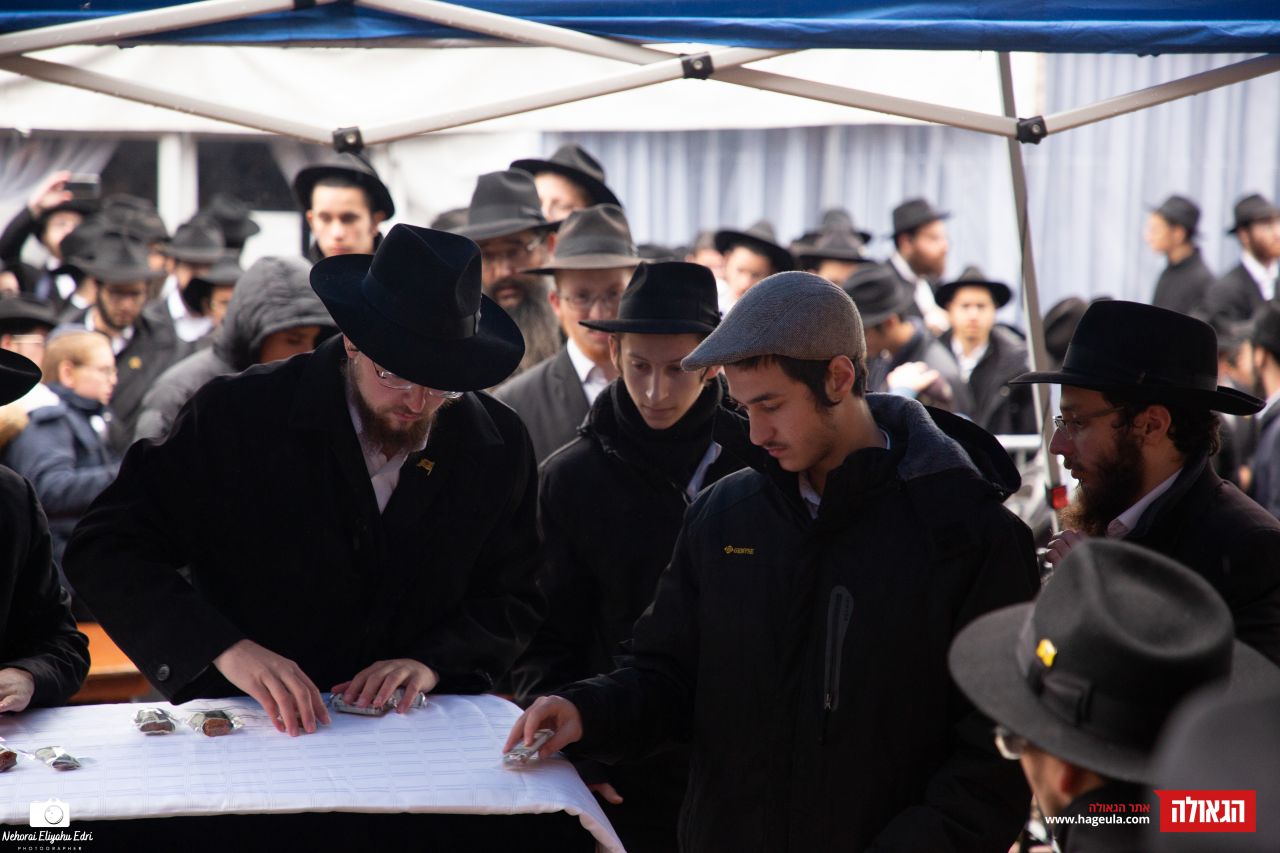 לאחר כעשרים דקות החל הרבי מלך המשיח שליט"א לחלק לקהל האלפים פרוסת 'לעקאח' - עוגת דבש בצירוף שטר של דולר, כפי מנהג חב"ד. לאחר תור הגברים, עברו גם מאות נשים לקבל 'לעקאח'.