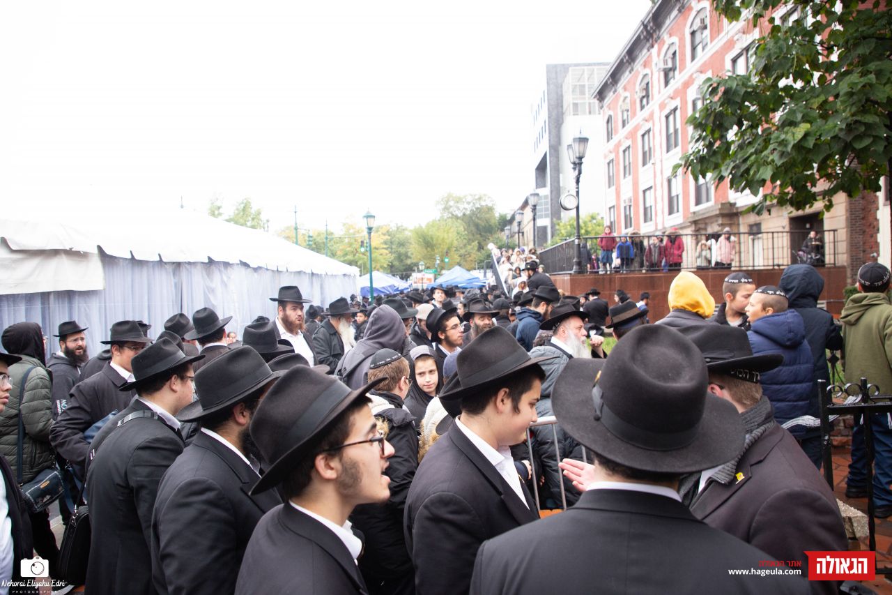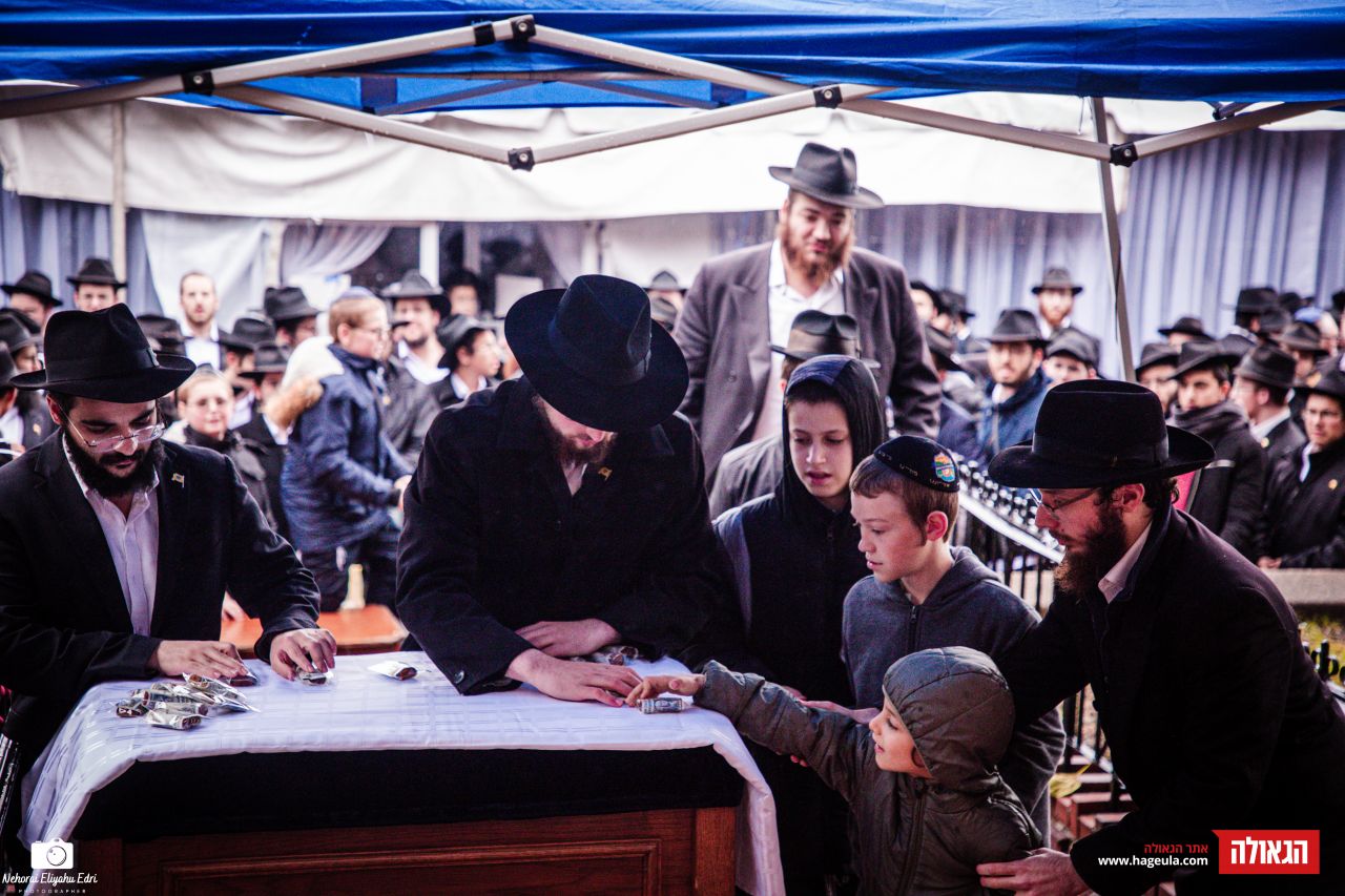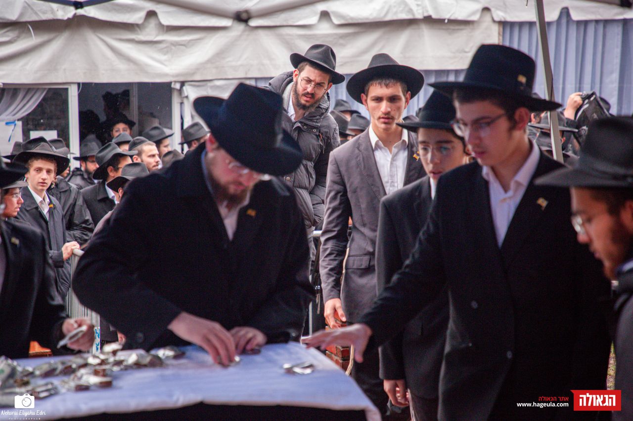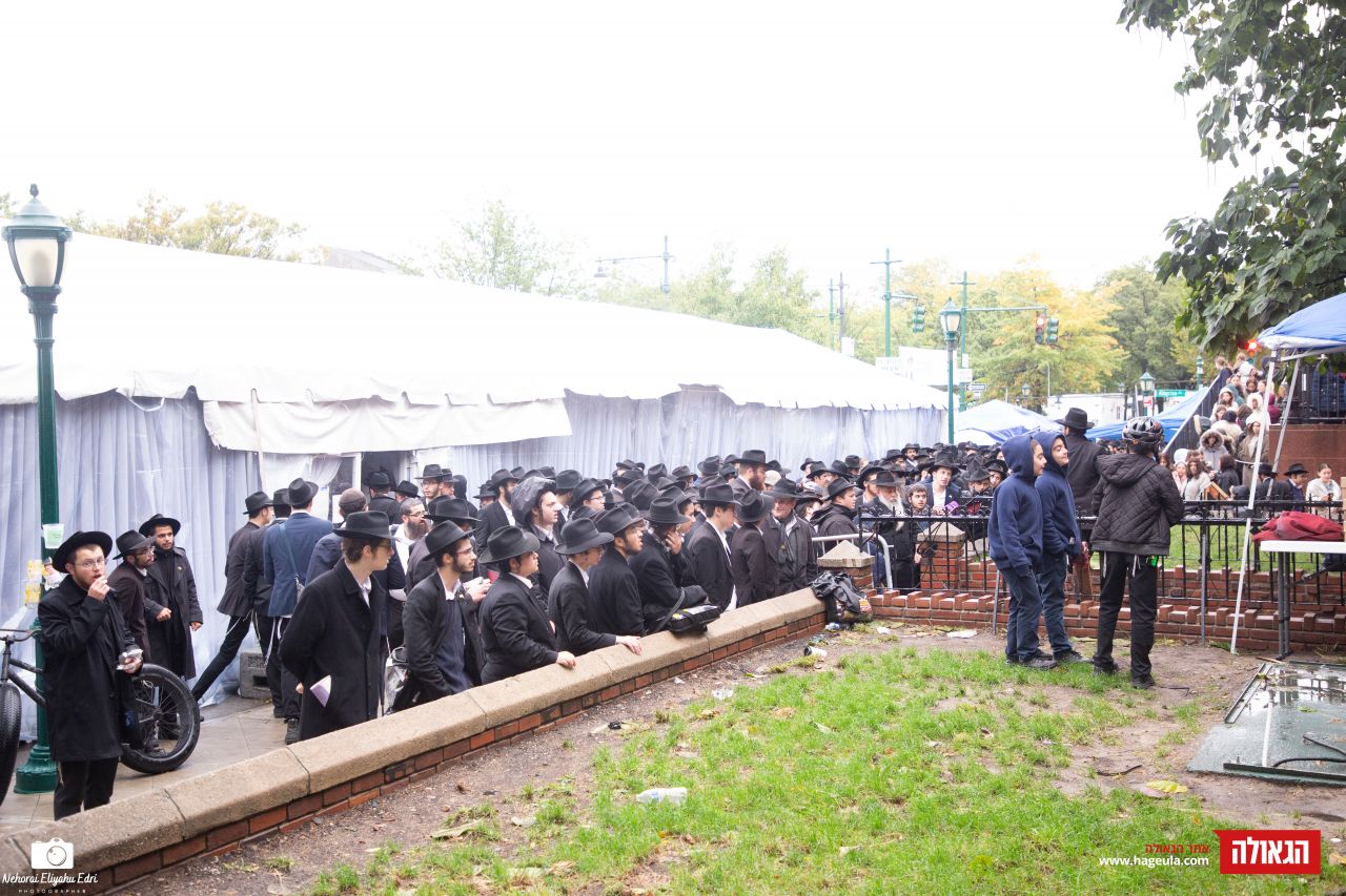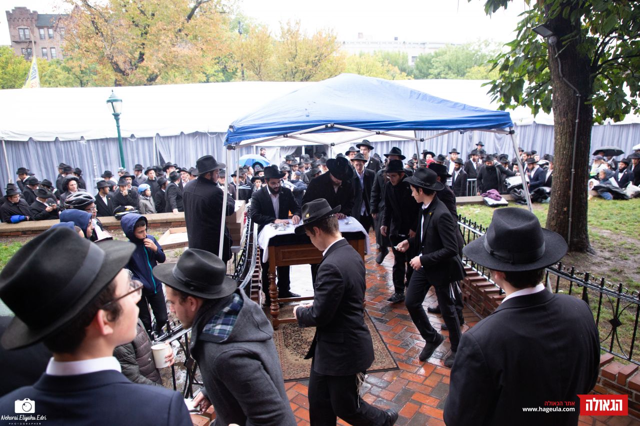 לאחר כעשרים דקות החל הרבי מלך המשיח שליט"א לחלק לקהל האלפים פרוסת 'לעקאח' - עוגת דבש בצירוף שטר של דולר, כפי מנהג חב"ד. לאחר תור הגברים, עברו גם מאות נשים לקבל 'לעקאח'.