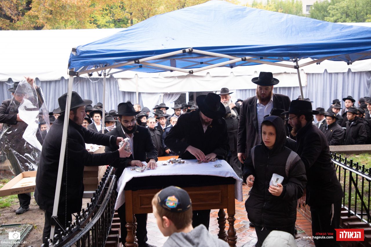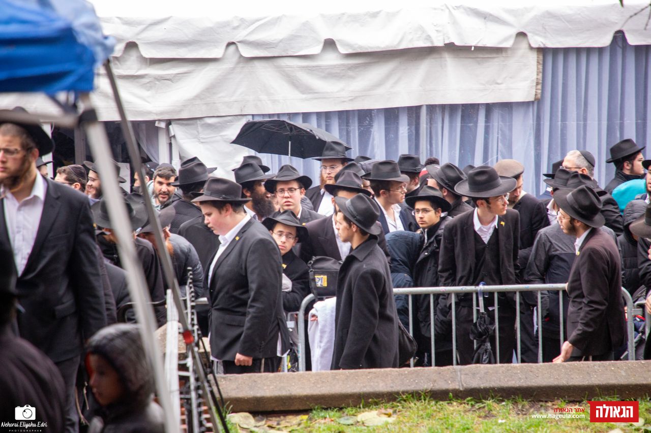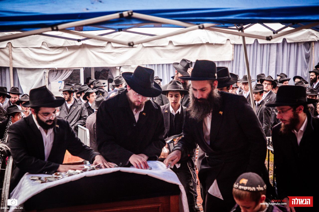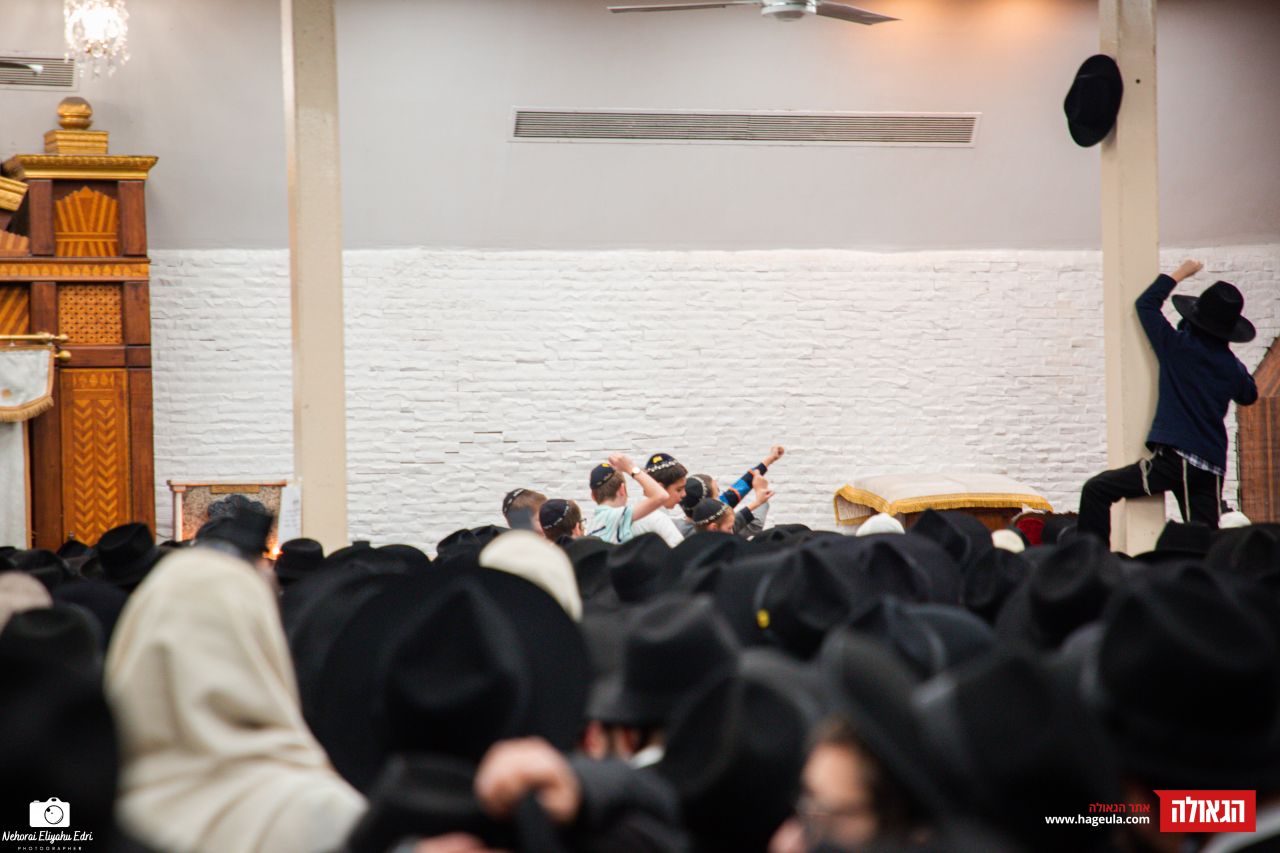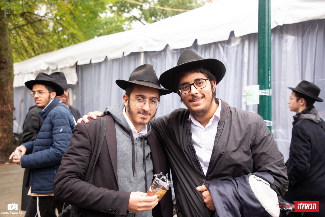 לאחר כעשרים דקות החל הרבי מלך המשיח שליט"א לחלק לקהל האלפים פרוסת 'לעקאח' - עוגת דבש בצירוף שטר של דולר, כפי מנהג חב"ד. לאחר תור הגברים, עברו גם מאות נשים לקבל 'לעקאח'.