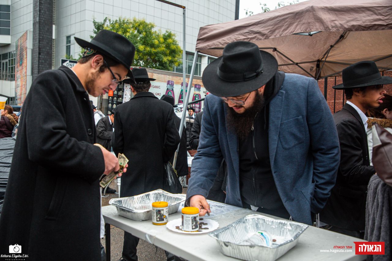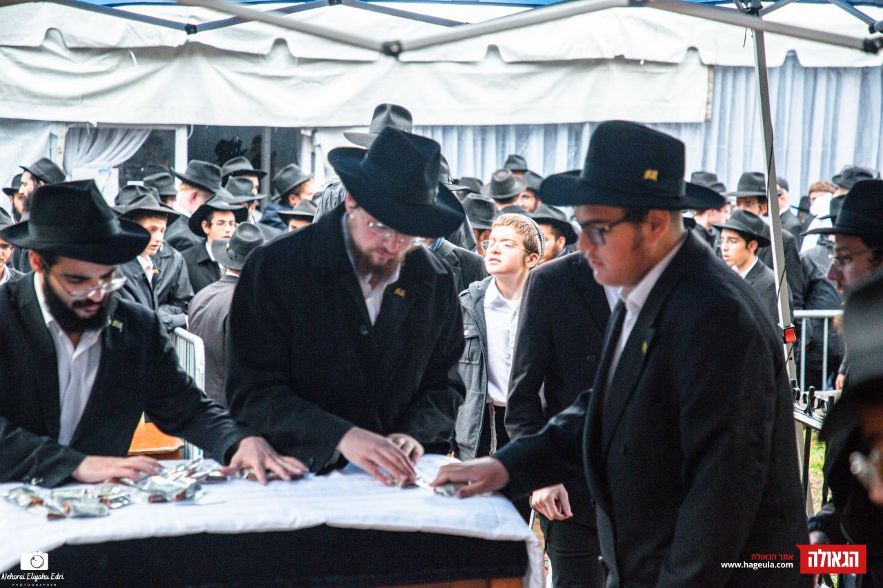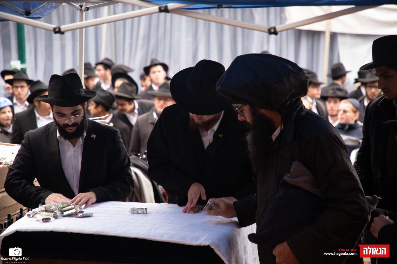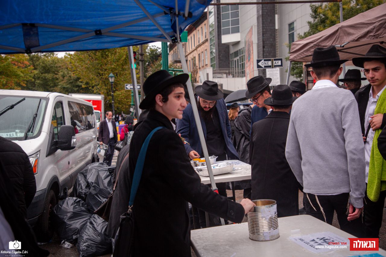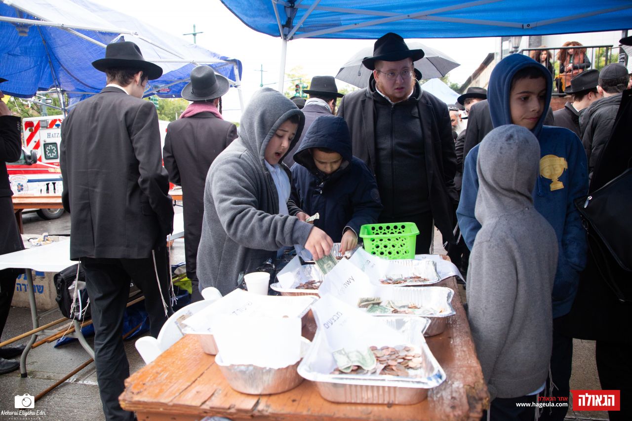 לאחר סיום התפילה החל הקהל לצאת החוצה, שם עמדו דוכנים רבים למתן צדקה עבור מוסדות חינוך והפצת משיח. כולם משלשלים מטבע או שטר לקופות הצדקה.
