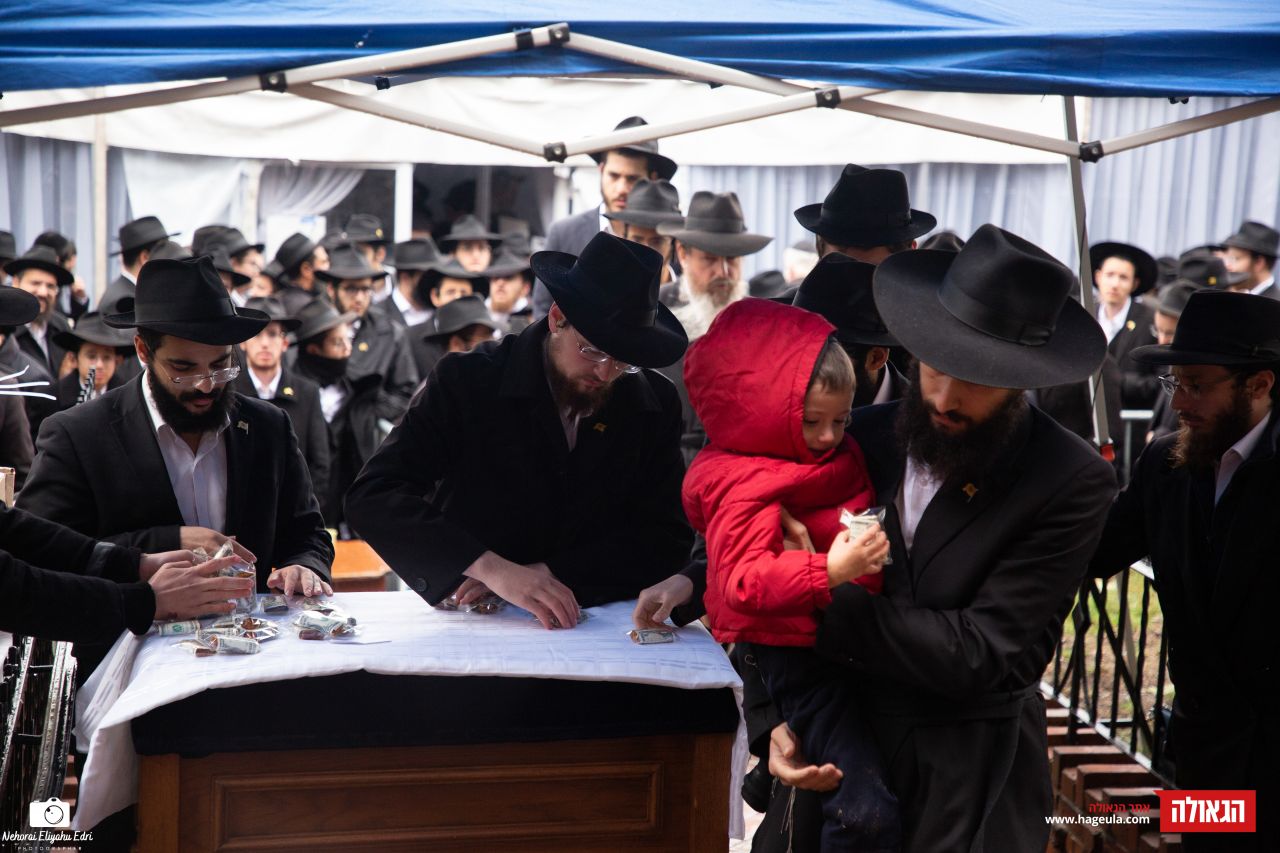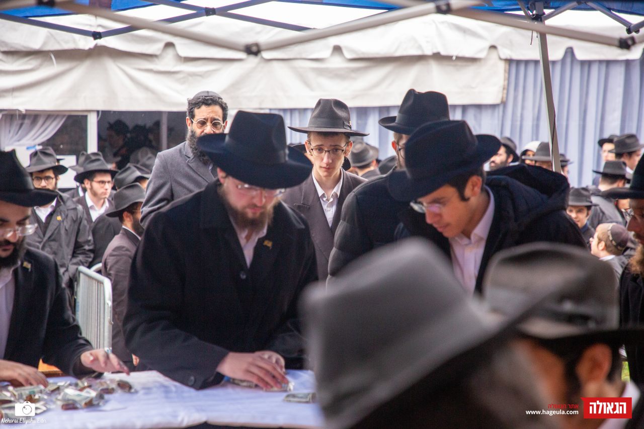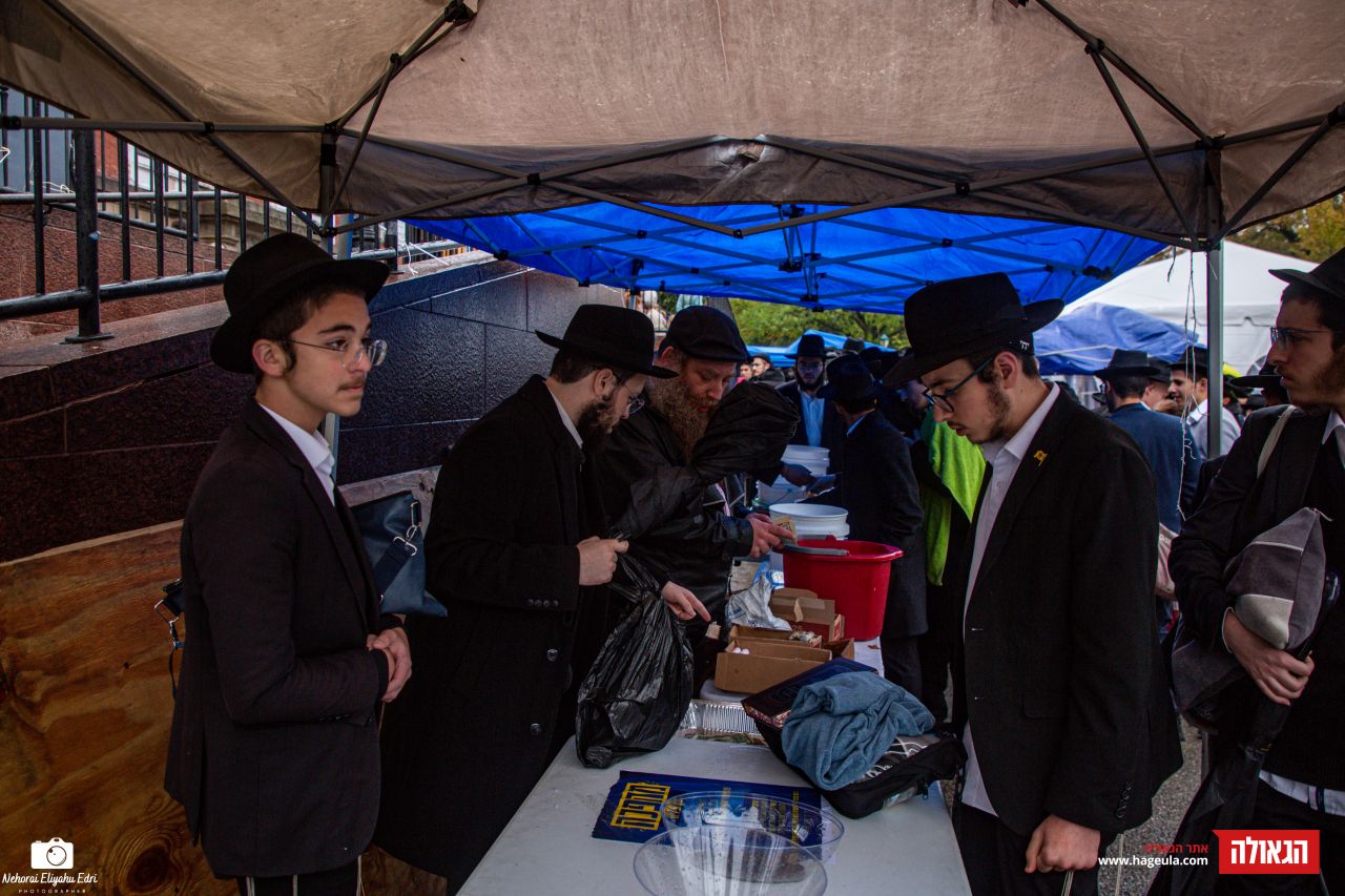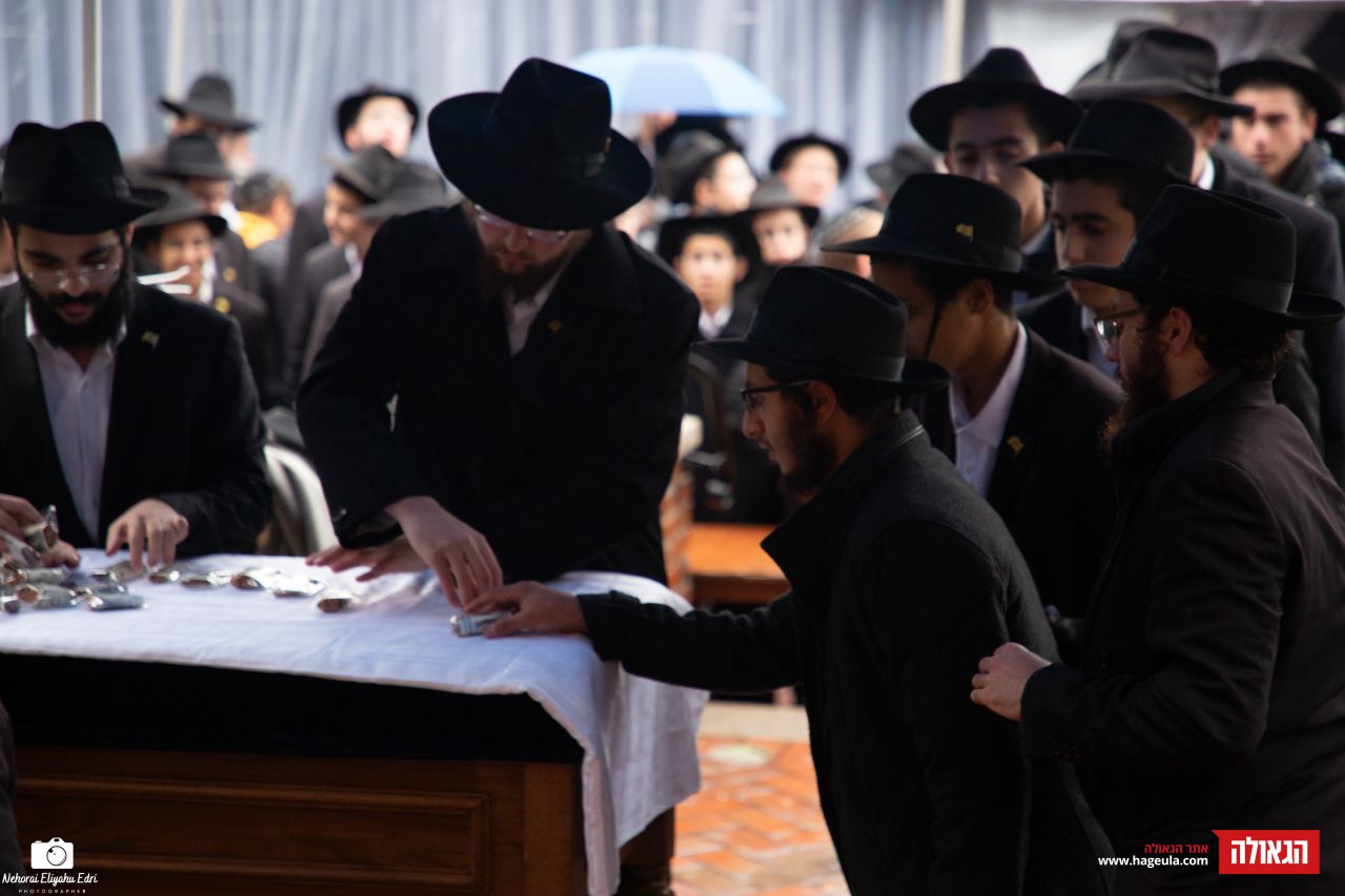 לאחר סיום התפילה החל הקהל לצאת החוצה, שם עמדו דוכנים רבים למתן צדקה עבור מוסדות חינוך והפצת משיח. כולם משלשלים מטבע או שטר לקופות הצדקה.