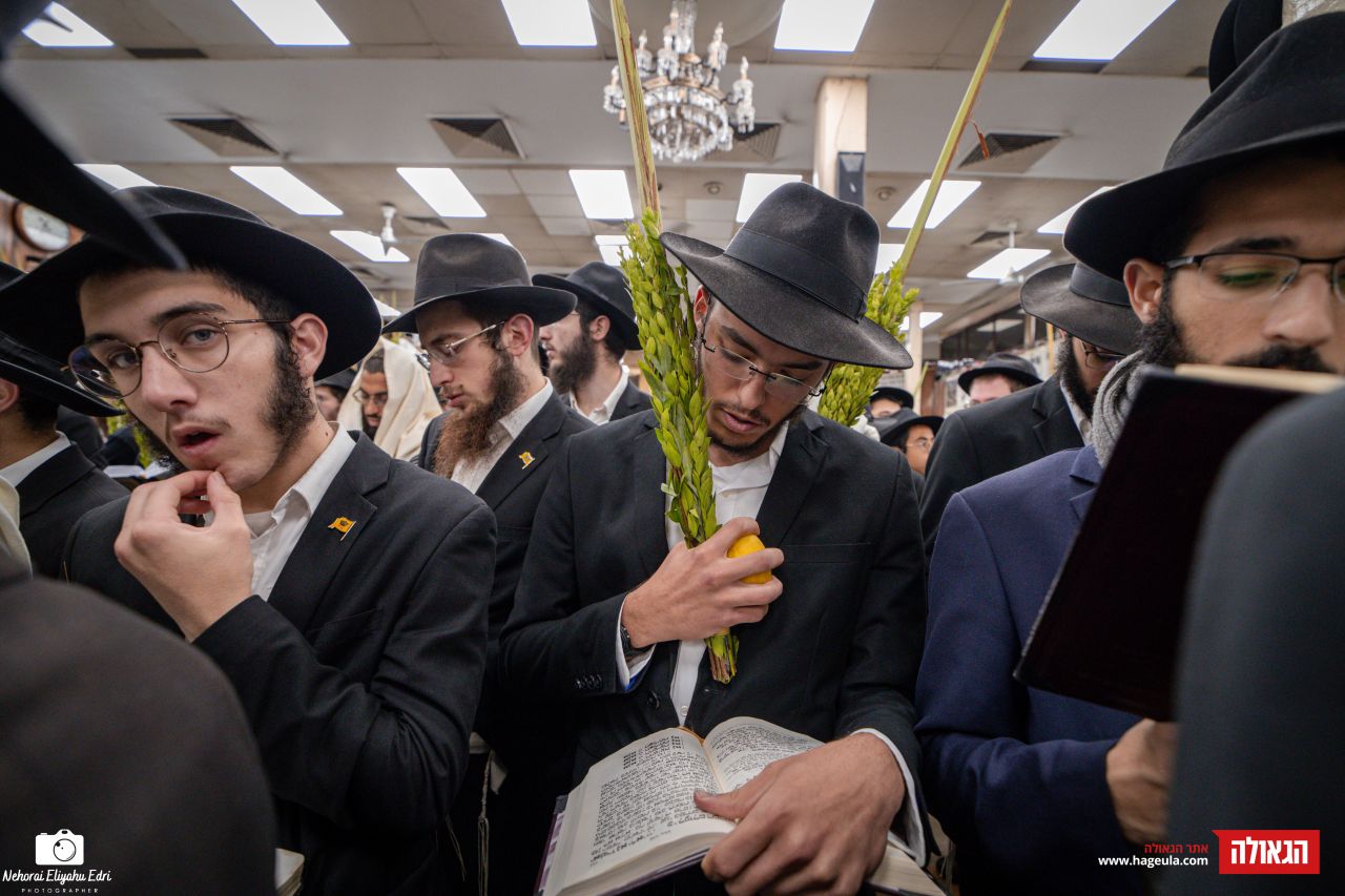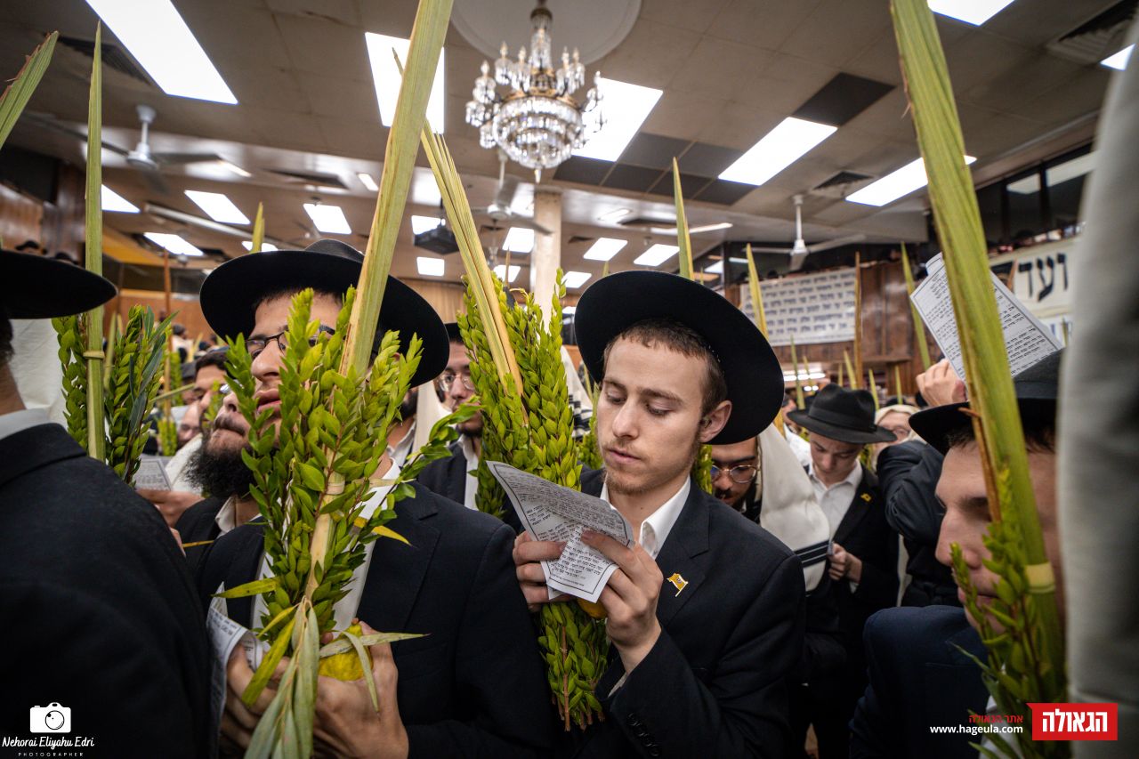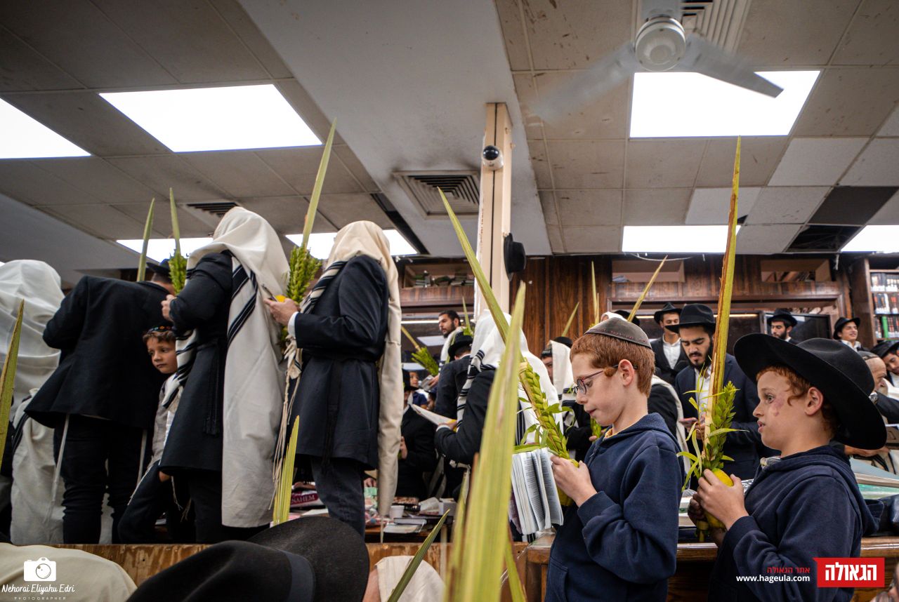 הטליתות הלבנות והלולבים הירוקים הופכים את התפילה הזאת לאחת היפות והצבעוניות במעגל השנה.