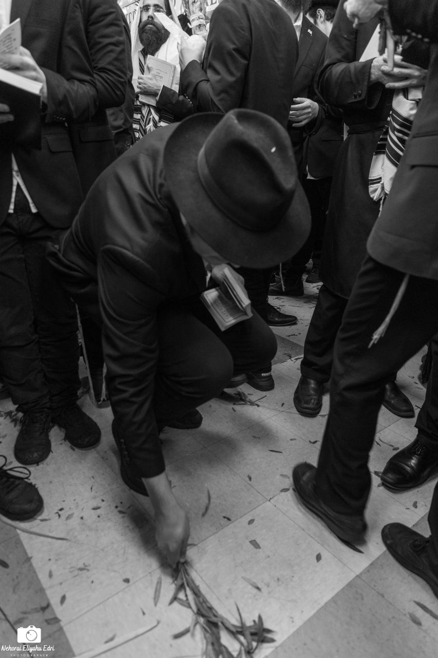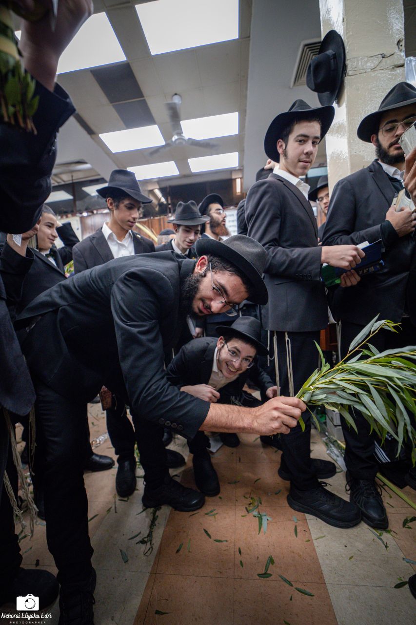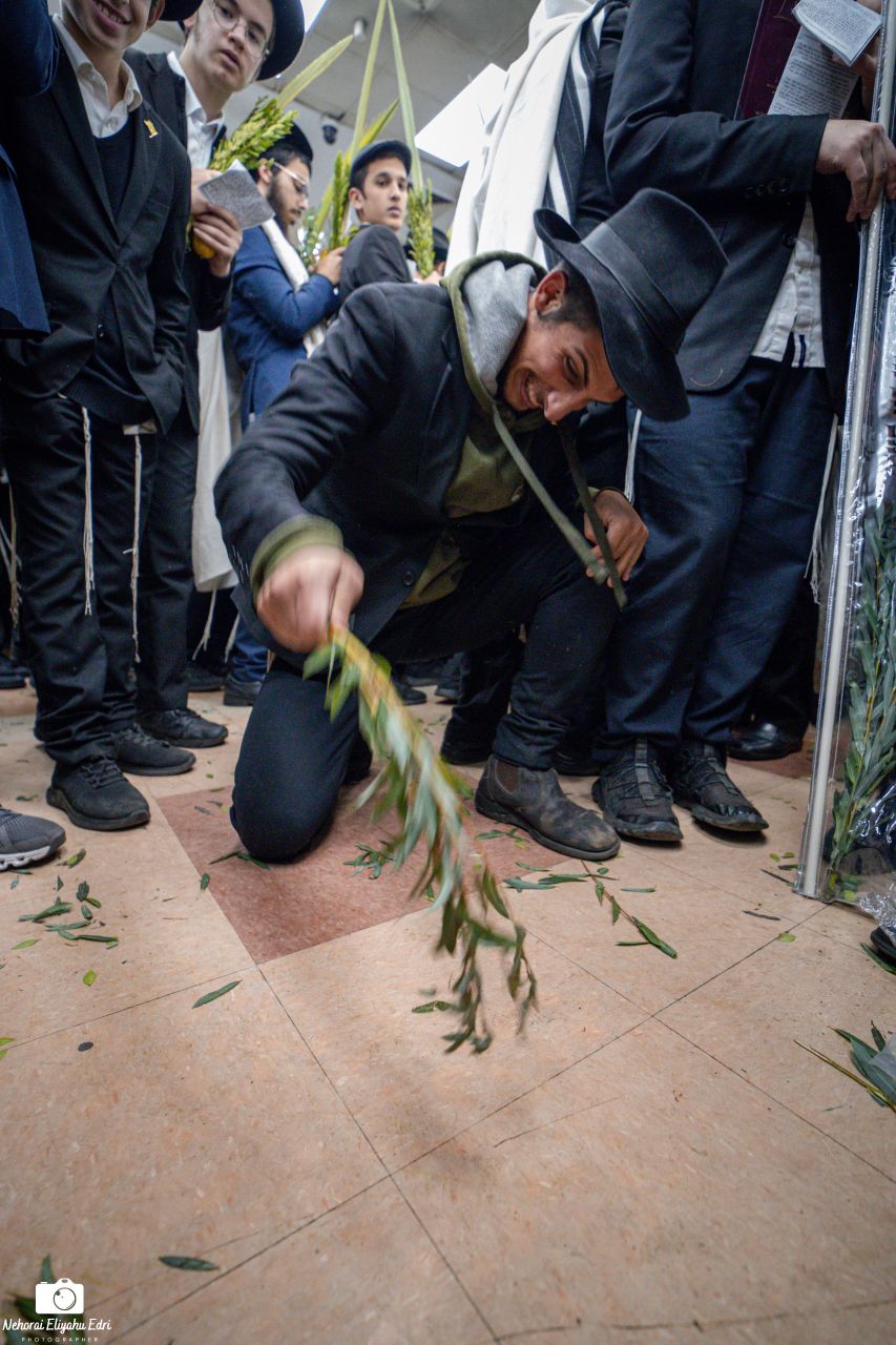 לאחר ההושענות קיים הקהל את מנהג 'חביטת ערבות', וכל בית הכנסת התמלא בעלים ירוקים. בסיום התפילה חילק הרבי מלך המשיח שליט"א פרוסת 'לעקאח' לאלו שלא קיבלו בערב יום כיפור.