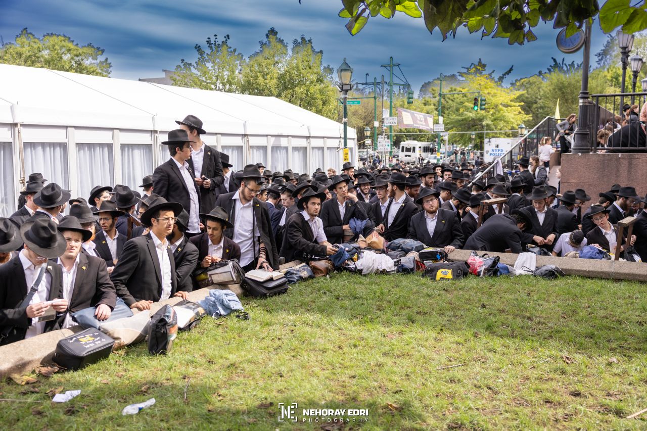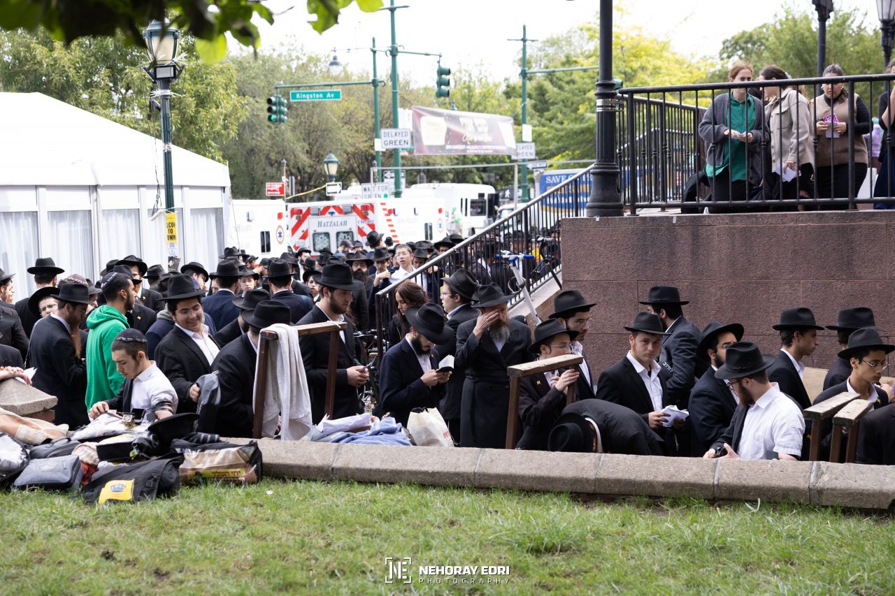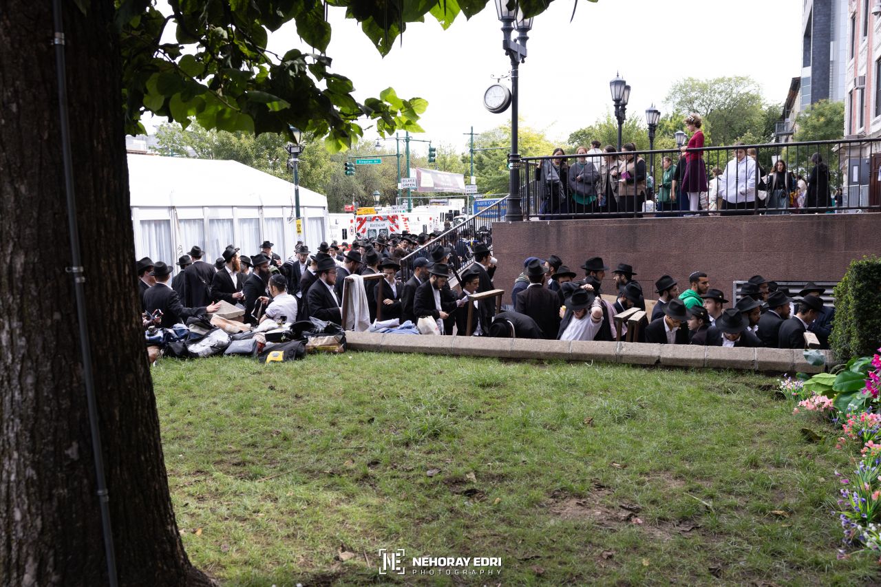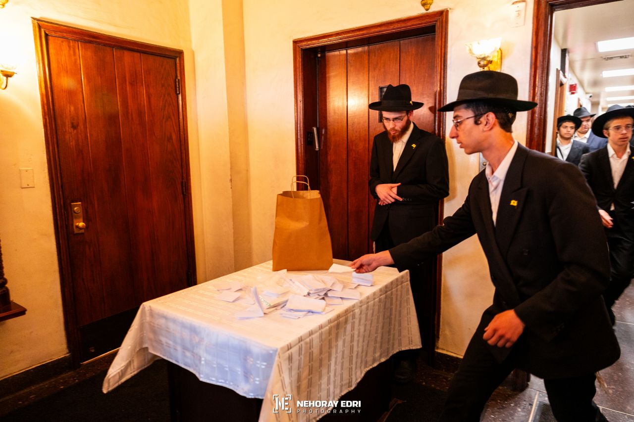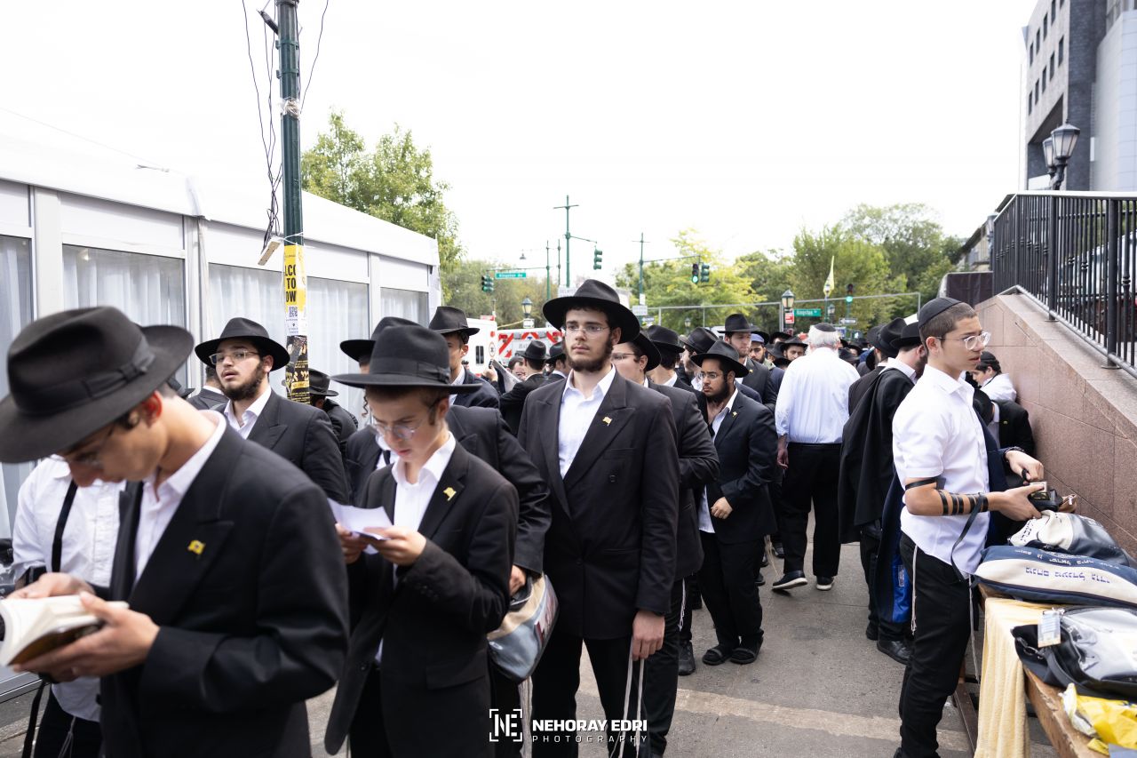 כעשרים דקות לאחר תפילת שחרית בערב ראש השנה, השתרך תור של אלפי חסידים, כאשר כל אחד חולף מול מלך המשיח לשניה אחת, ומגיש לו את הפ"נ.