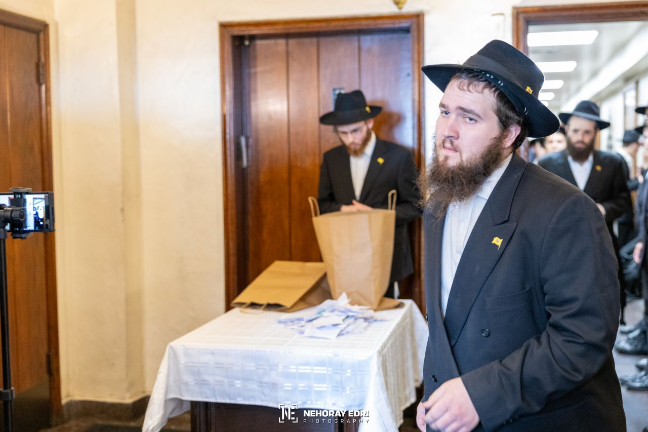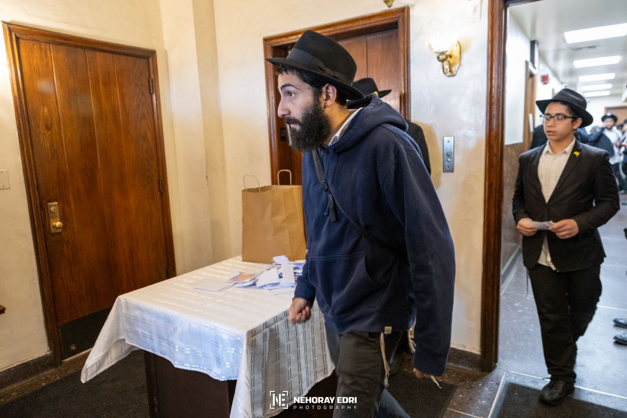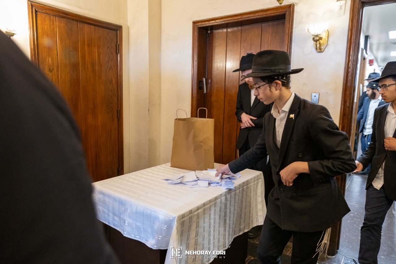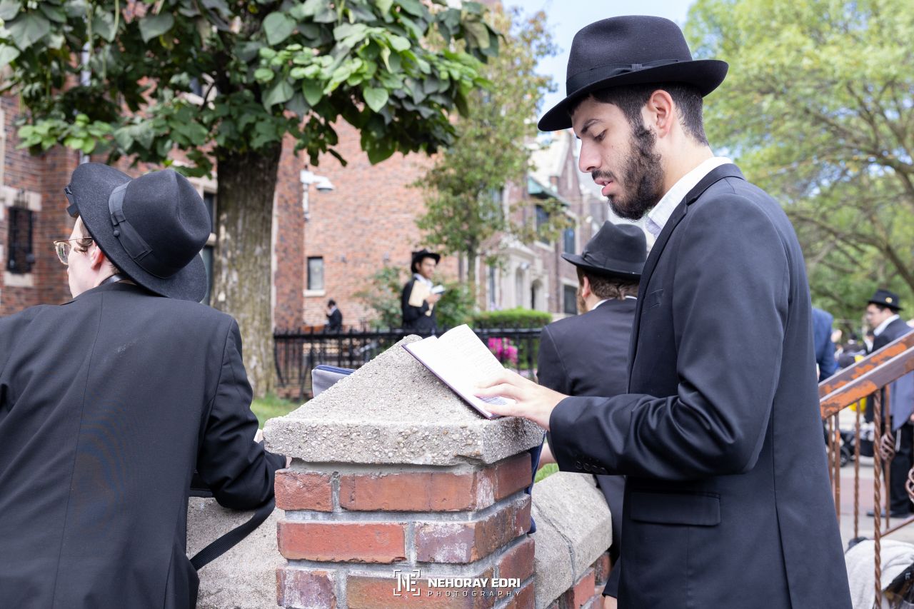 כעשרים דקות לאחר תפילת שחרית בערב ראש השנה, השתרך תור של אלפי חסידים, כאשר כל אחד חולף מול מלך המשיח לשניה אחת, ומגיש לו את הפ"נ.