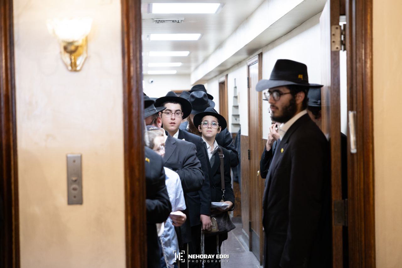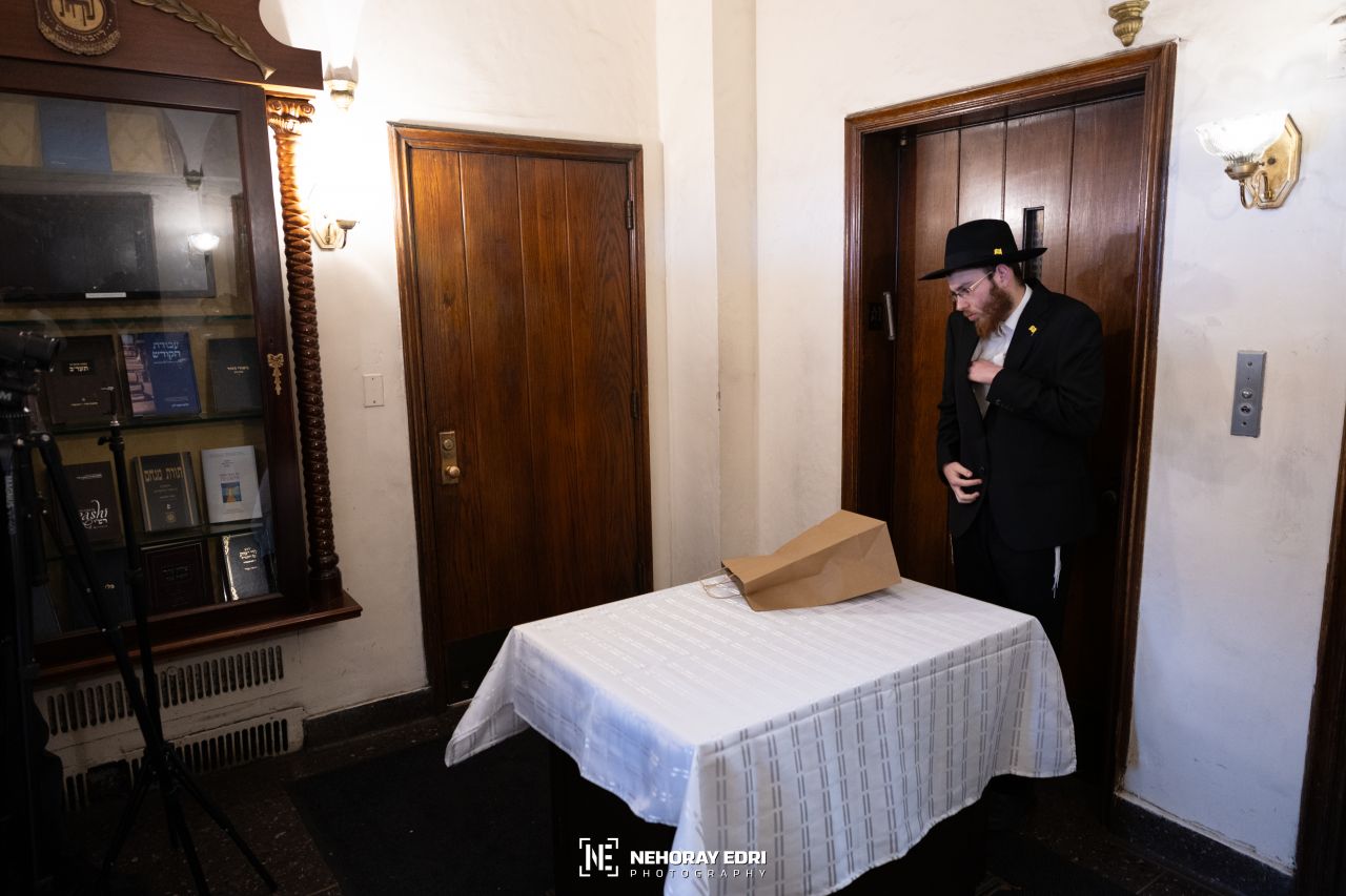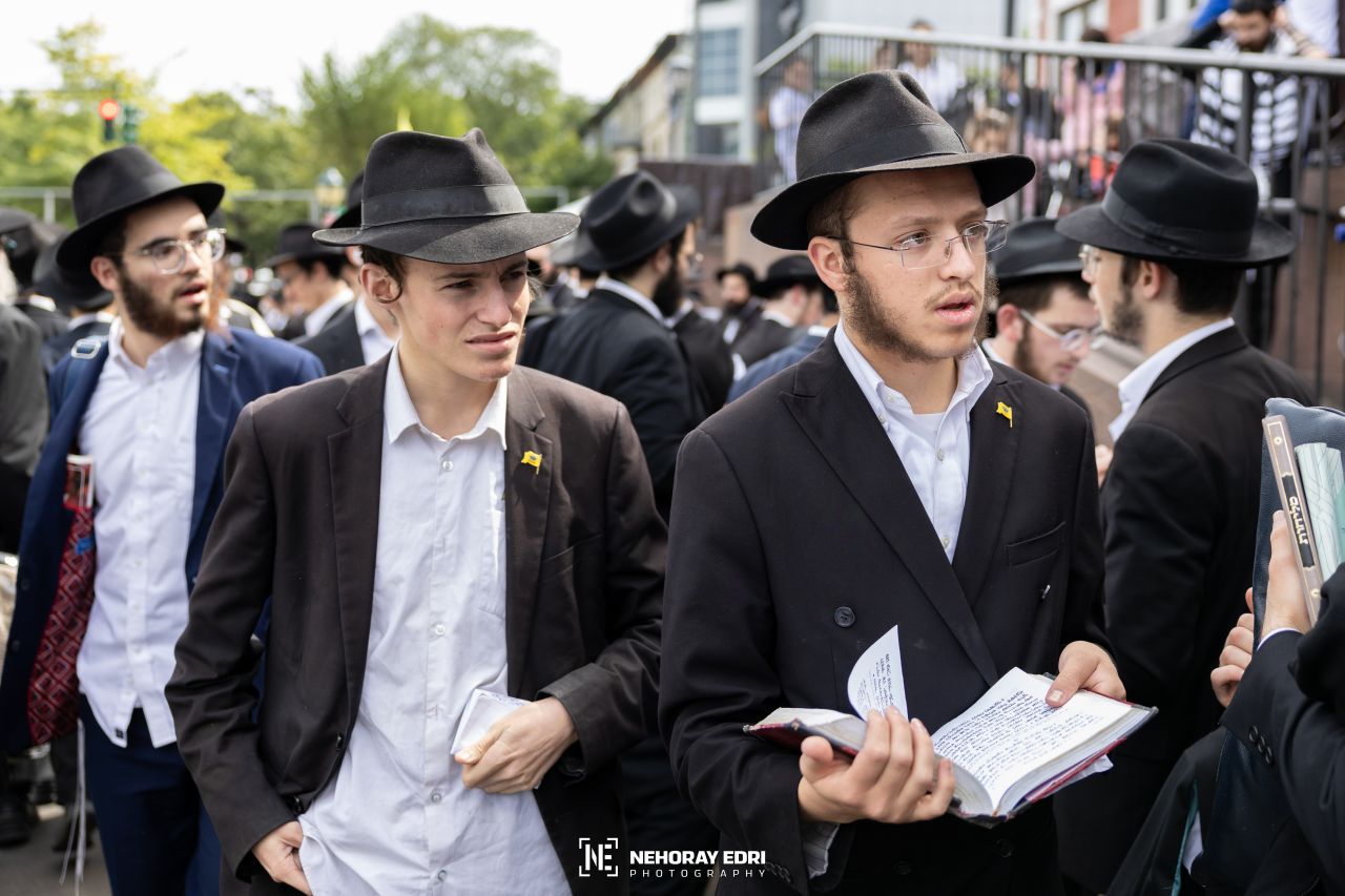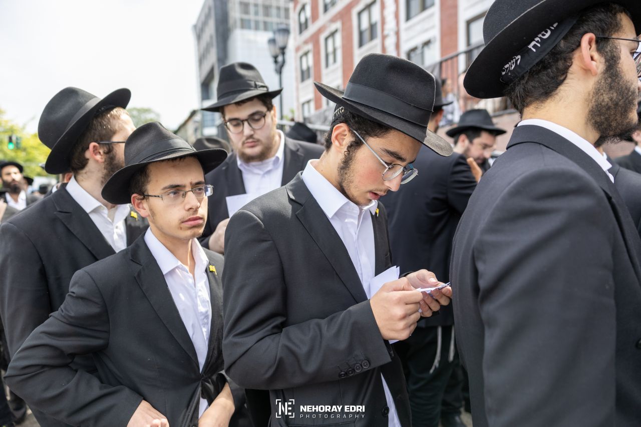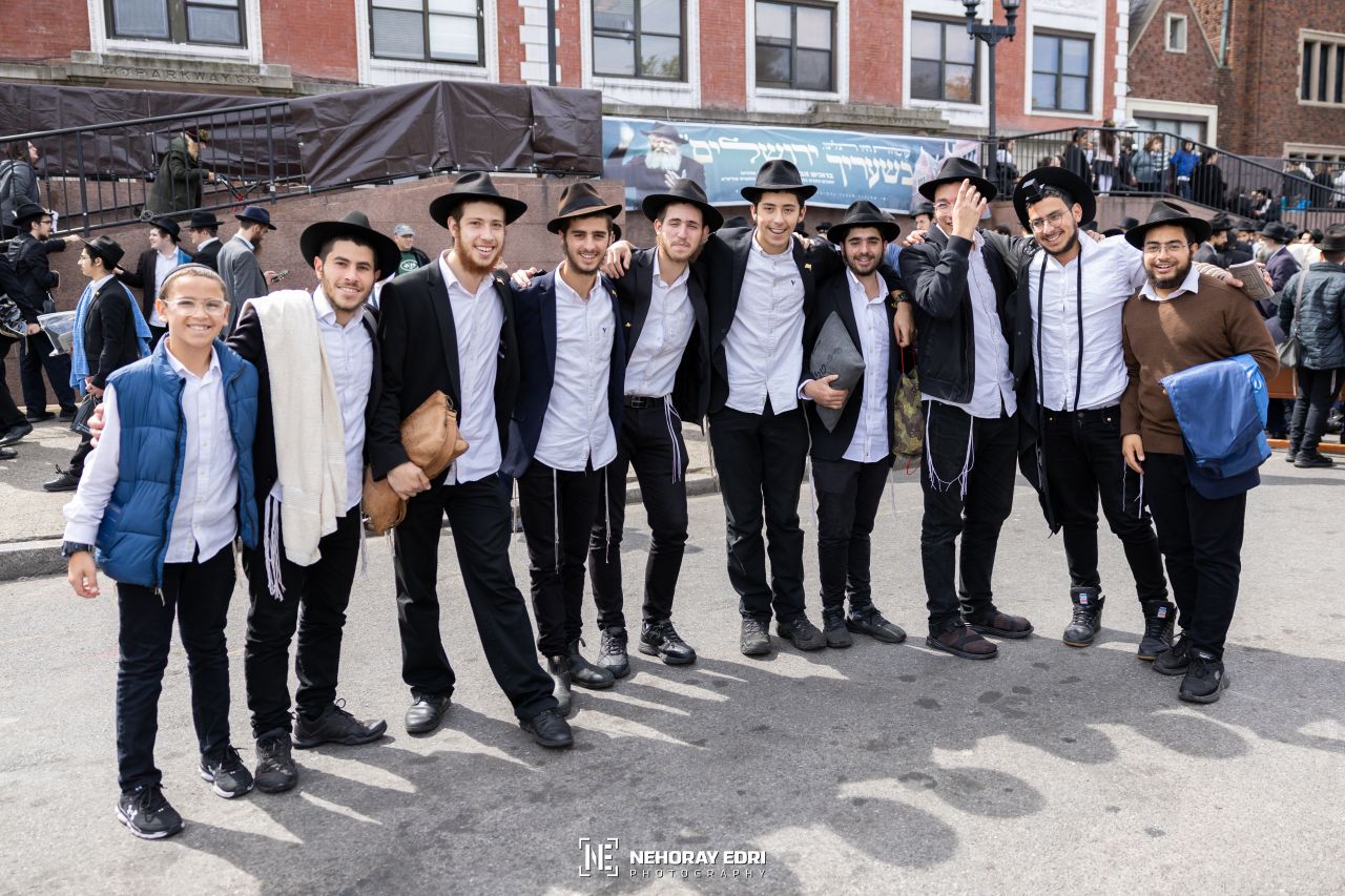 כעשרים דקות לאחר תפילת שחרית בערב ראש השנה, השתרך תור של אלפי חסידים, כאשר כל אחד חולף מול מלך המשיח לשניה אחת, ומגיש לו את הפ"נ.