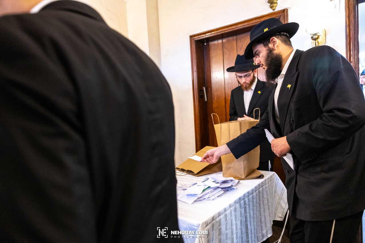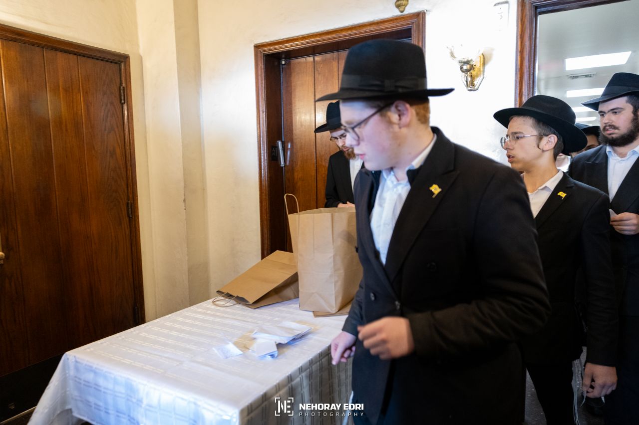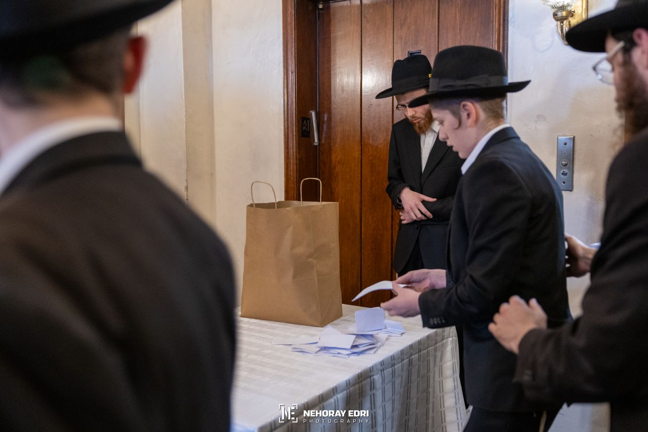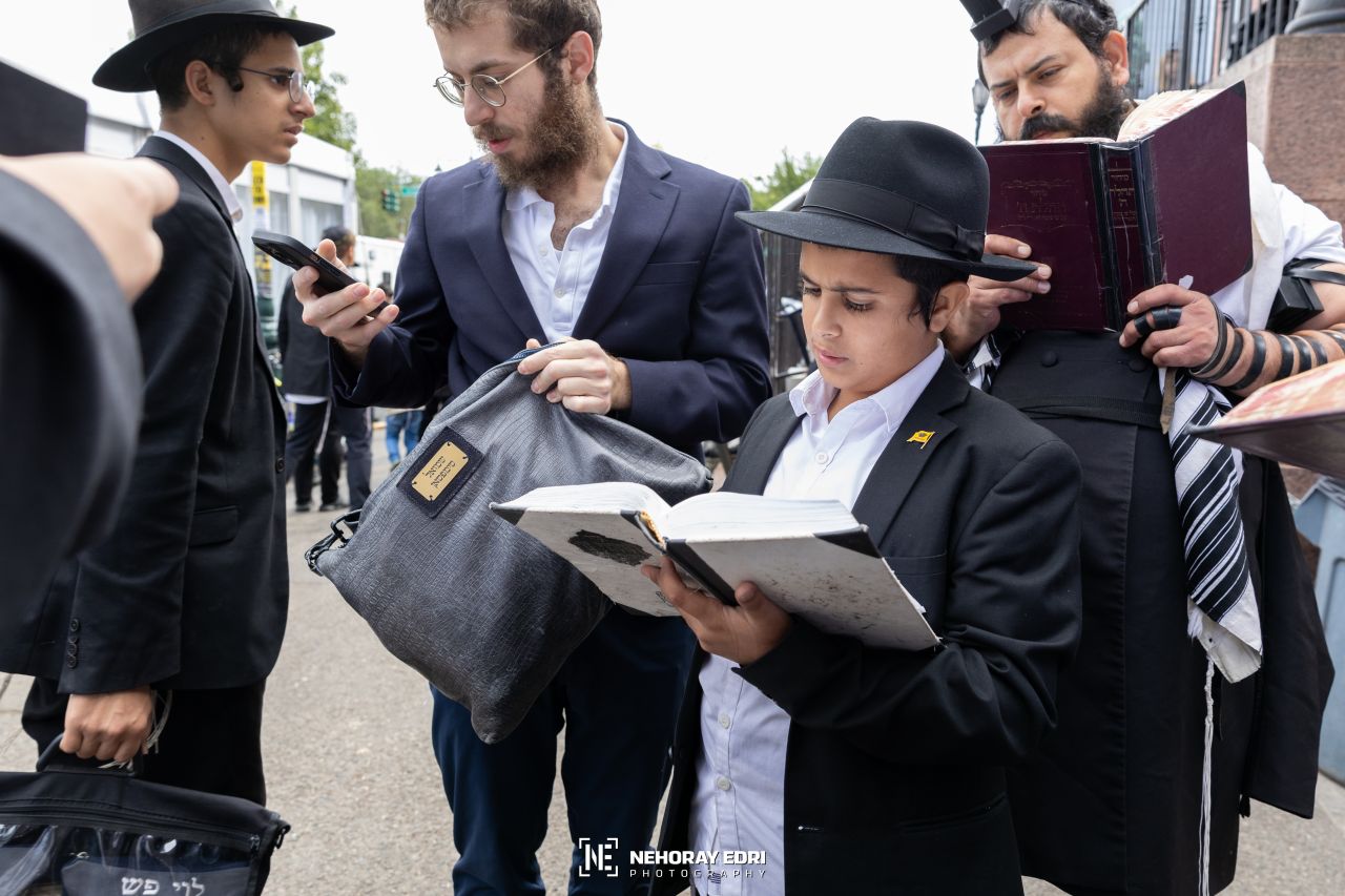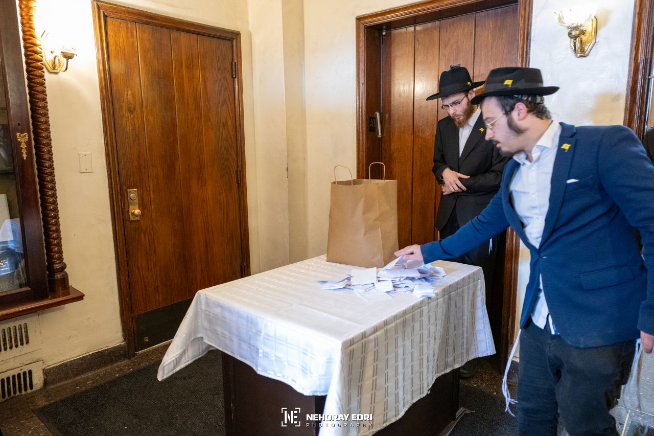 כעשרים דקות לאחר תפילת שחרית בערב ראש השנה, השתרך תור של אלפי חסידים, כאשר כל אחד חולף מול מלך המשיח לשניה אחת, ומגיש לו את הפ"נ.