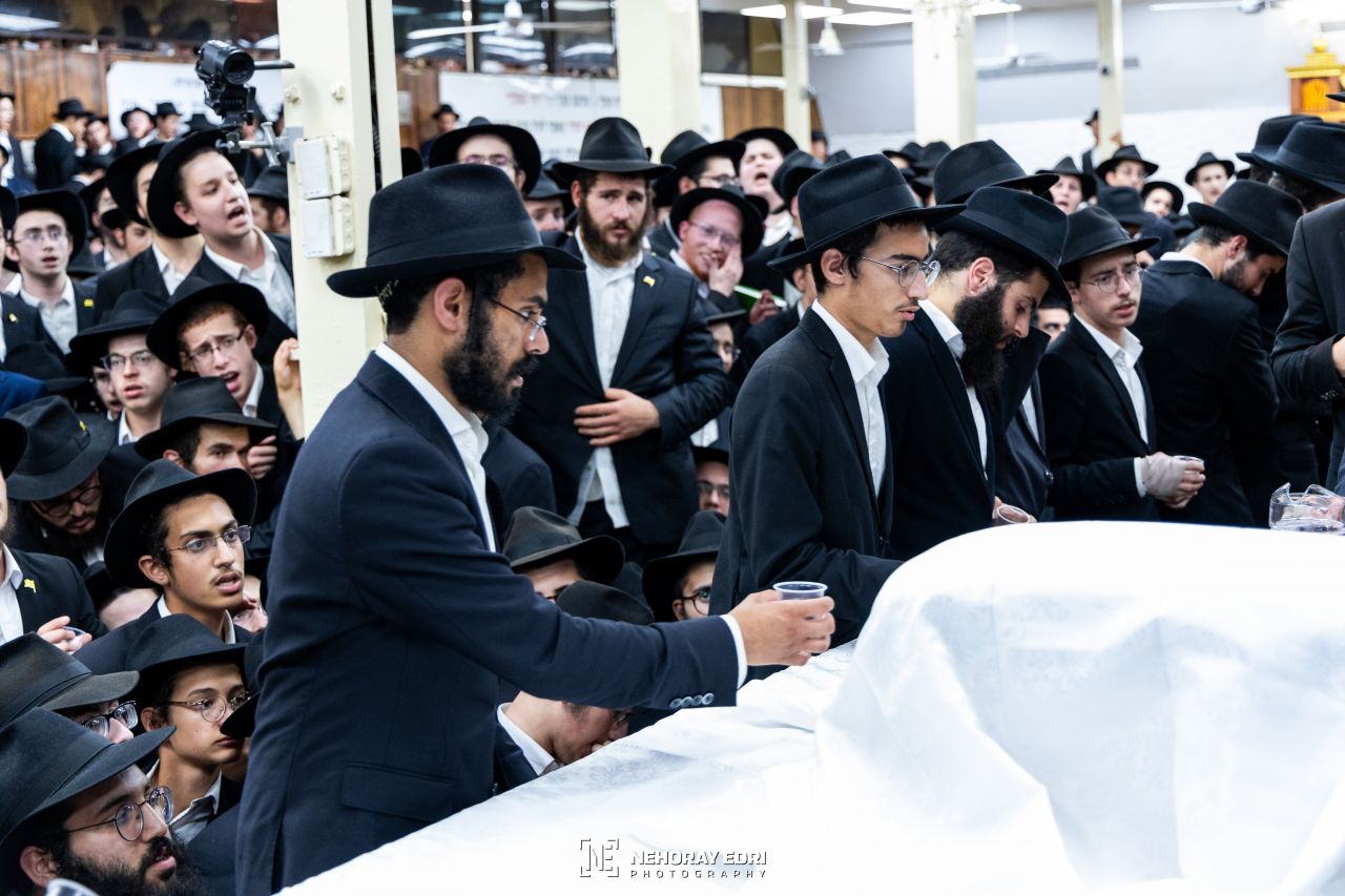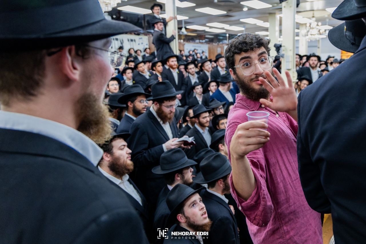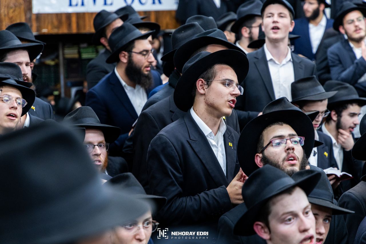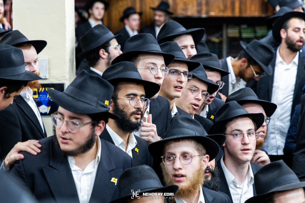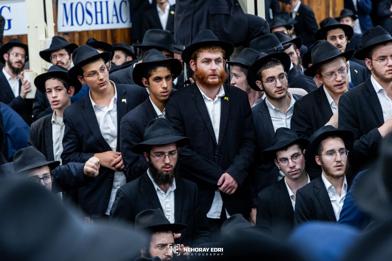 גם כעת, מוצאי ראש השנה תשפ"ג, עברו אלפי חסידים לקבל "כוס של ברכה" ממלך המשיח. לצד השולחן הטהור עמדו מאות בחורי חמד שניגנו בקול רם למול העוברים.