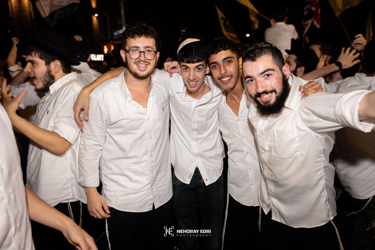 הלילה שבין יום רביעי לחמישי הוקדש גם הוא לקיום הוראת הרבי מלך המשיח שליט"א לרקוד ברחוב העיר ולשמוח לשם שמחה, לקבלת פני משיח.