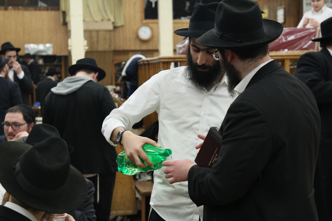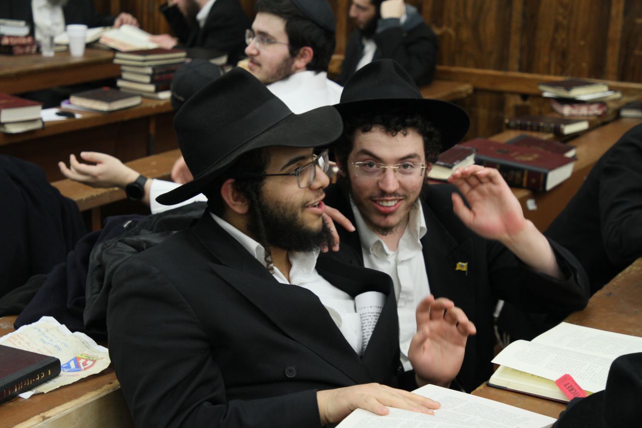 לקראת חצות החלה התוועדות פורים של תלמידי הקבוצה, מתחת לעזרת נשים. בשלב מסויים הגיעו כמה רבנים מהאיגוד, והחלו להתוועד עם הבחורים. כמויות בקבוקי 'משקה' ריקים שכבו תחת השולחנות, משל העידו על המתרחש. לחיים לחיים!