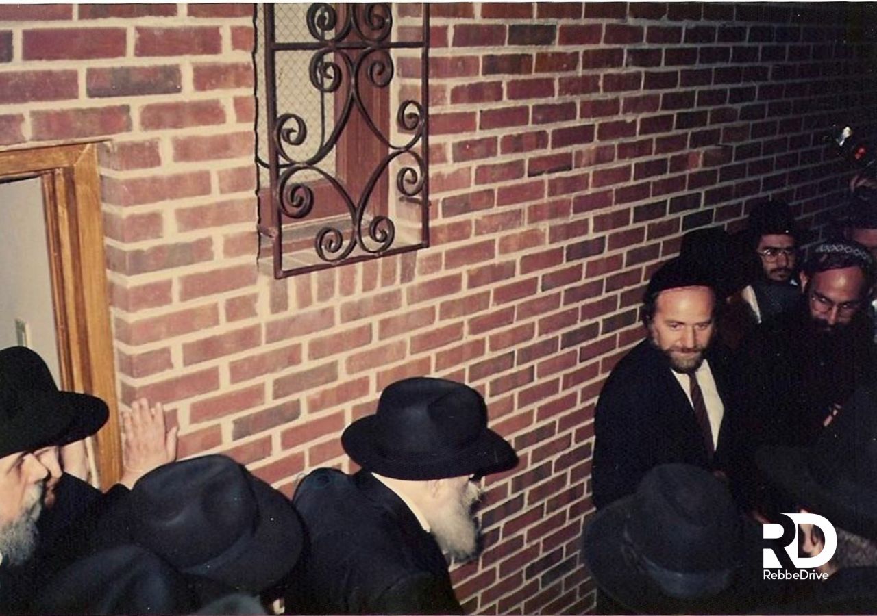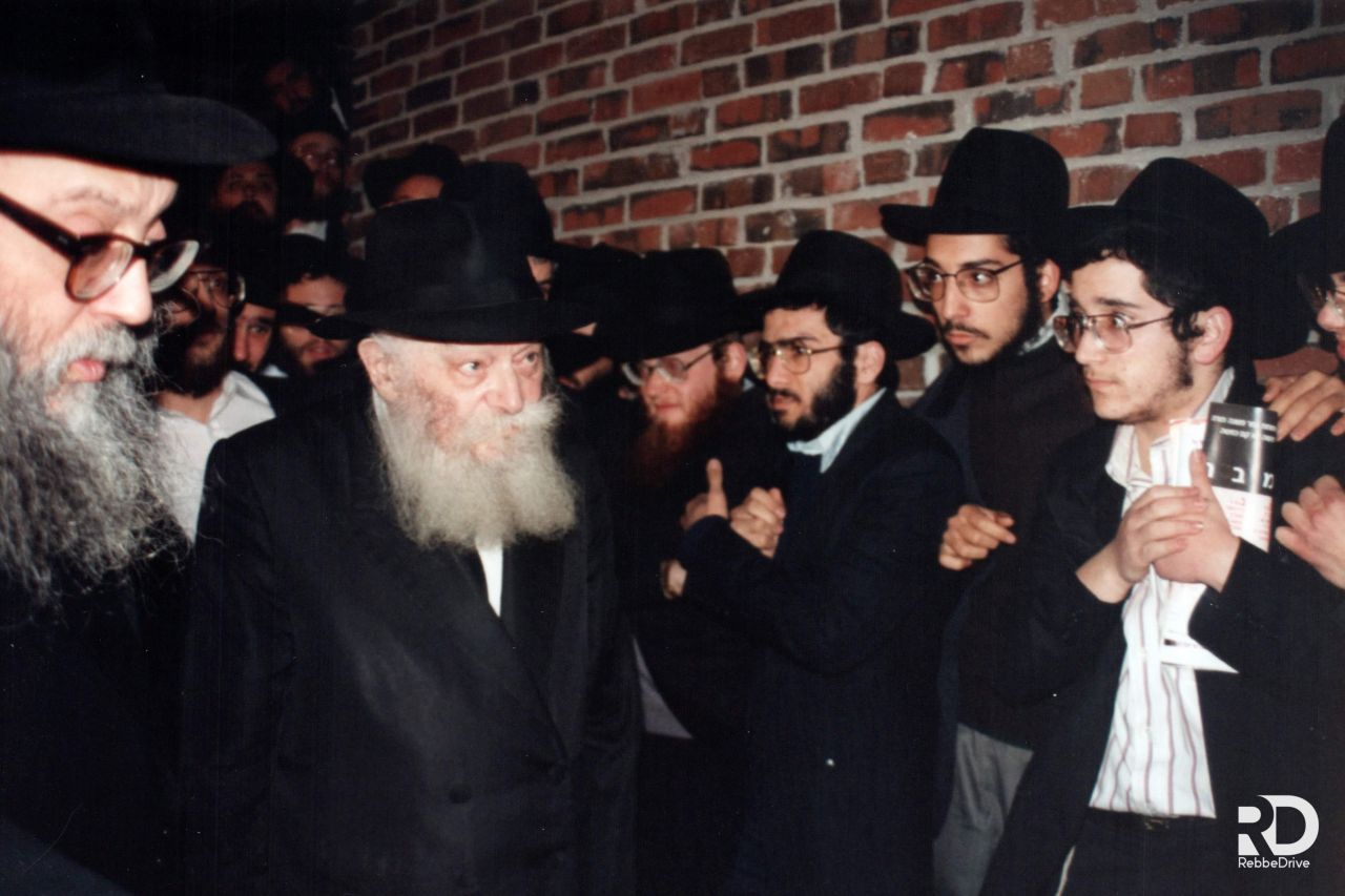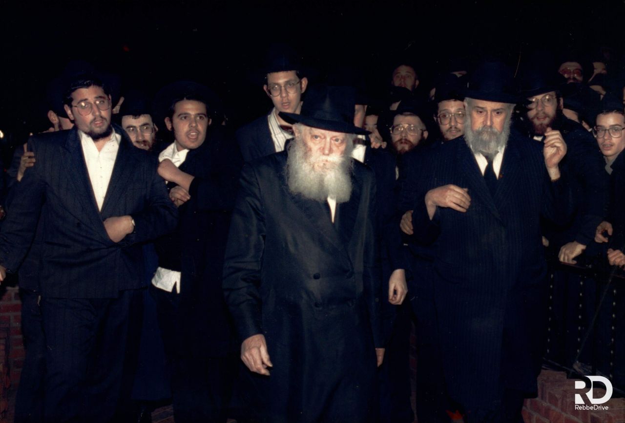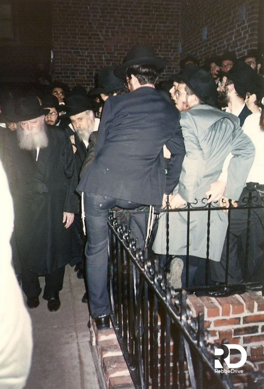 [כ"ק אדמו"ר שליט"א ליווה את הרב אליהו שליט"א, ובהמתינו לנסיעת המכונית, עודד בידו הק' את הנאספים שיחיו שניגנו "כי בשמחה תצאו ובשלום תובלון"].