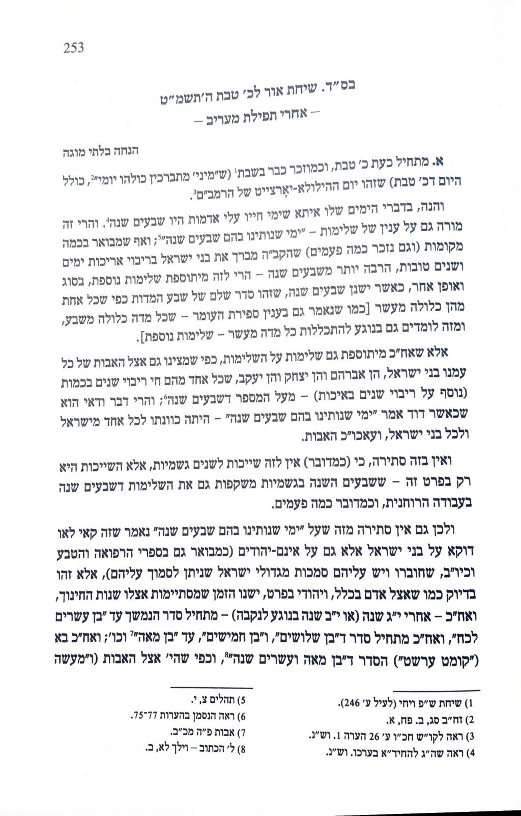 וכמדובר, שרואים אצל איש פרטי ,ולאו דווקא יהודי שמתי שנגמרת שלימות בניין אחד בחייו, אפילו שלימות שקשורה עם רוחניות, זו אינה סתירה שאחרי זה יאריך ימים ושנים טובות, כי מתחיל אחרי זה סדר [=חדש] לאחרי ההוספה על הסדר והשלימות שהשיג לפני כן, ואדרבה - שלימות נוספת ,בגלל שזה אותו אדם על אחת כמה וכמה – יהודי.