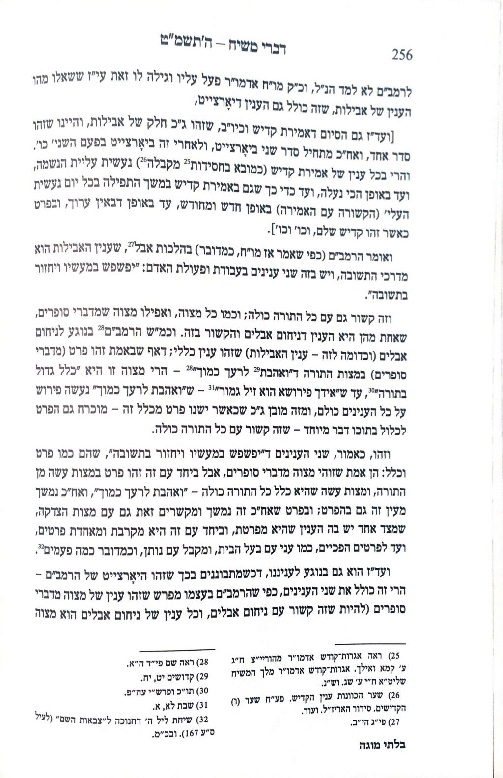 וענין של "יפשפש במעשיו," שזה הענין של דרכי התשובה, וקשור גם, כמו כל מצוה, אפילו מצות שמדברי סופרים, שאחת מהן היא גם ניחום אבלים, והקשור בזה, אומר הרמב"ם בנוגע לניחום אבלים וכדומה בענין של אבלות, שזה ענין של כלל.