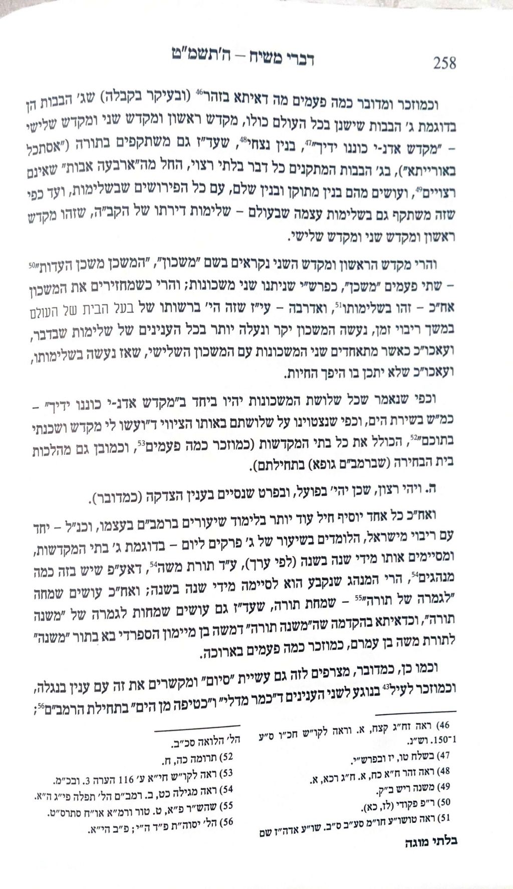 ועד שזה משתקף גם בשלימות עצמה שבעולם, שזו היא השלימות - דירתו של הקב"ה, שזה מקדש ראשון, ומקדש שני ומקדש שלישי, שמקדש ראשון ומקדש שני מכונים בשם "משכון," "משכן משכן העדות" - פעמיים משכן, ורש"י מפרש זאת שנתנו שני משכונות והרי משכון, שמחזירים אותו אחר כך לגמרי בשלימות,