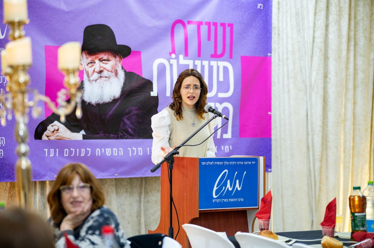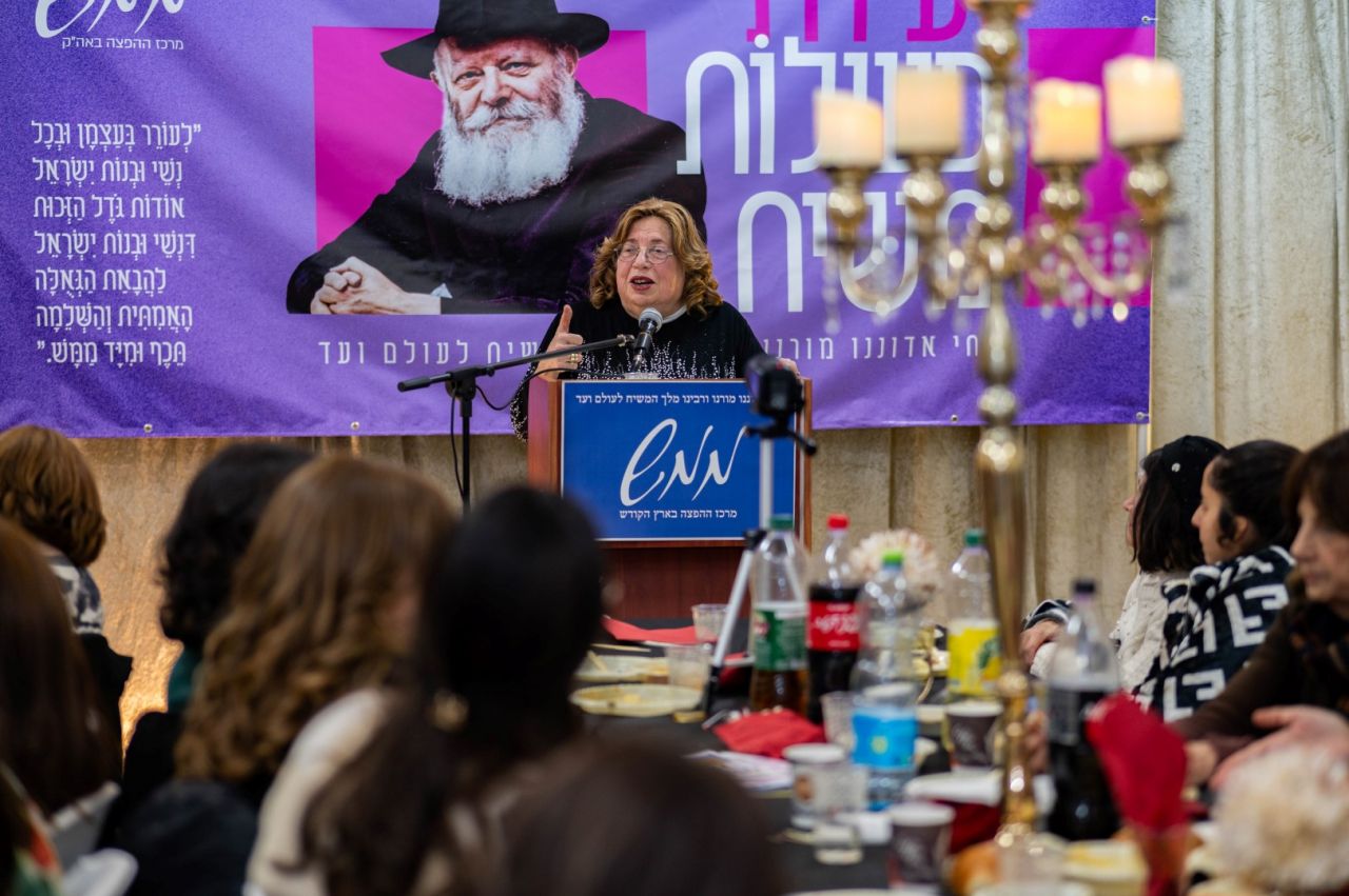 לאחר טעימה קלה מהבר החורפי שחיכה לבאות, התיישבו המשתתפות הרבות על מקומן כשאת שרביט ההנחיה נטלה השליחה הגב' יהודית טאלר מרמת אביב ופתחה בברכה לנשים שטרחו ובאו כדי להתאחד ולקבל כוחות להוספה בשליחות היחידה שנותרה 'קבלת פני משיח צדקנו'.