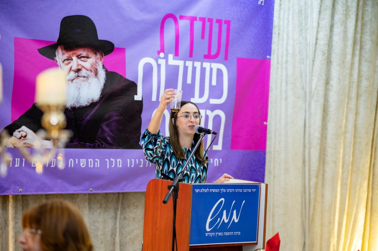 ראשונת הדוברות הגב' חיה מושקא סינגאווי ממרכז 'התגלות' בבאר-שבע, פתחה בחיות מיוחדת על אופי השליחות ועל ייחודיותן של הנשים בשליחות ובסביבה שלהן כדי להרבות את אור הגאולה. אחריה נשאה דברים הגב' אורלי לרנר מקרית מלאכי אודות חשיבות הלימוד השבועי הקבוע בשיחות ה'דבר מלכות' השבועי ושיתפה חוויות מניסיונה הרב בנושא.