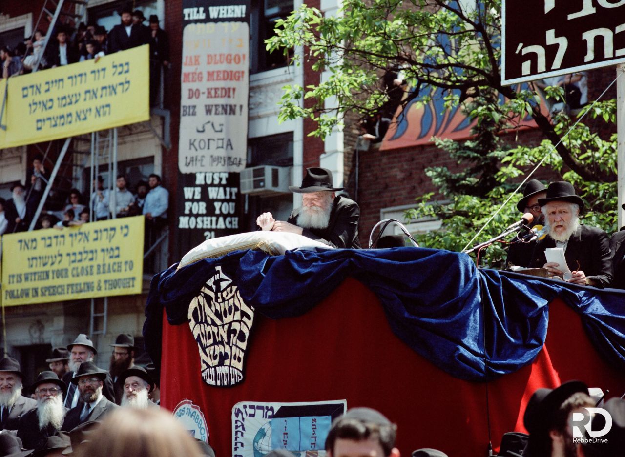 בטרם הופיע כ״ק אדמו״ר שליט״א על הבימה כדי להשתתף ב״פאראד". עמד הרב הכט בדבריו על פעולותיו הכבירות של כ״ק אדמו״ר שליט״א ברחבי העולם כולו לקירוב יהודים ליהדות. כשעה לאחר שהגיע מביתו ל-״770" יצא כ״ק אדמו״ר שליט״א אל קהל האלפים שעמד על רגליו.
