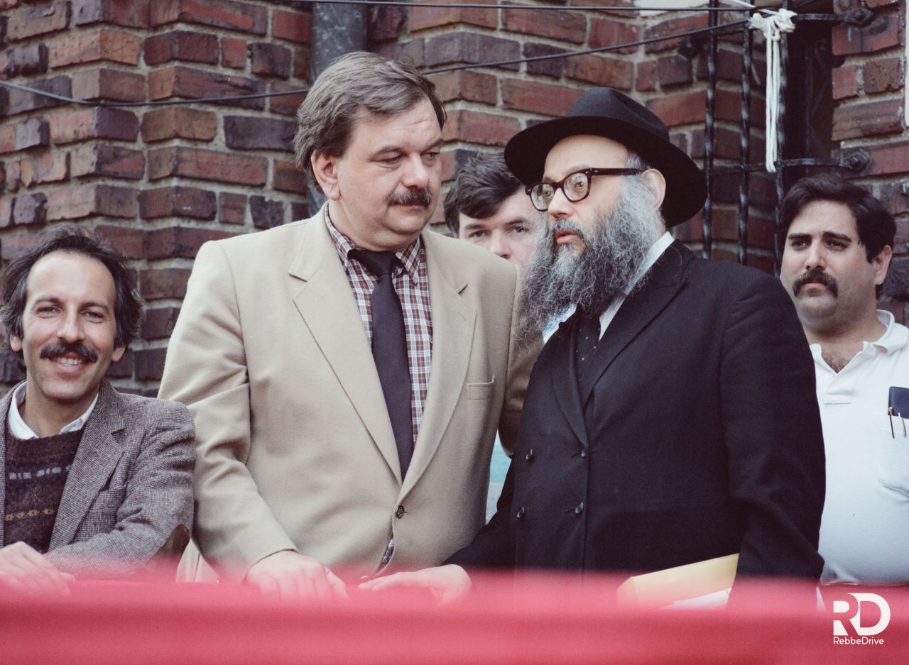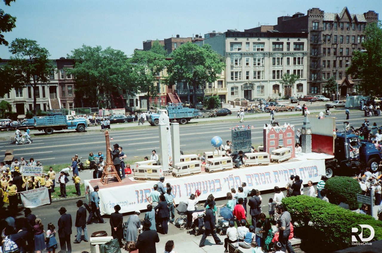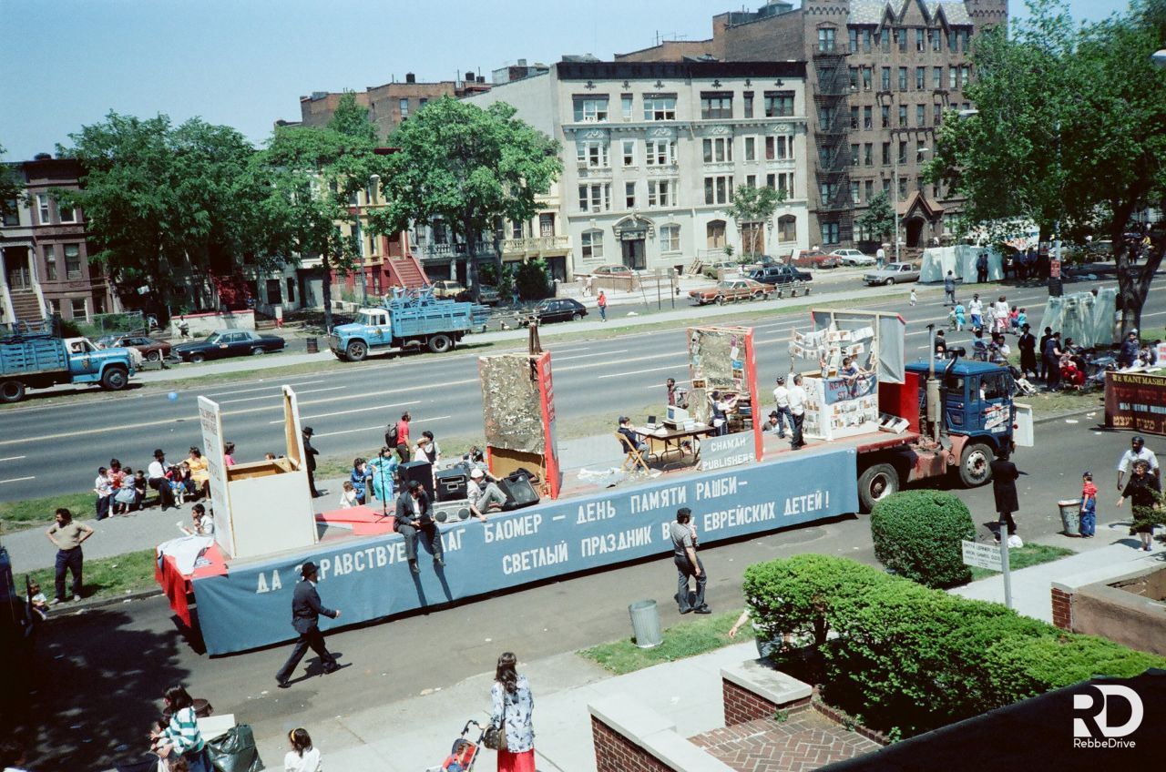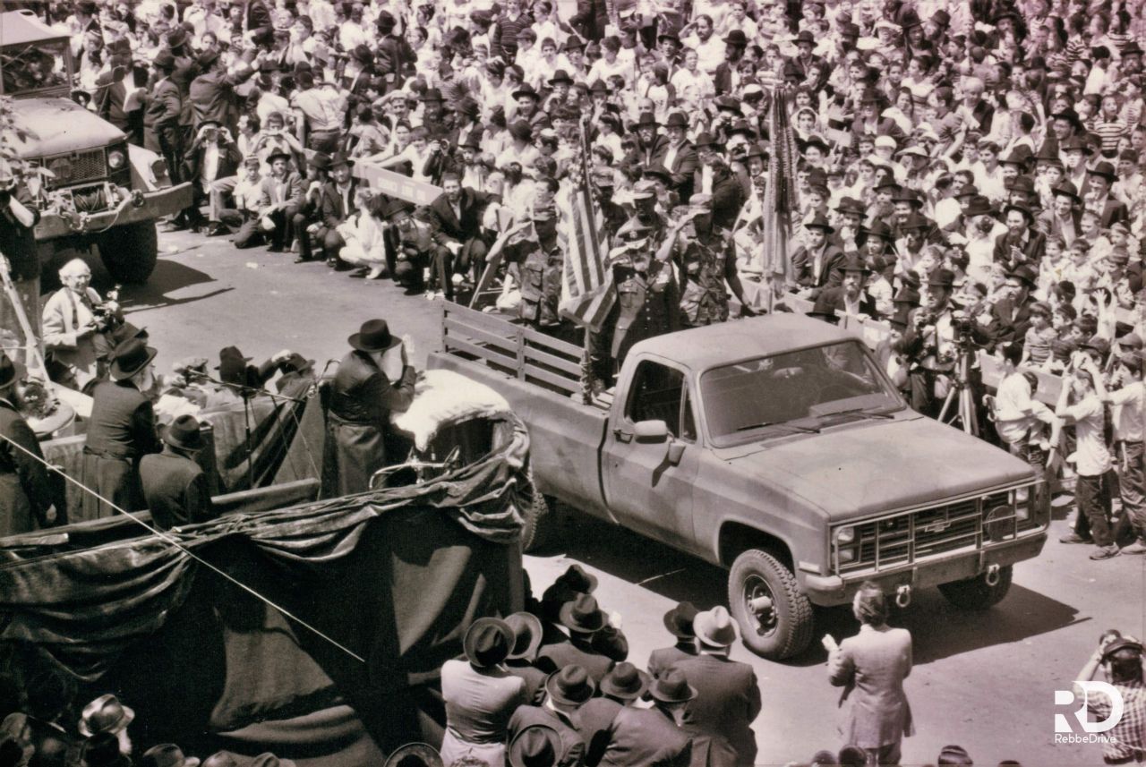 תלמידי ישיבת תומכי תמימים ליובאוויטש במוריסטון בנו על גבי המשאית. שעברה אחר־כך. את "עיר חב״ד" בירושלים לעולי רוסיה. המשאית עוררה התענינות מרובה אצל כל הצופים וכ״ק אדמו״ר שליט״א הורה לפרופסור ברנובר. שעמד כסמוך. לעלות עליה...