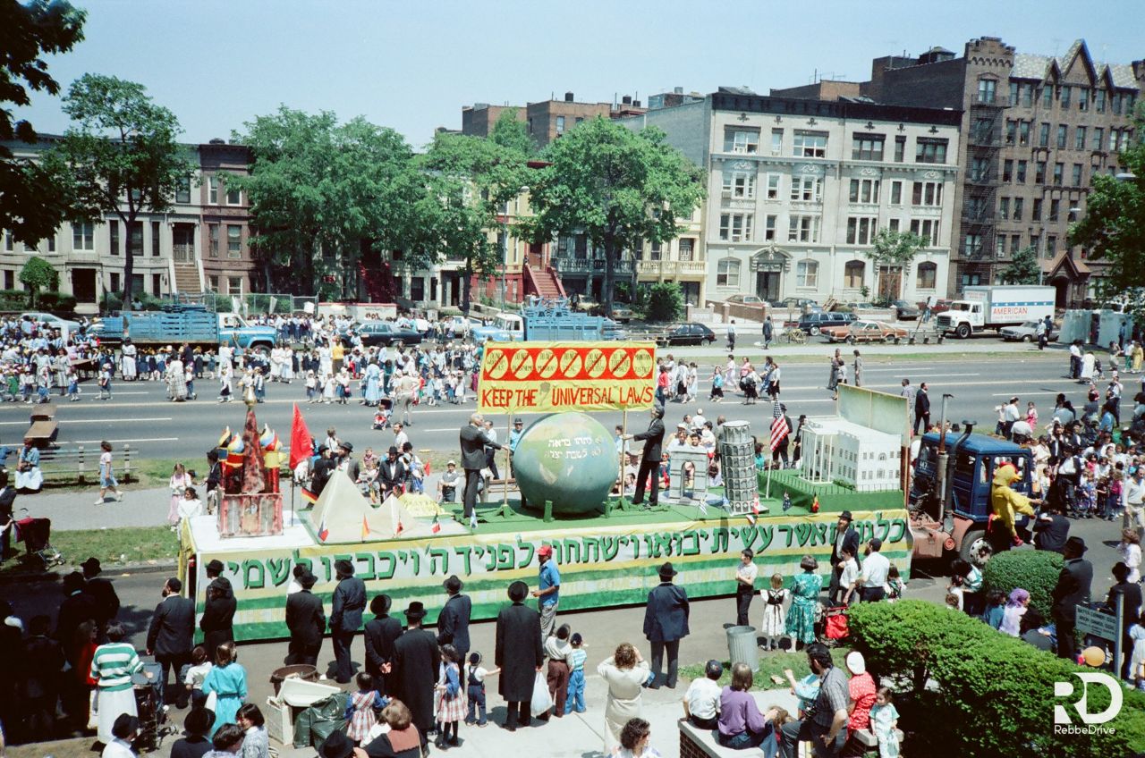 "איך חב״ד כובשת את העולם" הדגימה תצוגה שבנו תלמידי ישיבת ליובאוויטש באושען פרקווי. ואחריה משאית שבנו תלמידי המתיבתא של מוסד "אהלי תורה" המדגימה את קיום ״7 מצוות בני נח".