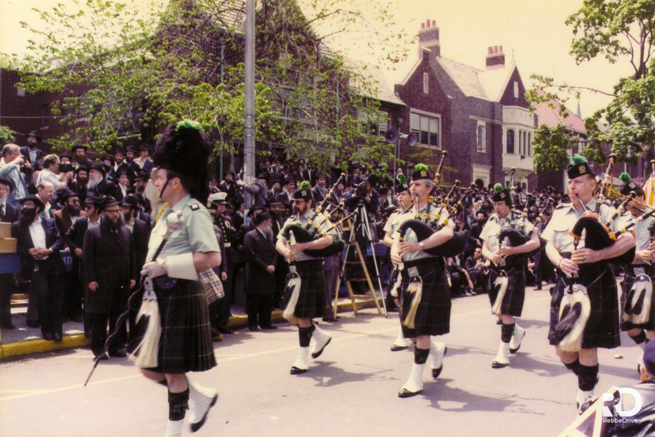 בלבוש ססגוני מרהיב עין צעדו ילדי תזמורתו של ר' אלי שי' ליפּסקער בהדרכת בנו הת' יוסף יצחק שי' כשהם מכים במצלתיים ומתופפים בתופים. בהמשך עברה קבוצת מתופפים נוספת של צבאות ה' בהדכת הת' מ. שי' פוגלמן, ואלה אף ערכו במשך מספר דקות "תרגילי סדר" מול בימת כ"ק אדמו"ר שליט"א.