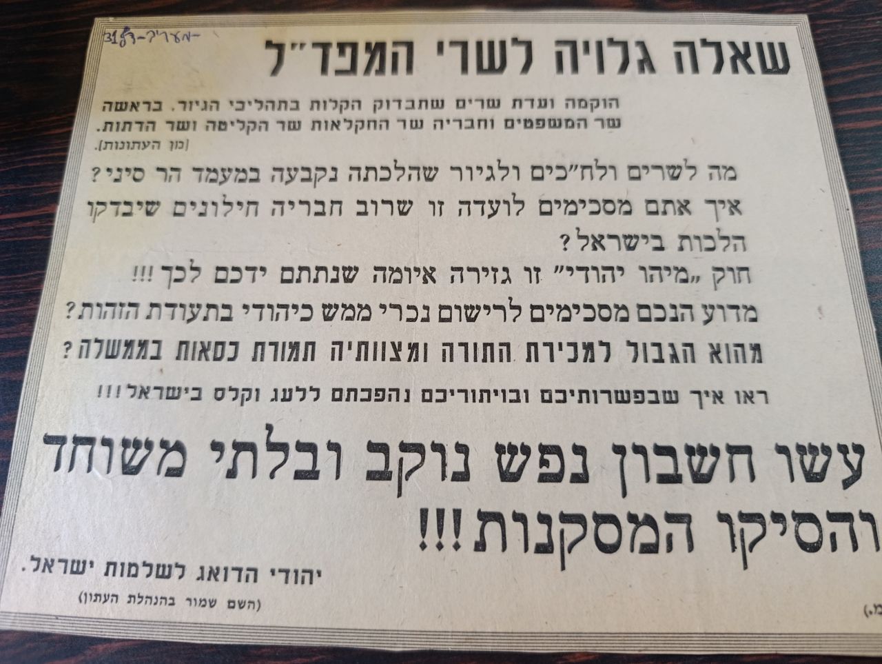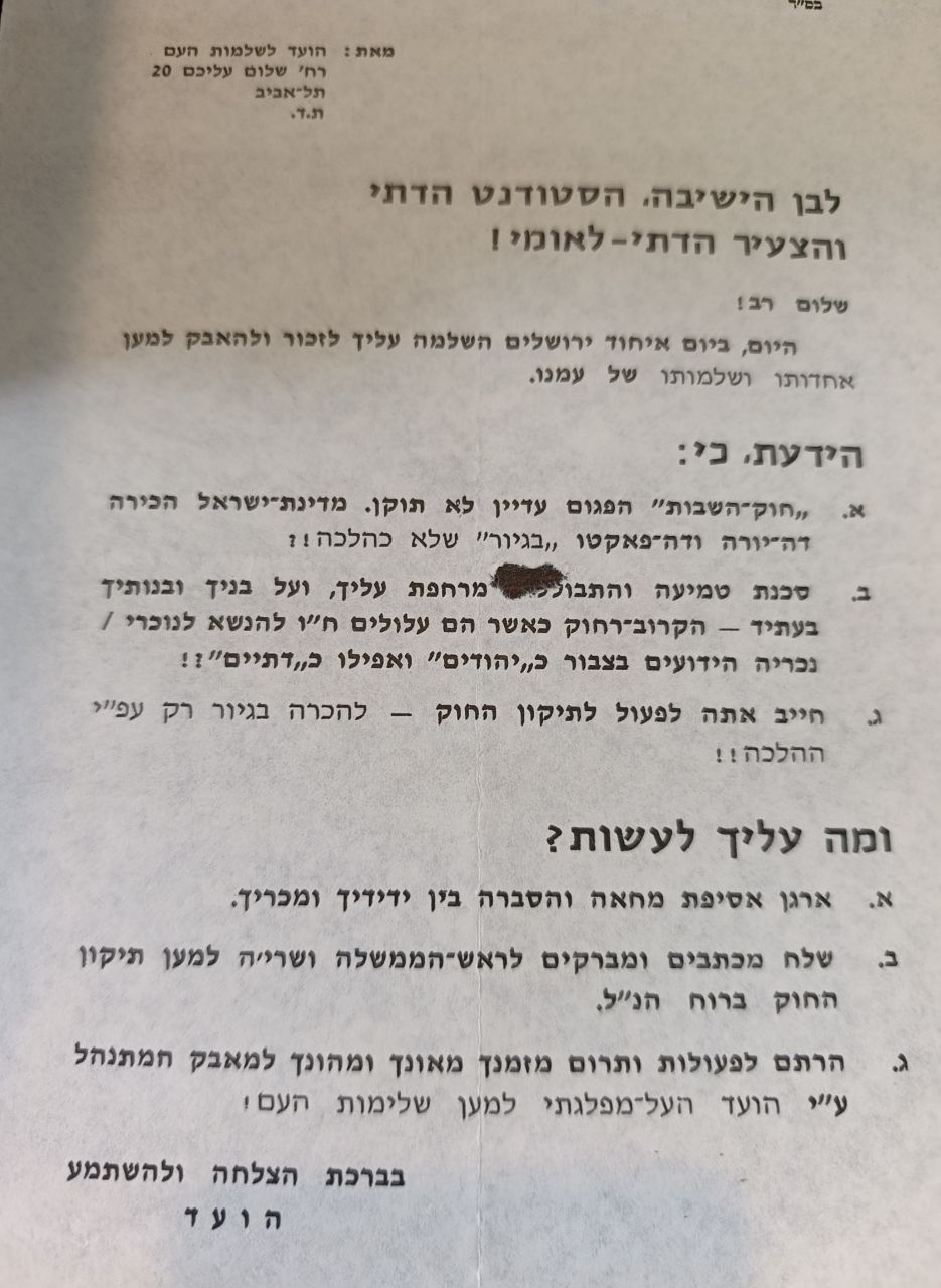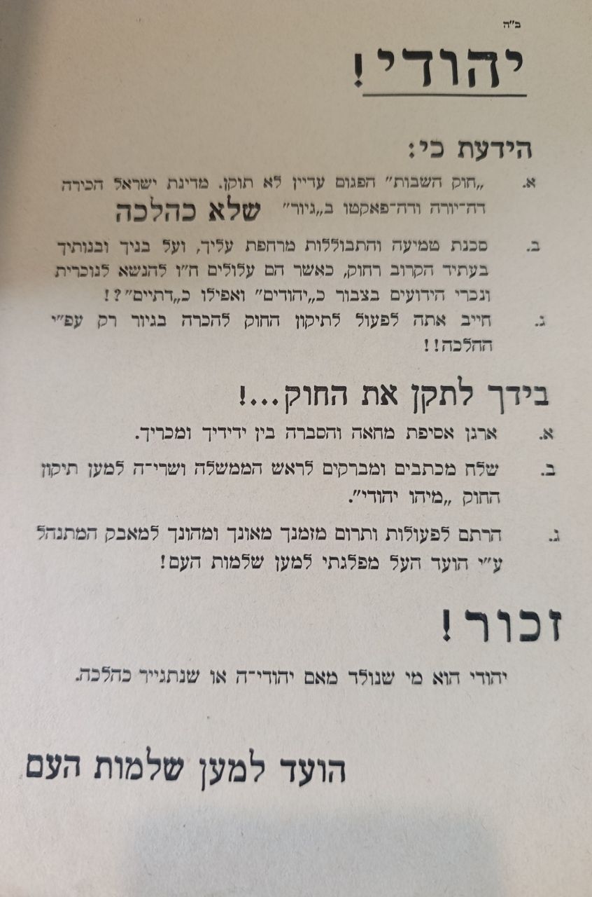 אתר הגאולה חושף לקוראים, כרוזים היסטוריים המתעדים את פעולות החסידים לתיקון חוק "מיהו יהודי" על-פי בקשת הרבי שליט"א מלך המשיח.
