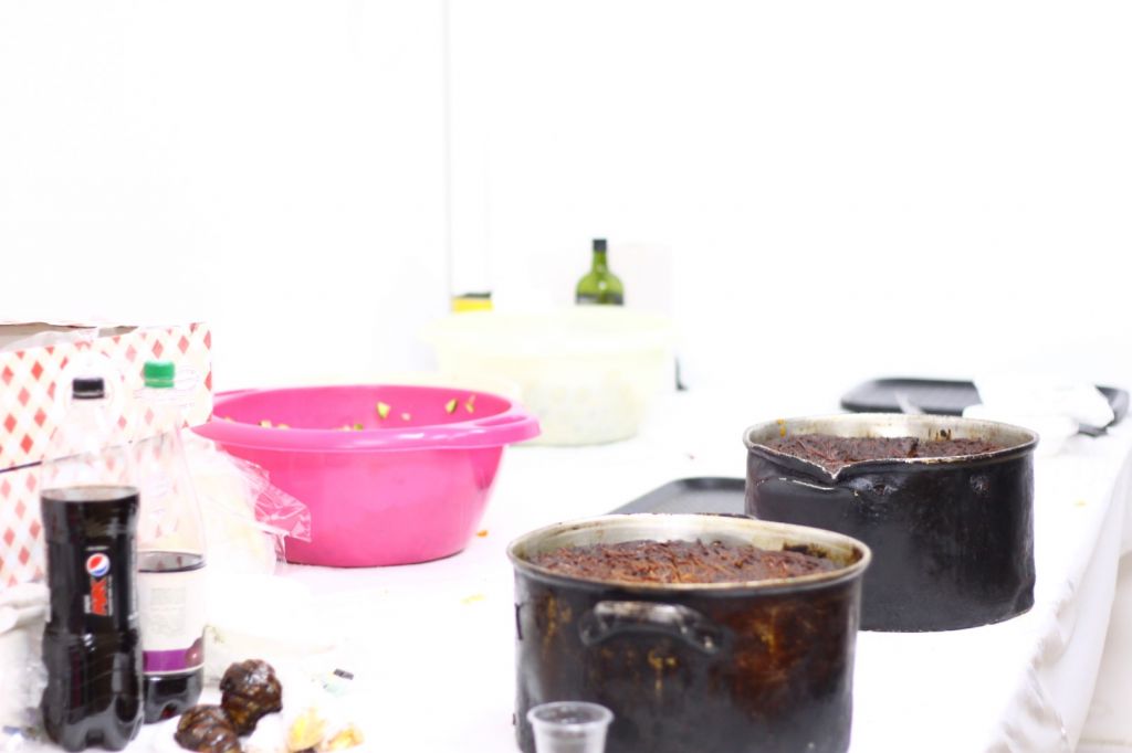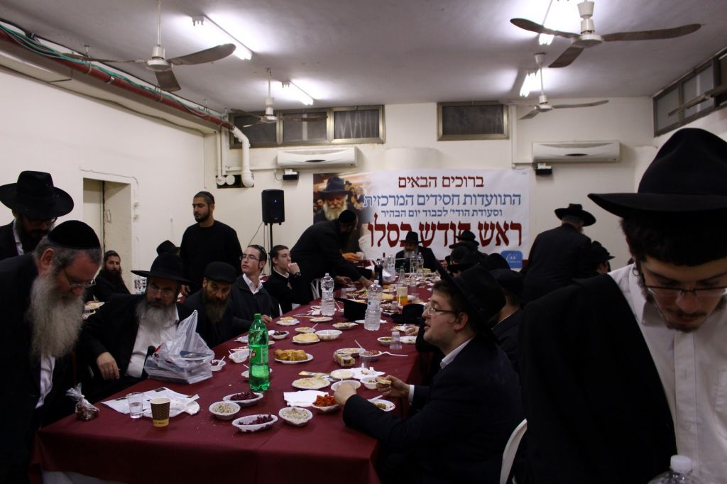 הערב נפתח בתפילת ערבית ברוב עם הדרת מלך, כיאה ליום הבהיר וראש-חודש. לאחר מכן נהר הקהל הגדול ליטול את ידיו לסעודת המצווה שהיתה כבר ערוכה על השולחנות במגוון רחב של מאכלים כפי המתאים לסעודת יום-טוב.