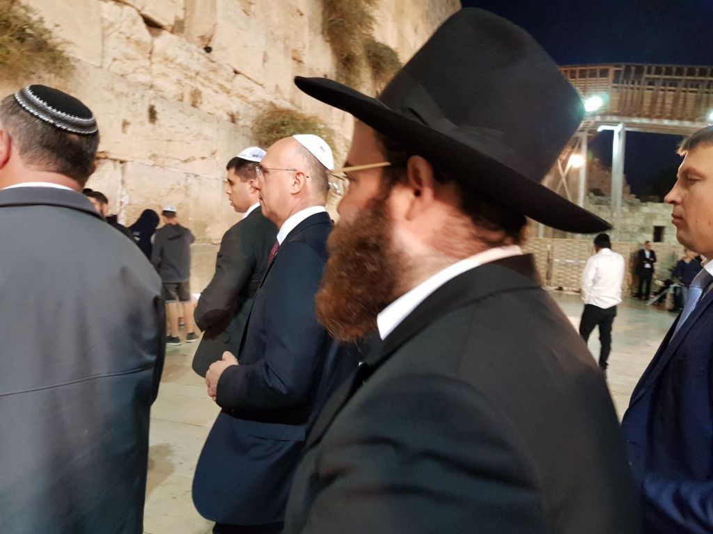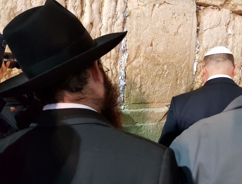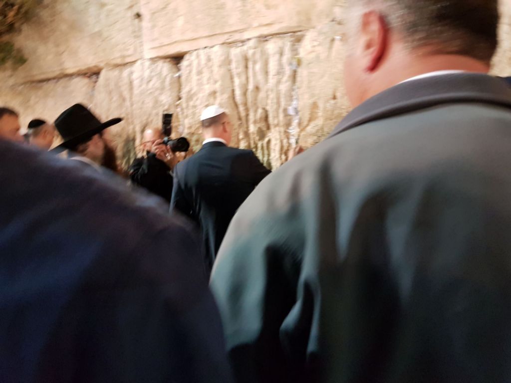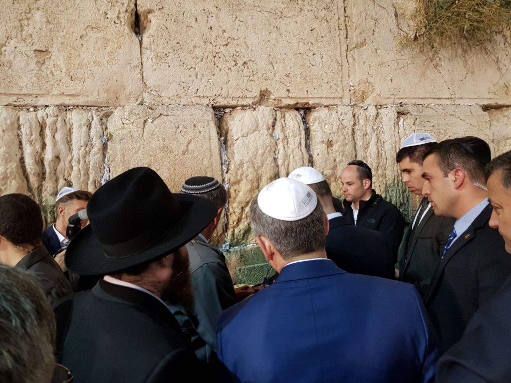 ראש הממשלה התרגש מאד בביקורו כשהוא נושא תפילה מול אבני הכותל, ולאחר מכן טמן פתק בין נדבכי שריד בית מקדשנו.